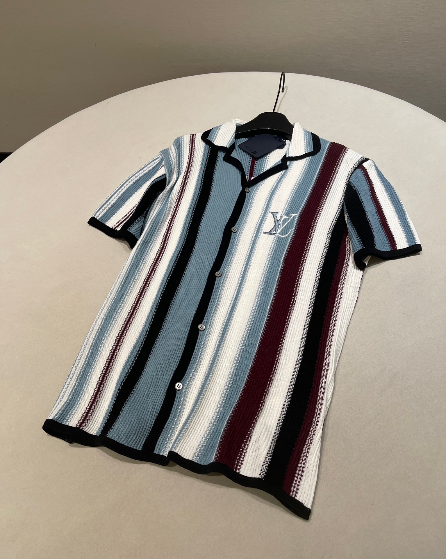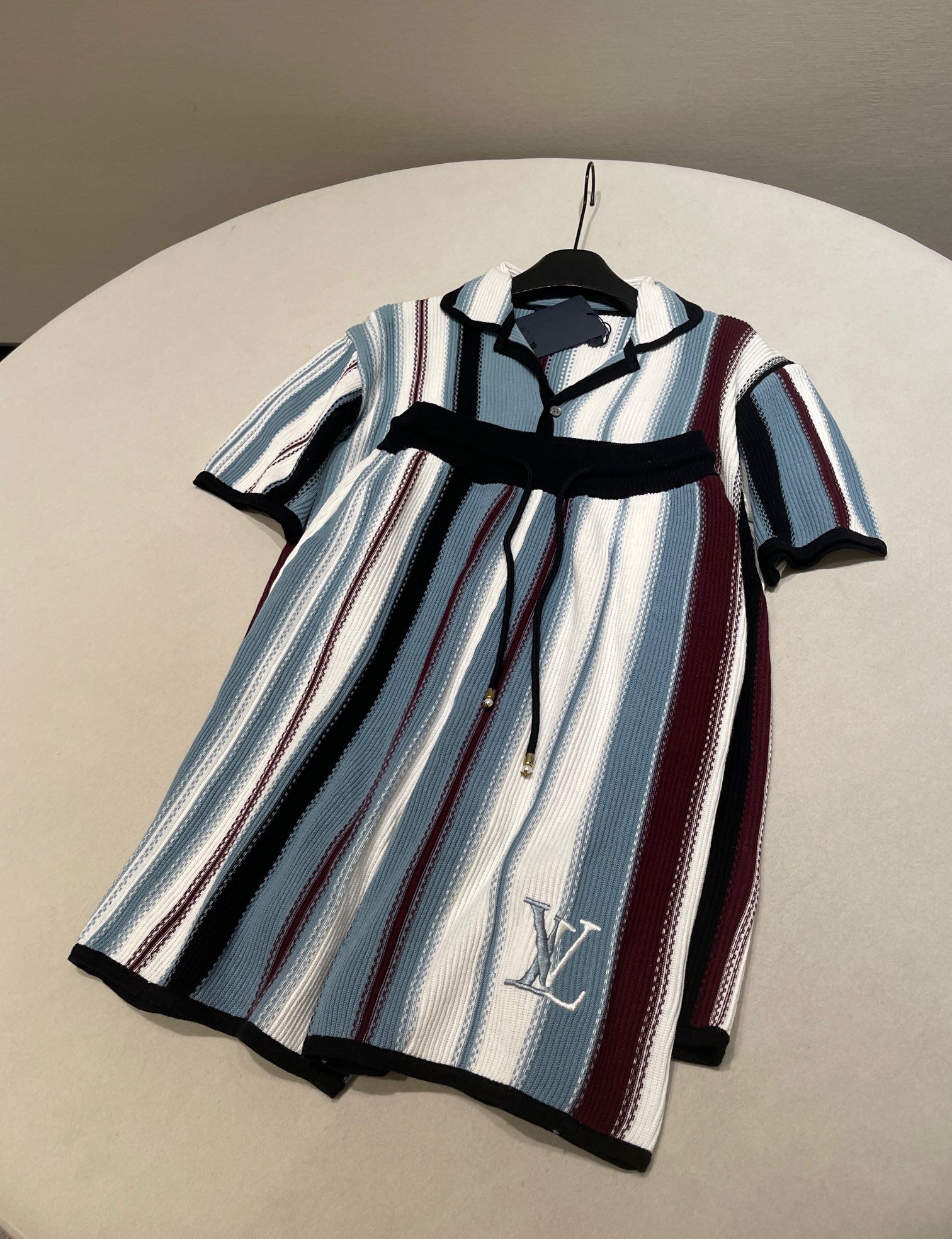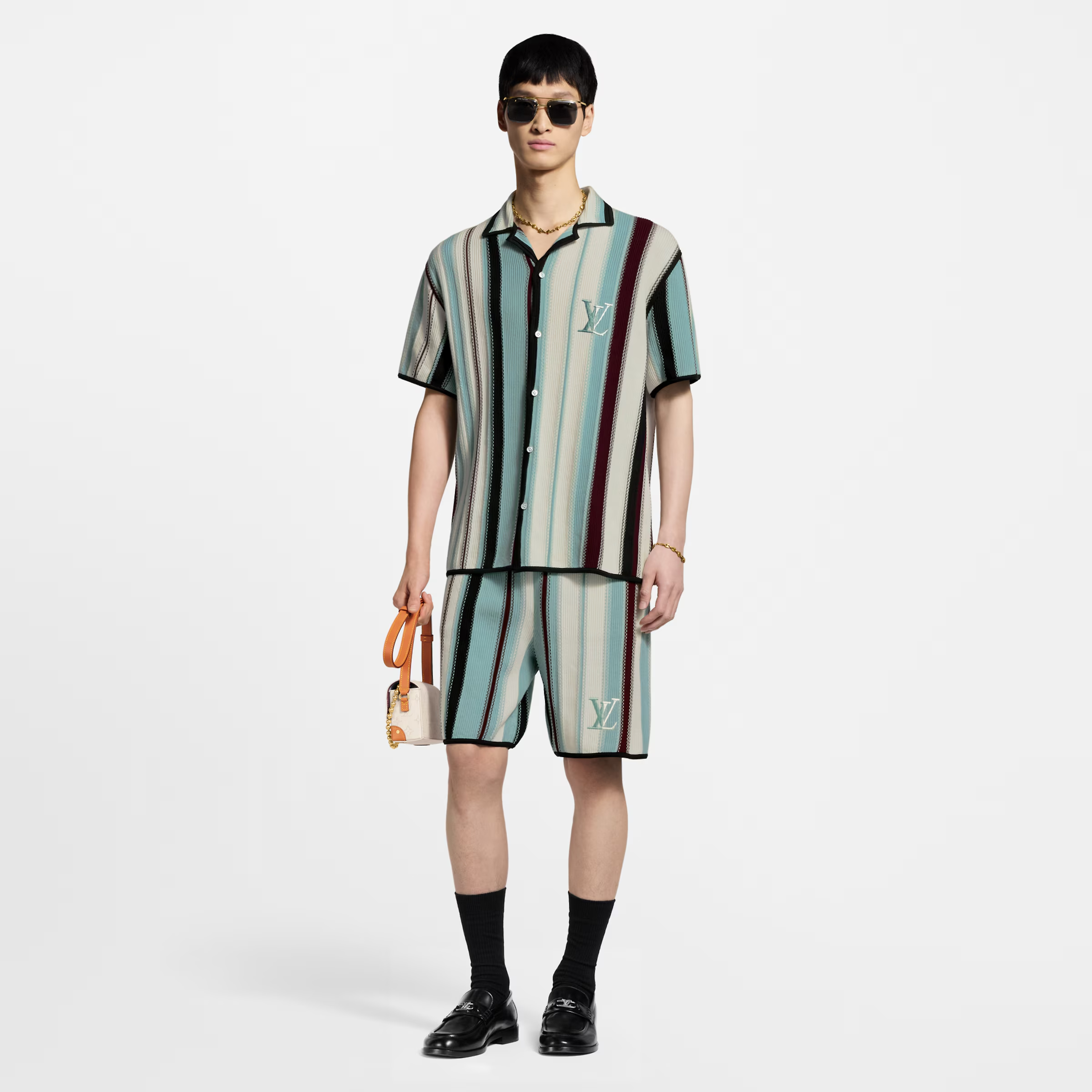 NIGO Louis Vuitton Men's Summer Embroidered Logo Stripe Crochet Single Breasted Short Sleeve Shirt Casual Lace Up Shorts Suit Set #nigo81258