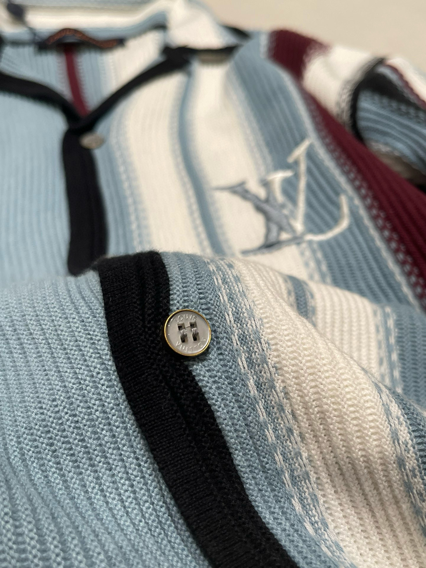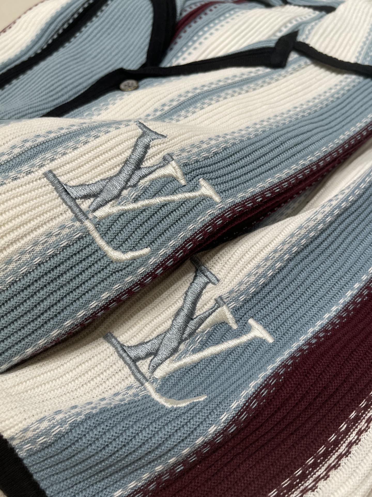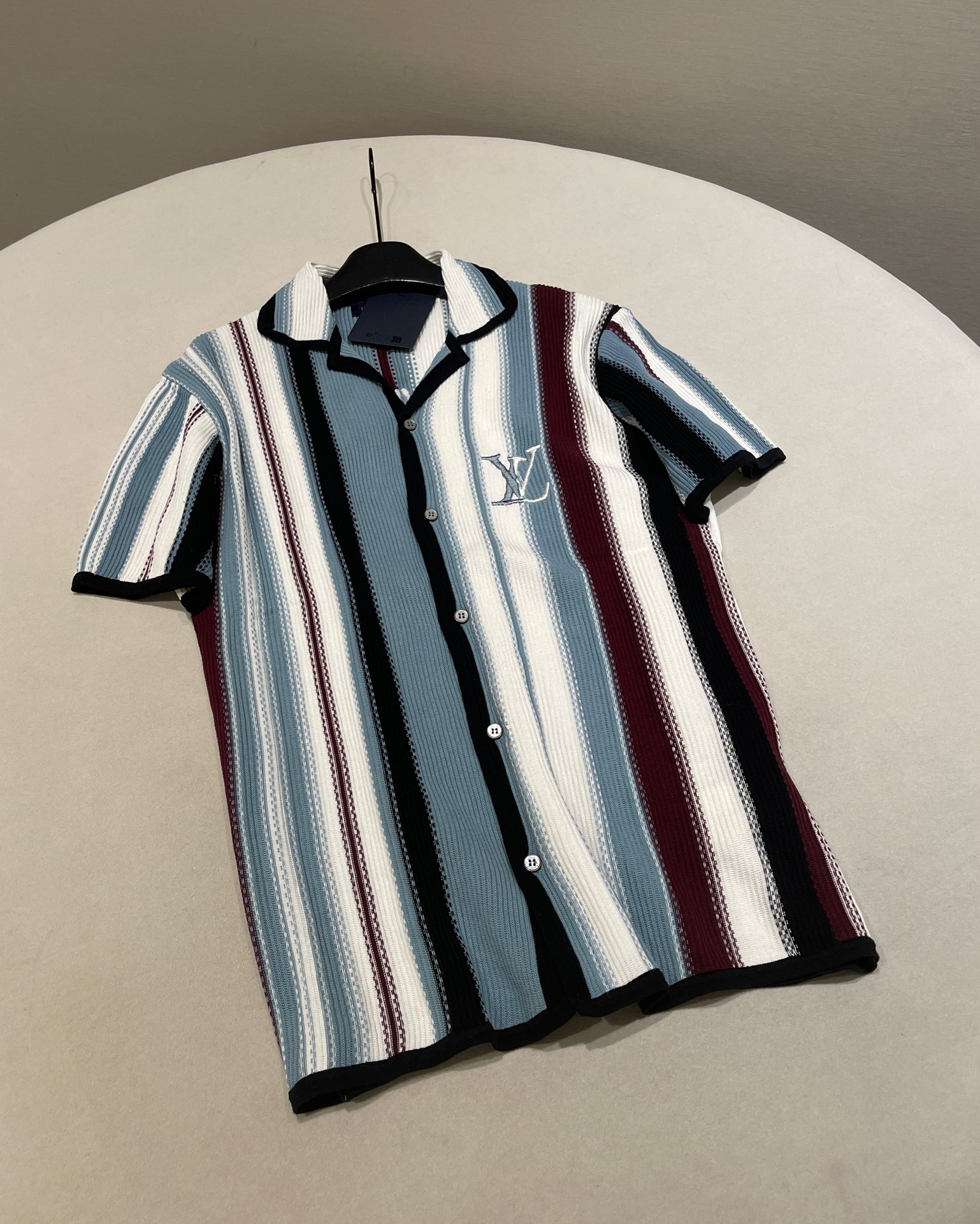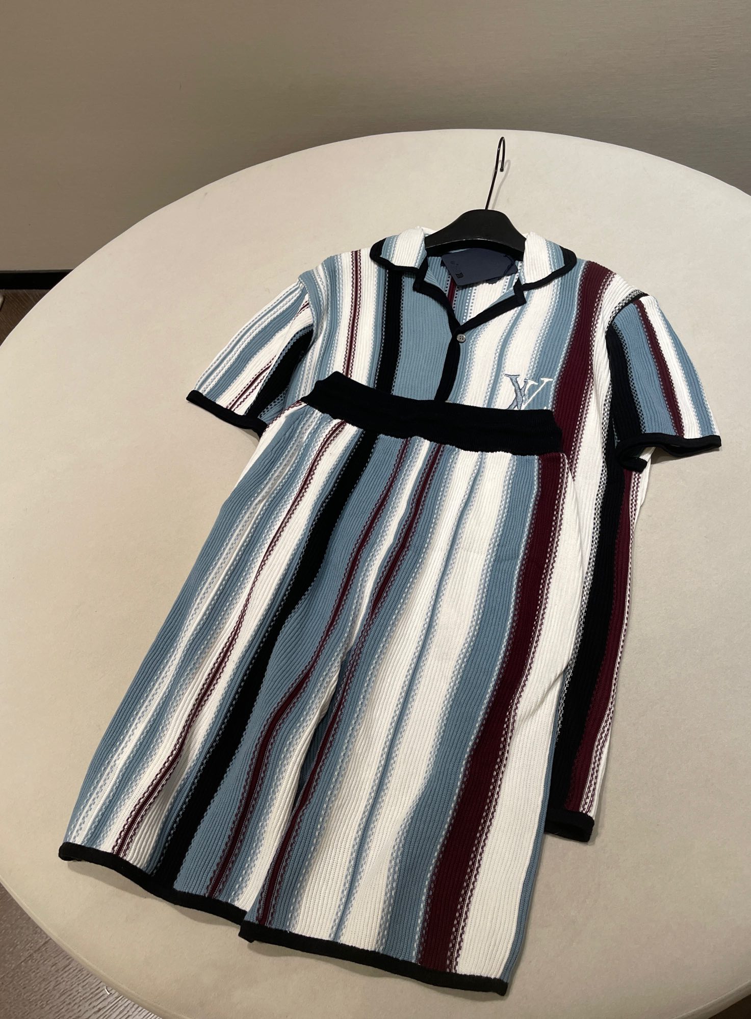 NIGO Louis Vuitton Men's Summer Embroidered Logo Stripe Crochet Single Breasted Short Sleeve Shirt Casual Lace Up Shorts Suit Set #nigo81258