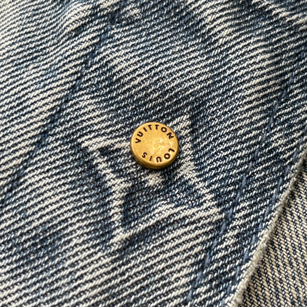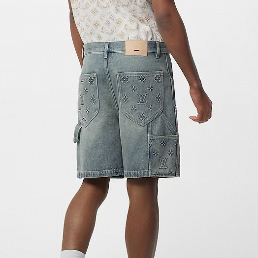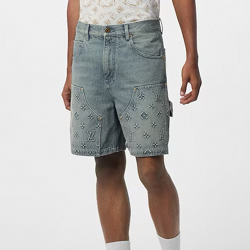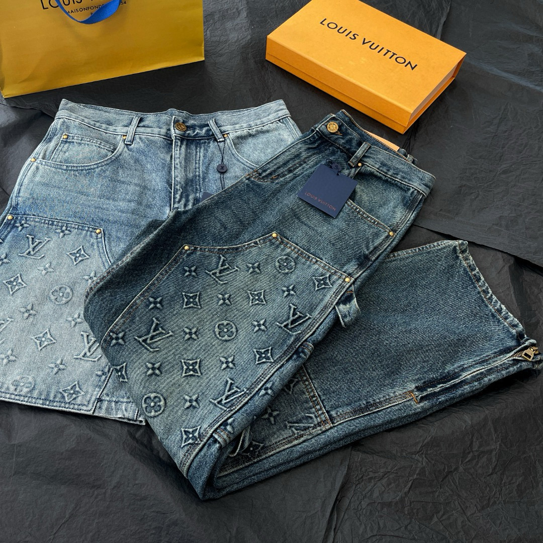NIGO Louis Vuitton Men's Summer Fashion Casual Collared Single Button Classic Embossed Denim Short Sleeve Shirt Classic Print Zipper Mid Rise Workwear Denim Shorts Suit Set #nigo78561