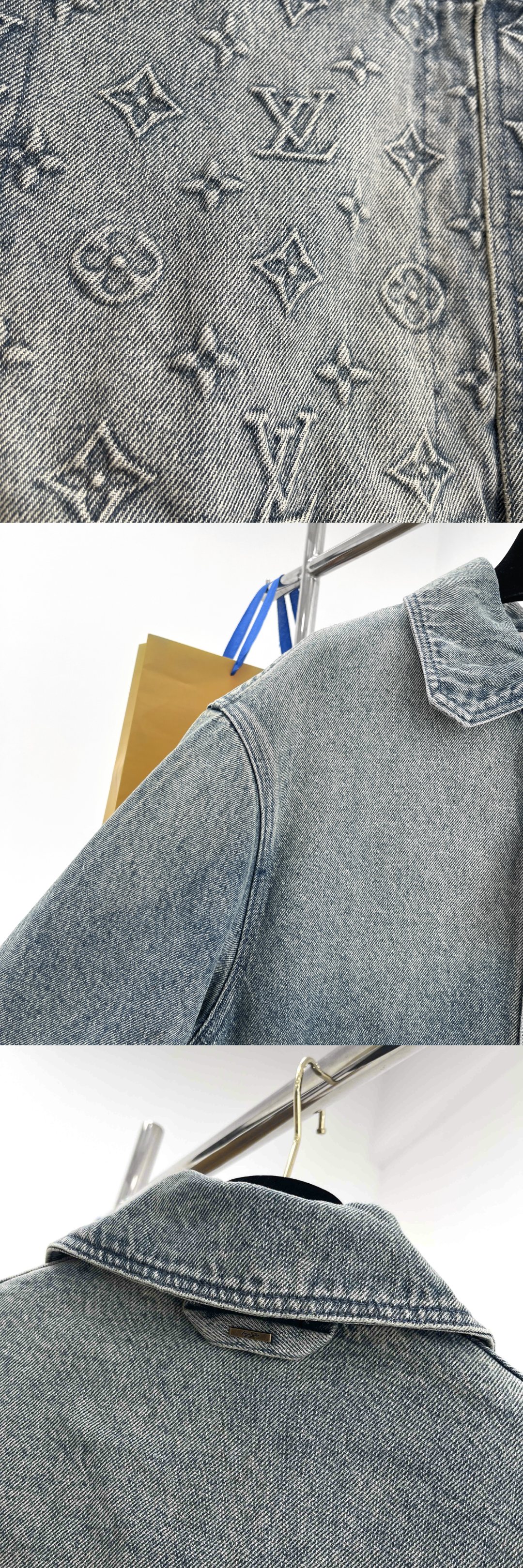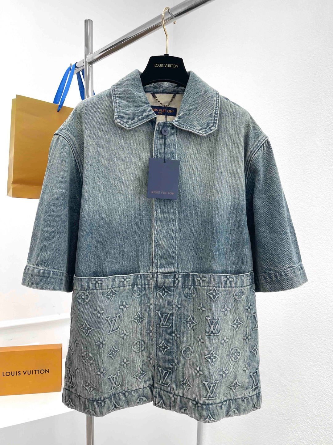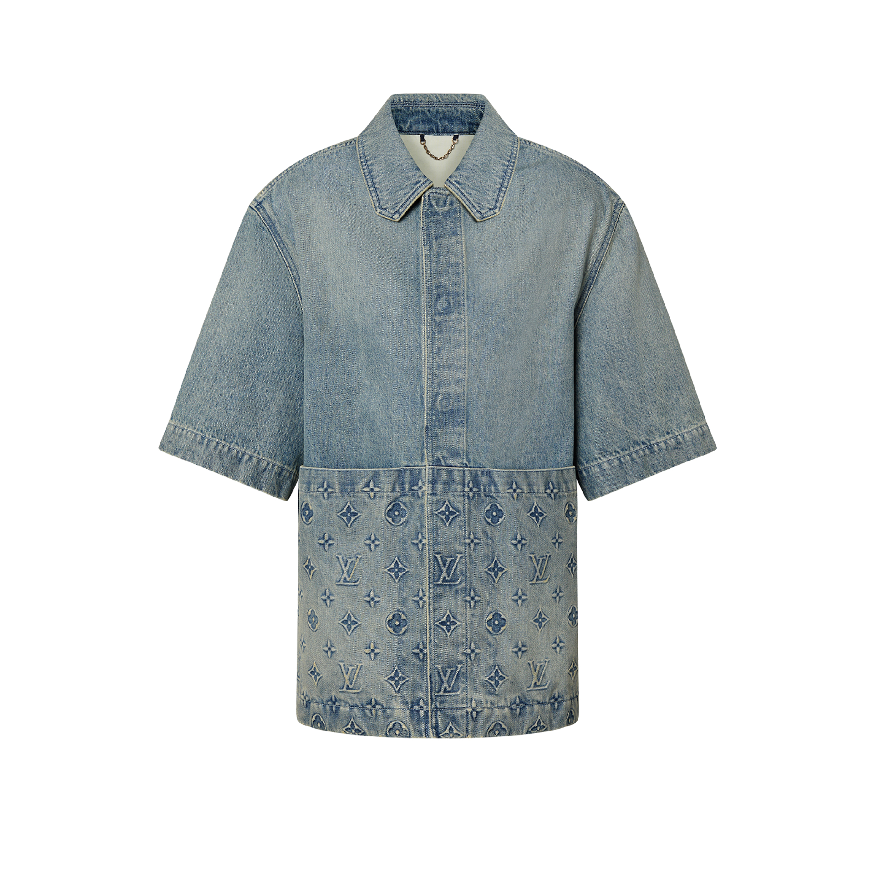 NIGO Louis Vuitton Men's Summer Fashion Casual Collared Single Button Classic Embossed Denim Short Sleeve Shirt Classic Print Zipper Mid Rise Workwear Denim Shorts Suit Set #nigo78561