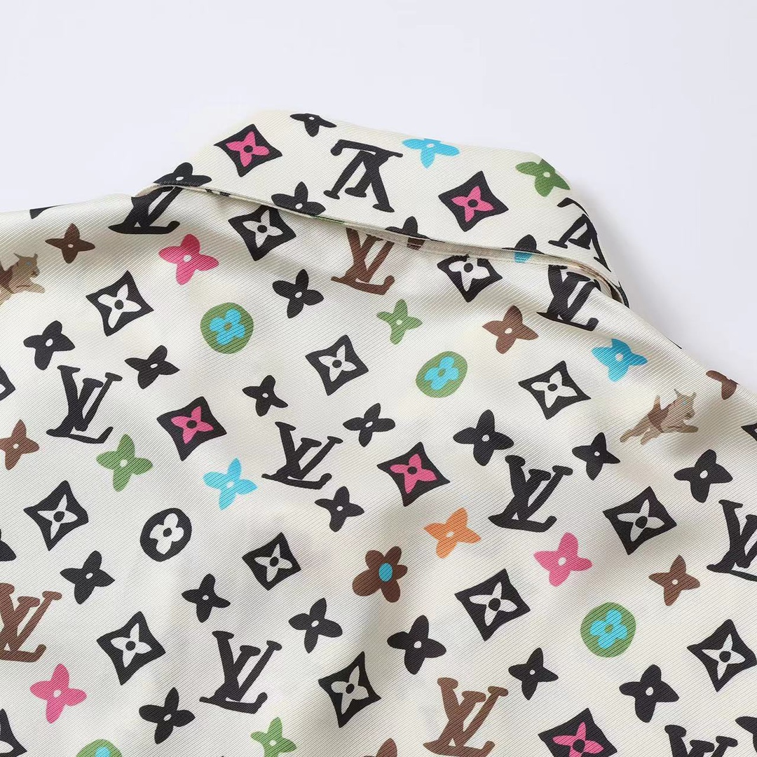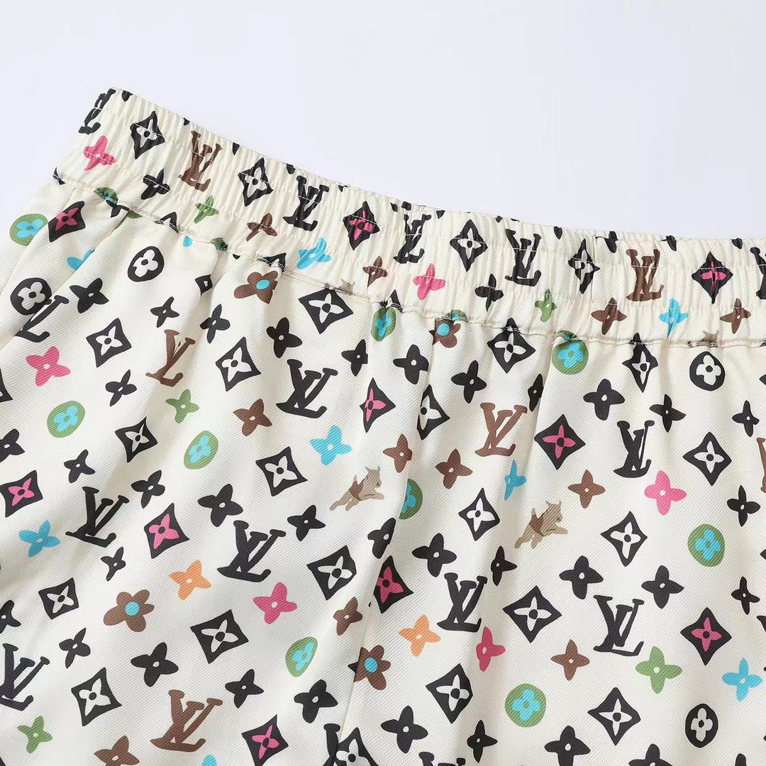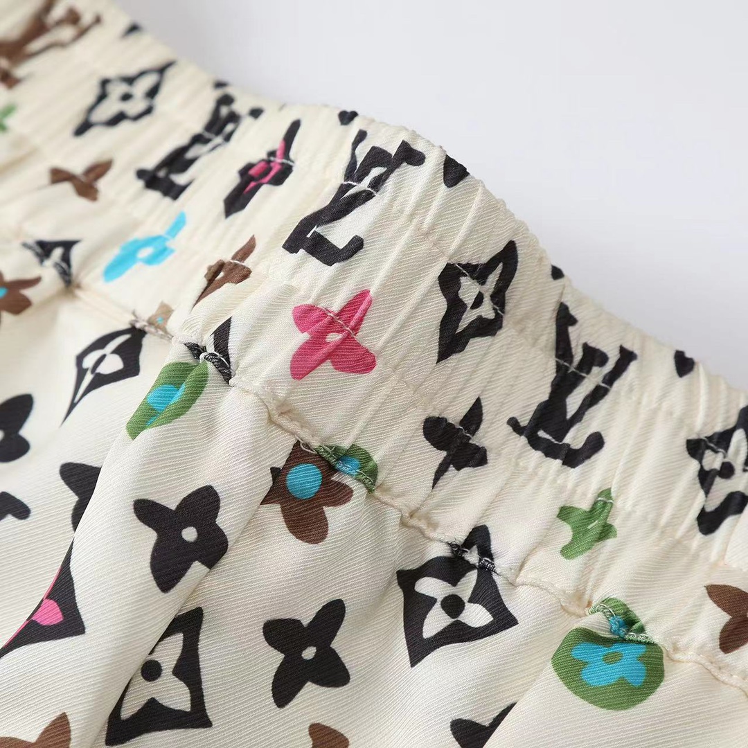NIGO Louis Vuitton Men's Summer Logo Full Print Single Breasted Short Sleeve Shirt Elasticated Waist Shorts Suit Set #nigo75224