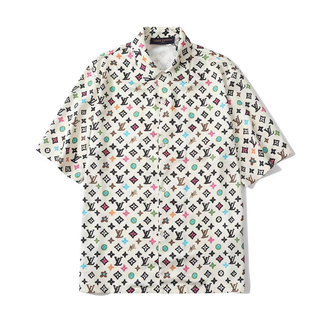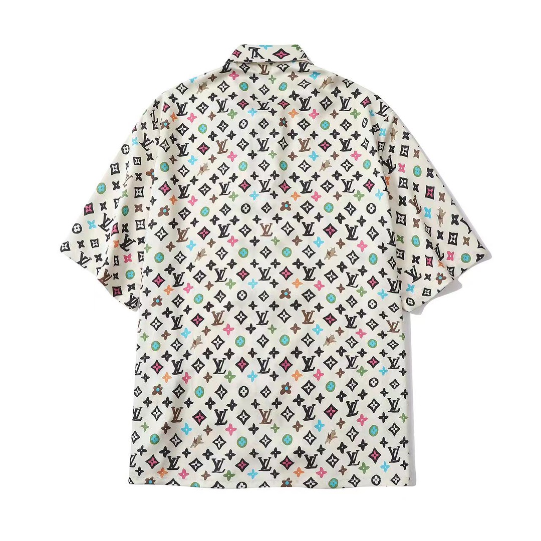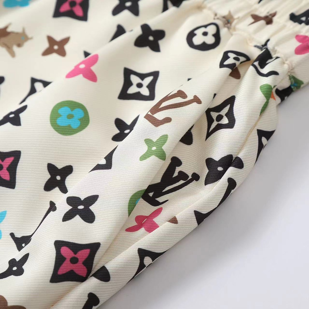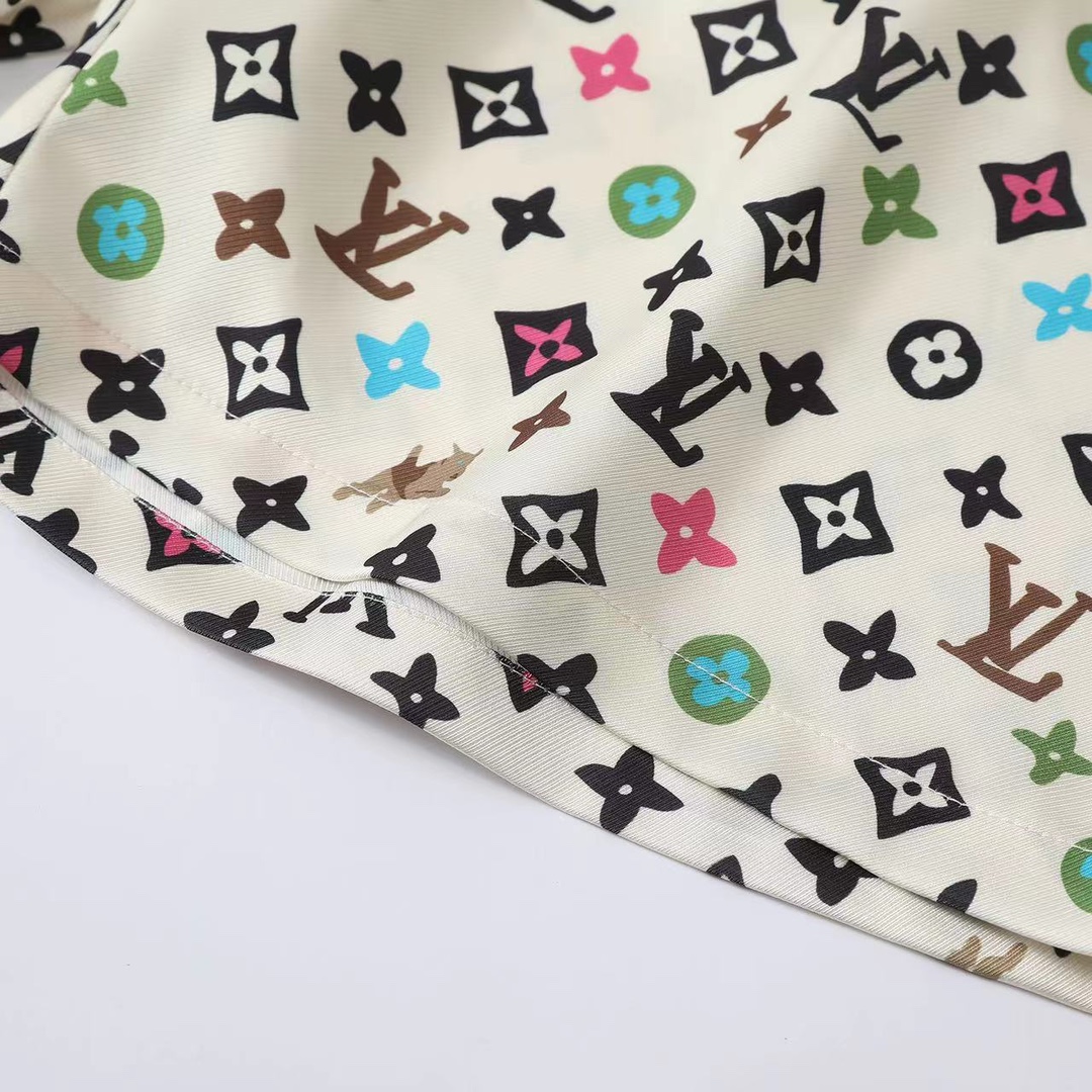 NIGO Louis Vuitton Men's Summer Logo Full Print Single Breasted Short Sleeve Shirt Elasticated Waist Shorts Suit Set #nigo75224