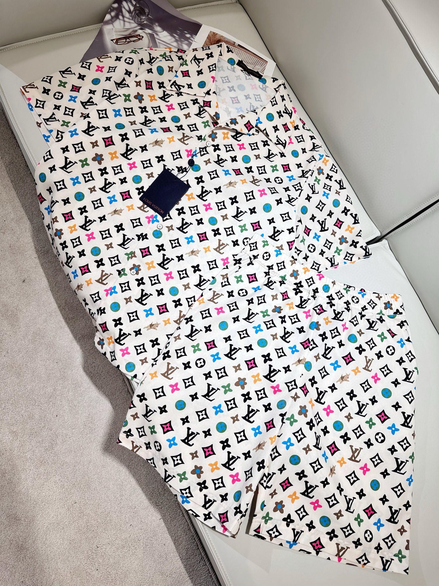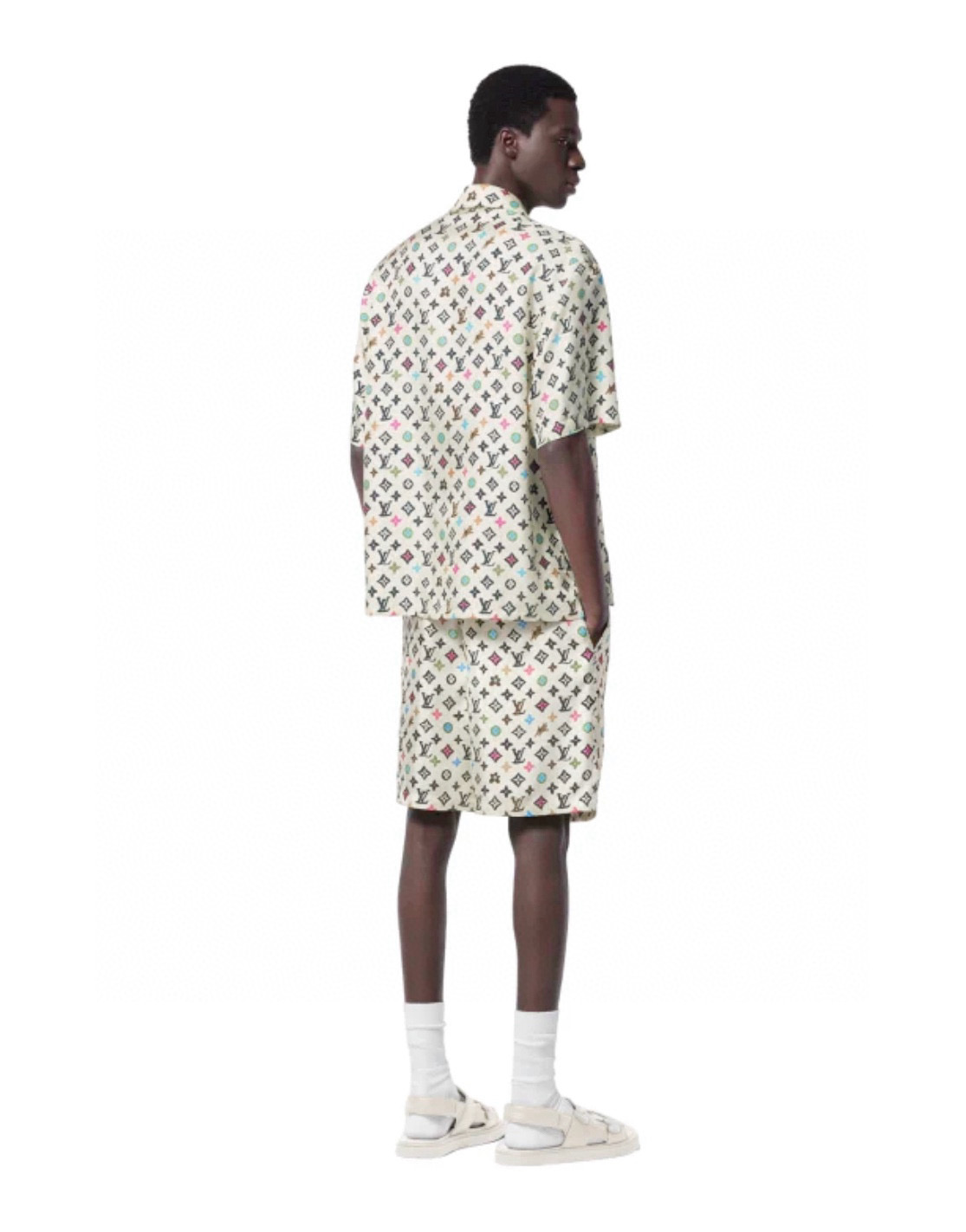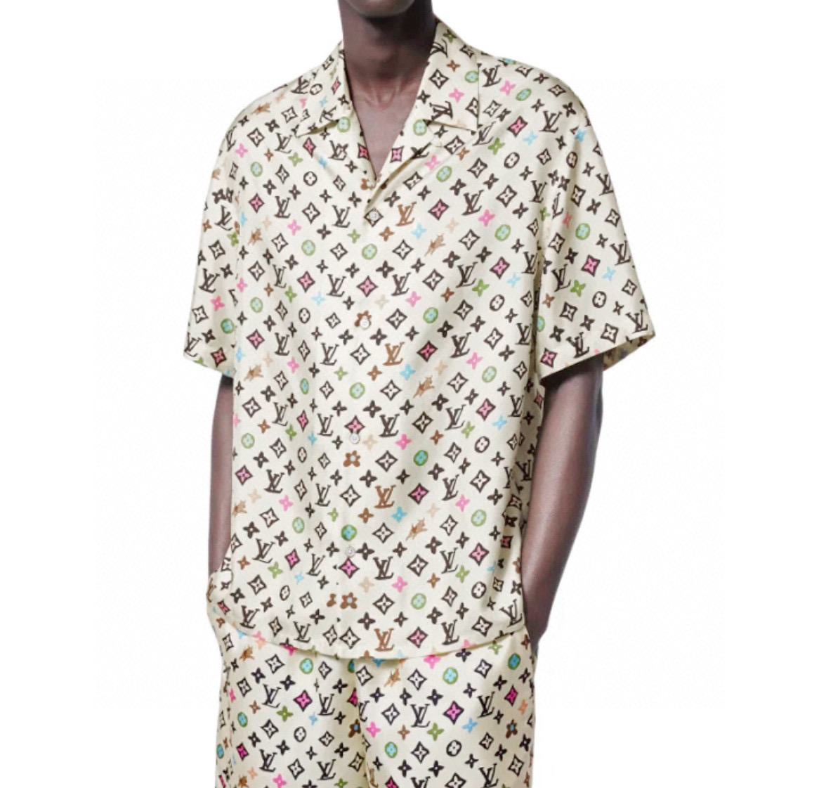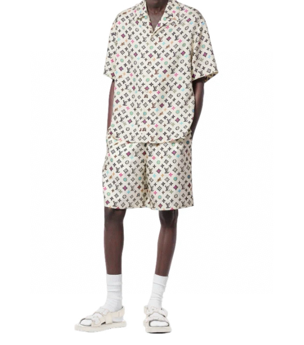 NIGO Louis Vuitton Men's Summer Logo Full Print Single Breasted Short Sleeve Shirt Elasticated Waist Shorts Suit Set #nigo99155