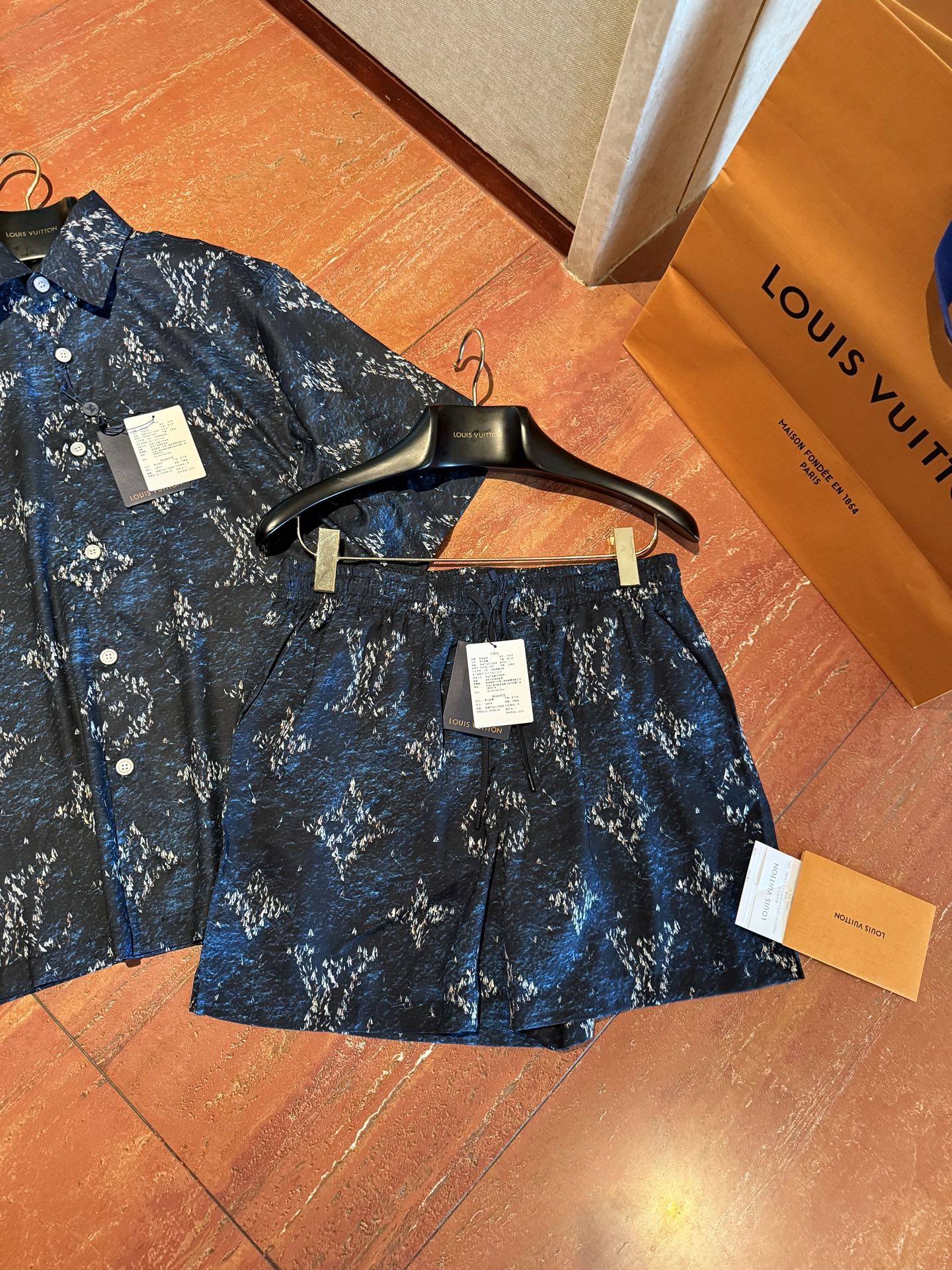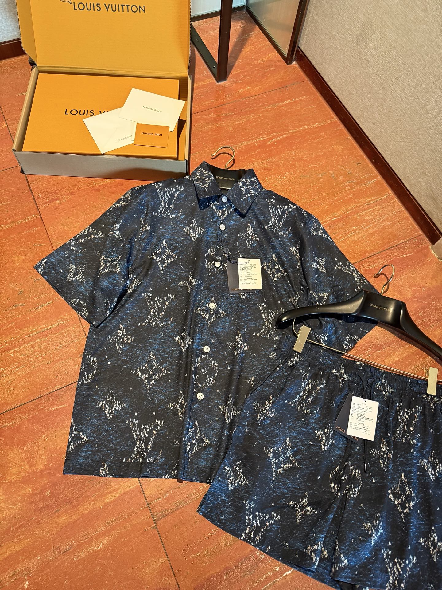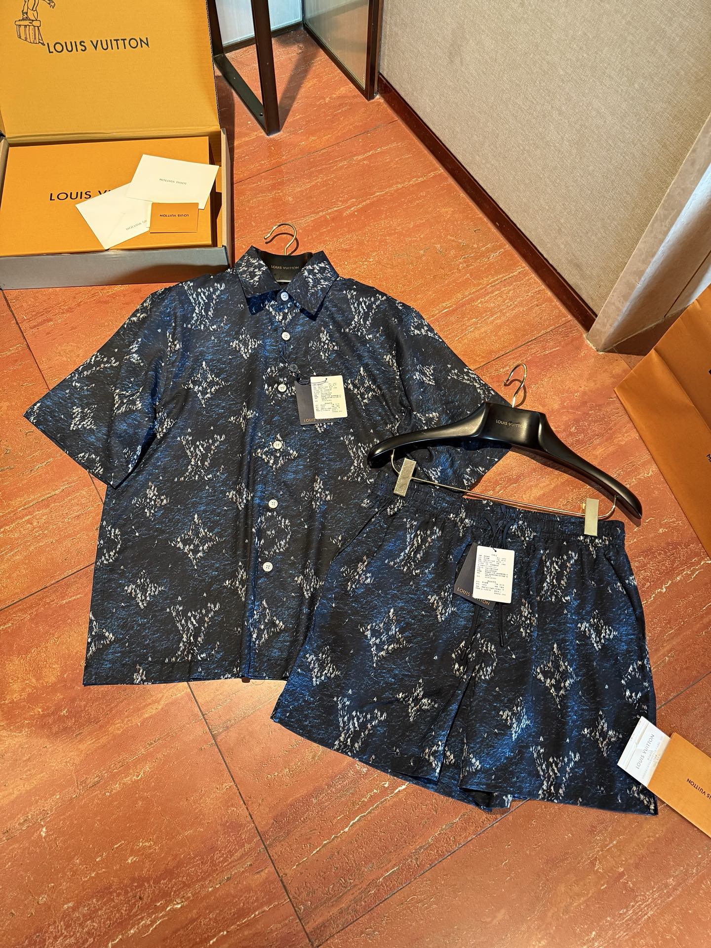 NIGO Louis Vuitton Men's Summer Logo Print Single Breasted Silk Short Sleeved Shirt And Casual Drawstring Shorts Suit Set #nigo76997