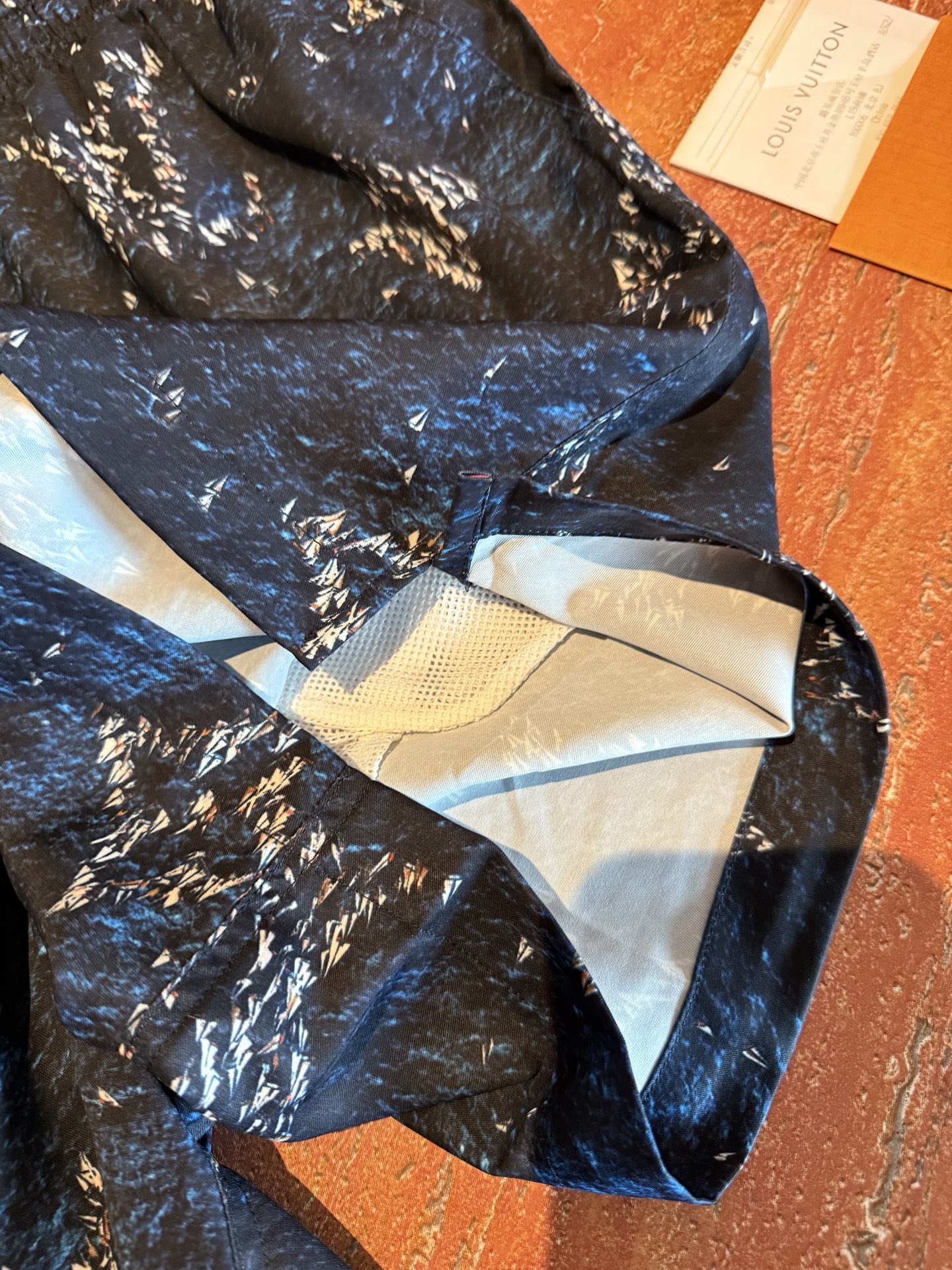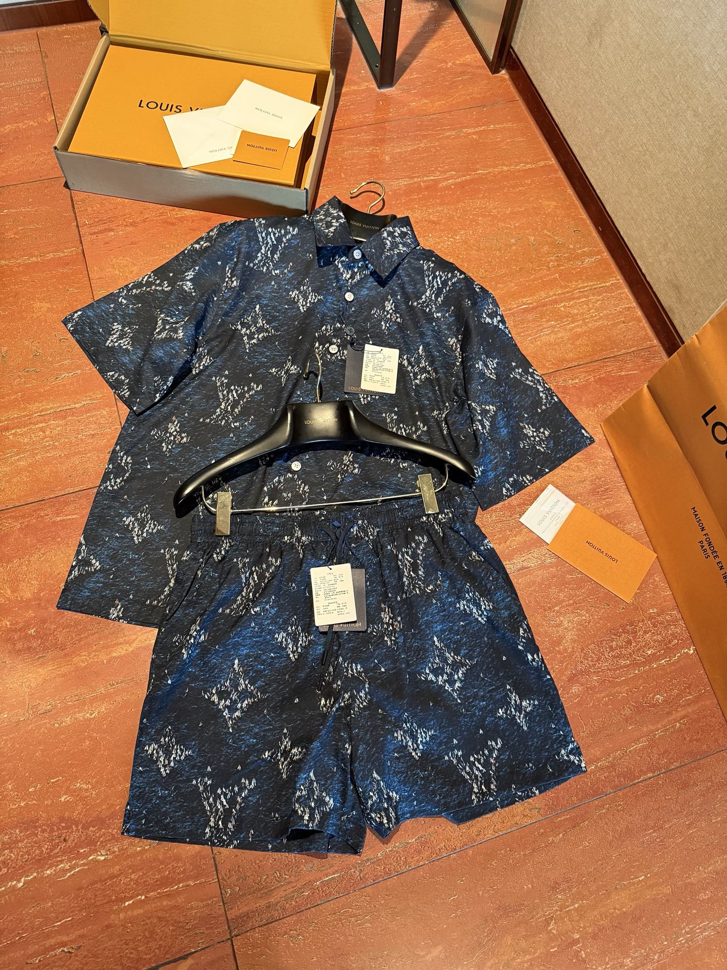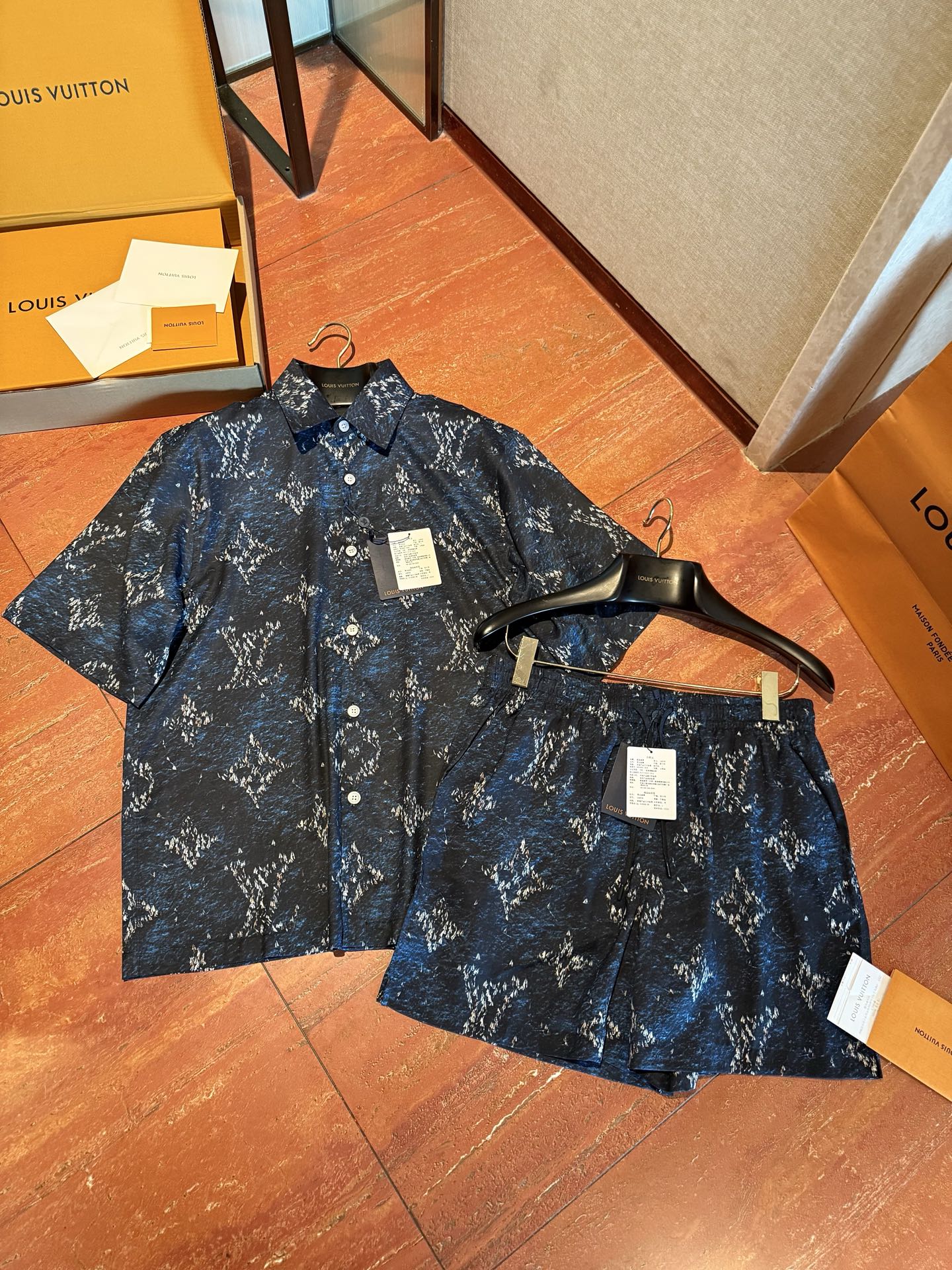 NIGO Louis Vuitton Men's Summer Logo Print Single Breasted Silk Short Sleeved Shirt And Casual Drawstring Shorts Suit Set #nigo76997