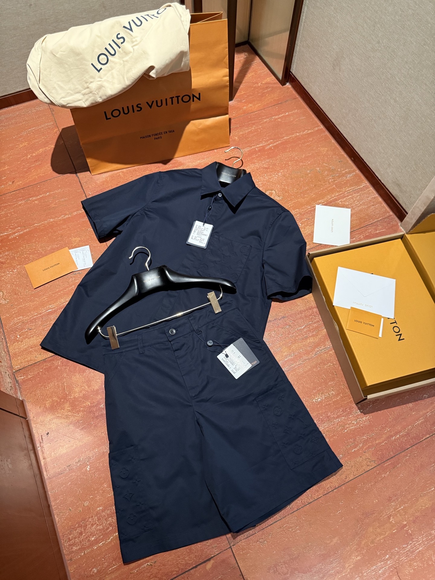 NIGO Louis Vuitton Men's Summer Solid Colour Logo Print Pocket Single Breasted Short Sleeved Shirt And Casual Shorts Set Suit #nigo76998