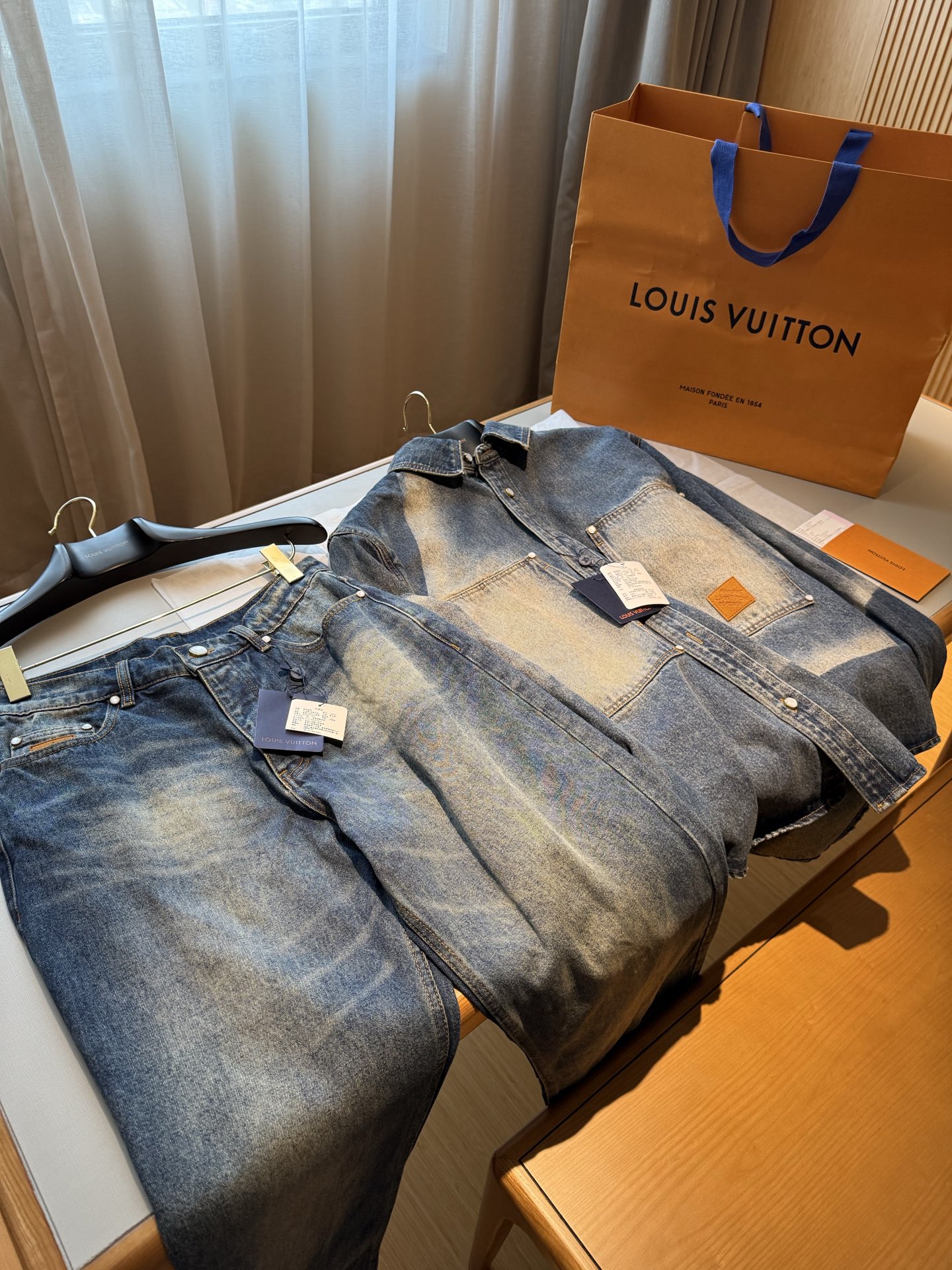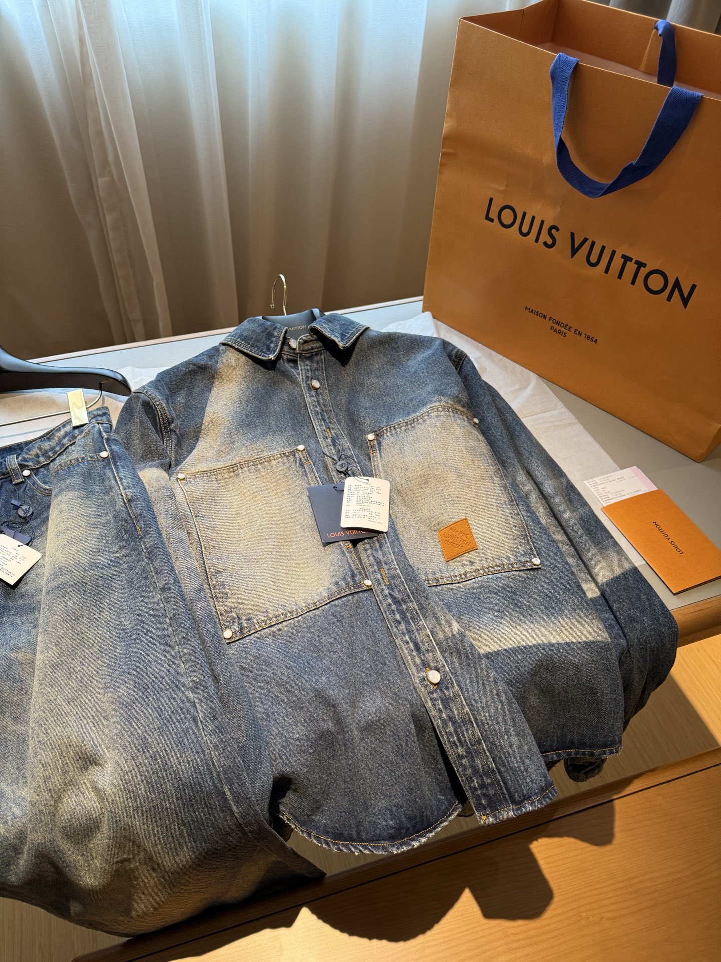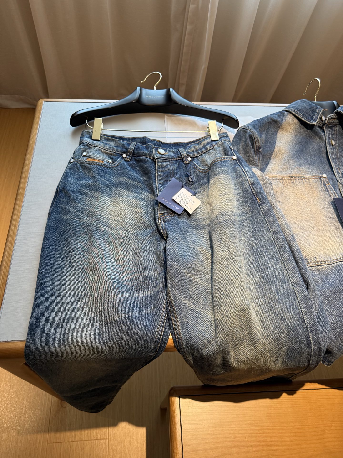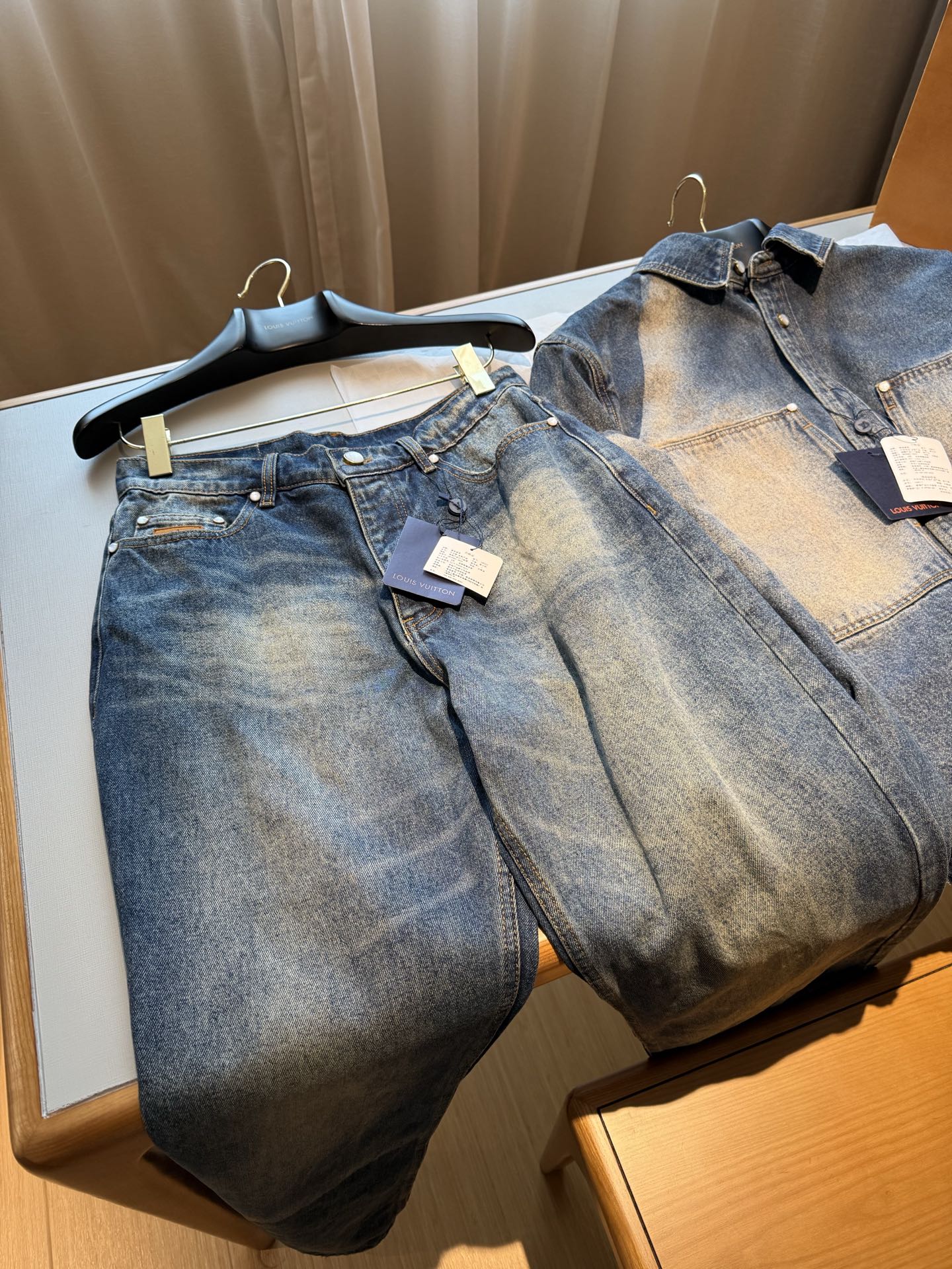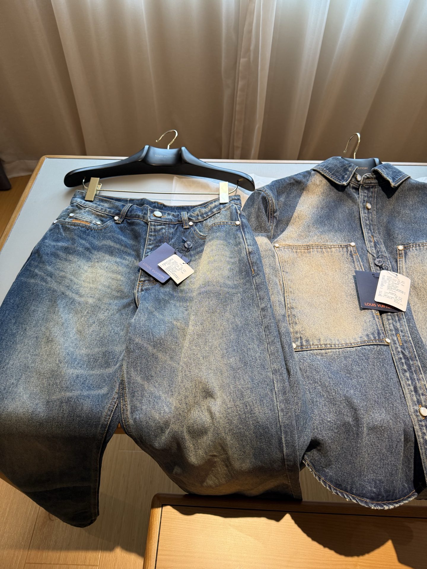 NIGO Louis Vuitton Sun Fading Effect Denim Long Sleeve Shirt Skateboarding Jeans Pants Men'S Spring And Summer Fashion High Street Trend Casual Suit Set #nigo75985