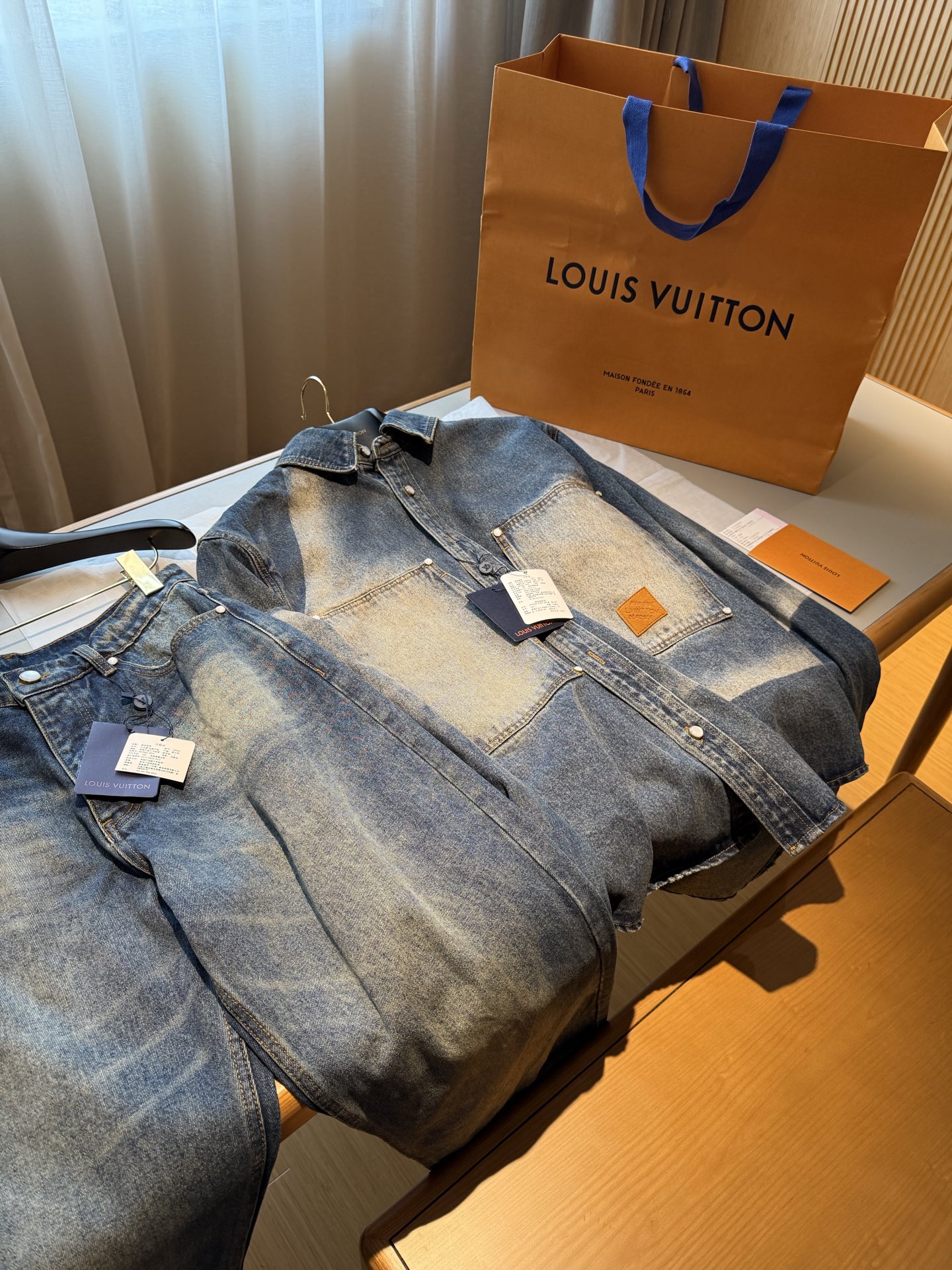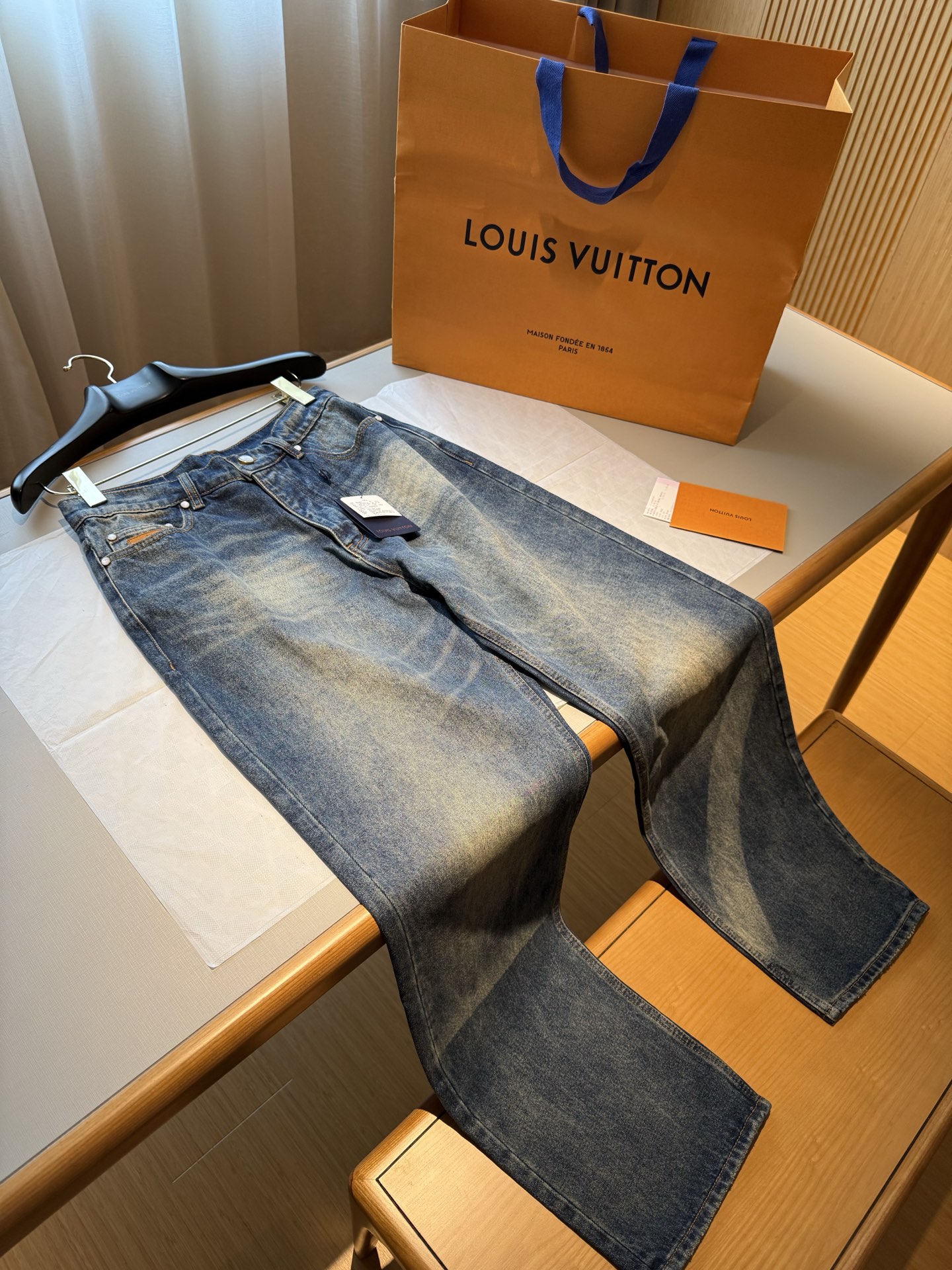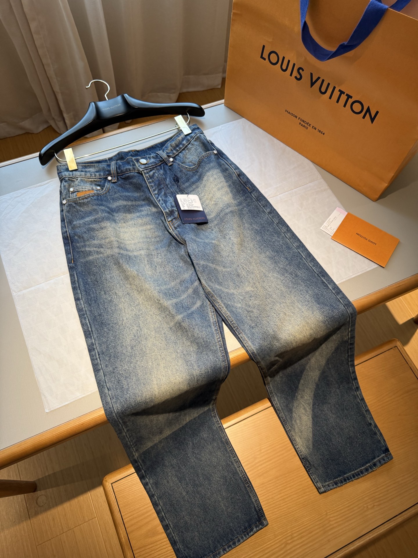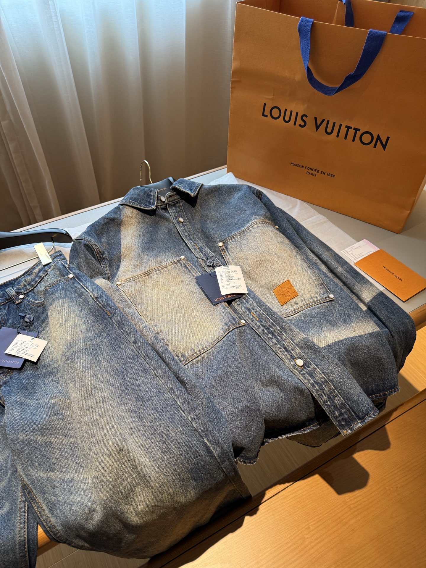 NIGO Louis Vuitton Sun Fading Effect Denim Long Sleeve Shirt Skateboarding Jeans Pants Men'S Spring And Summer Fashion High Street Trend Casual Suit Set #nigo75985