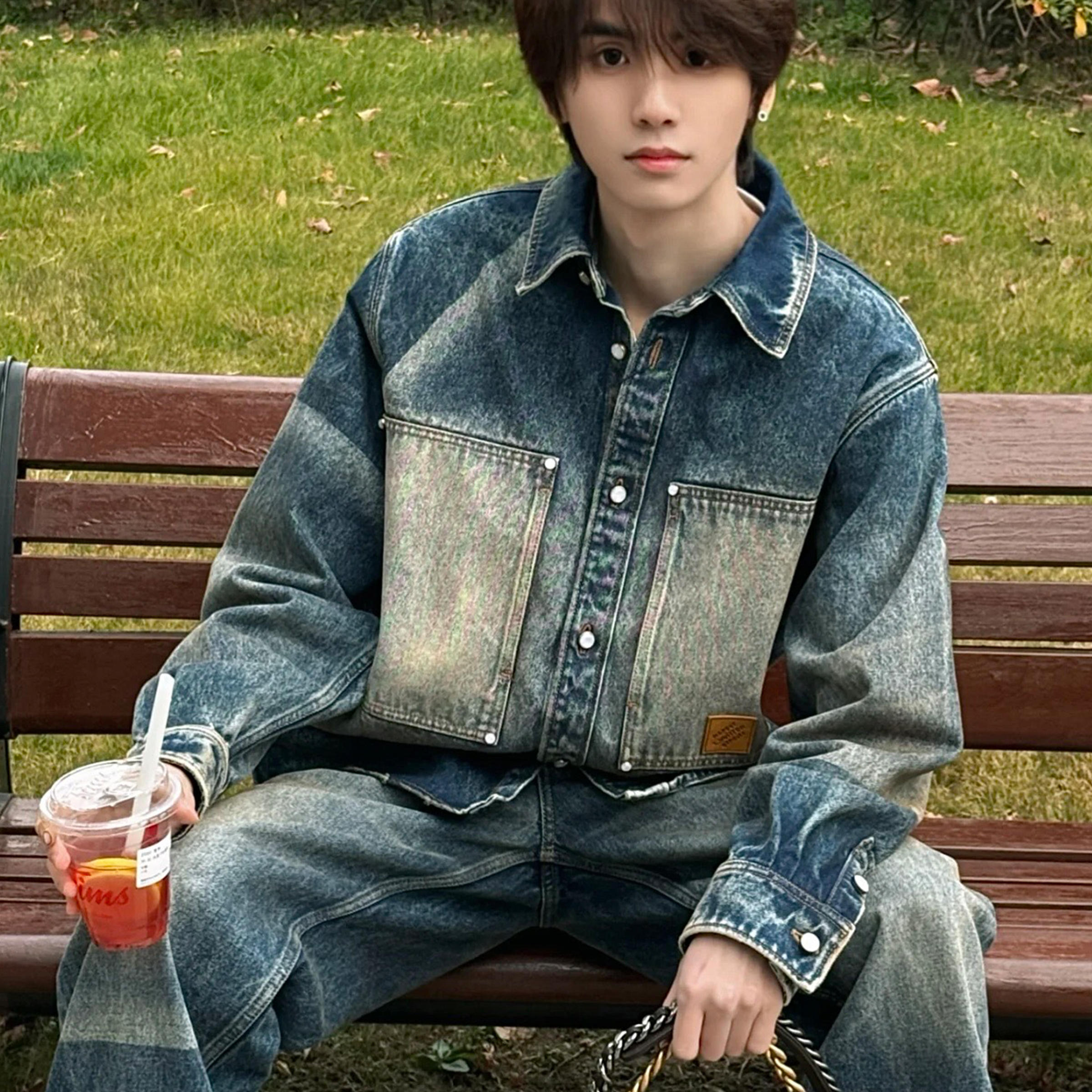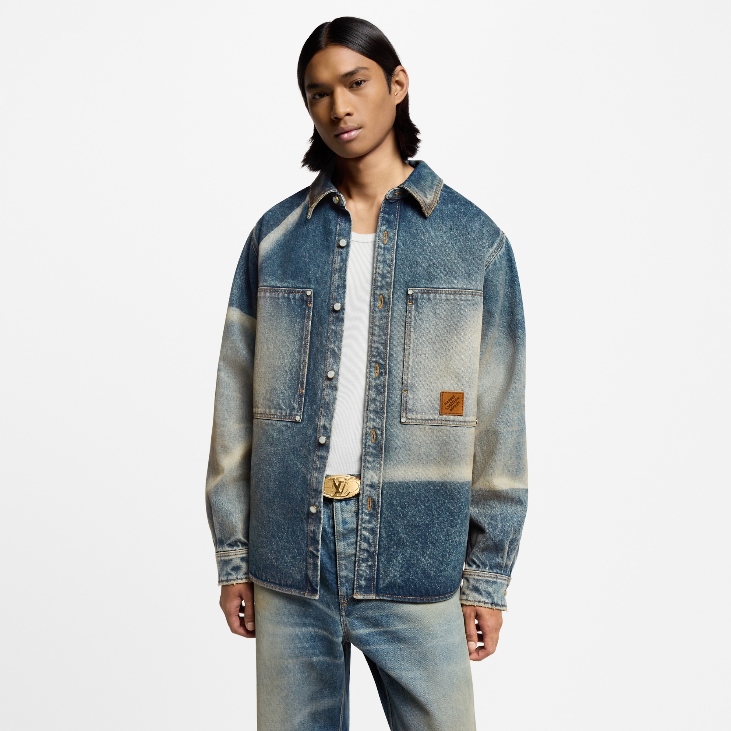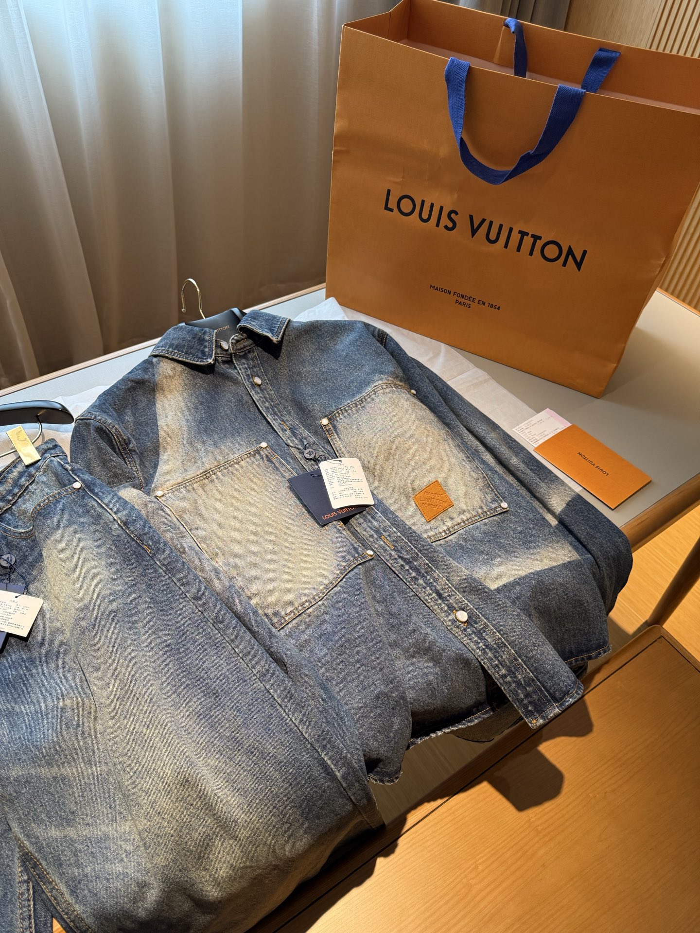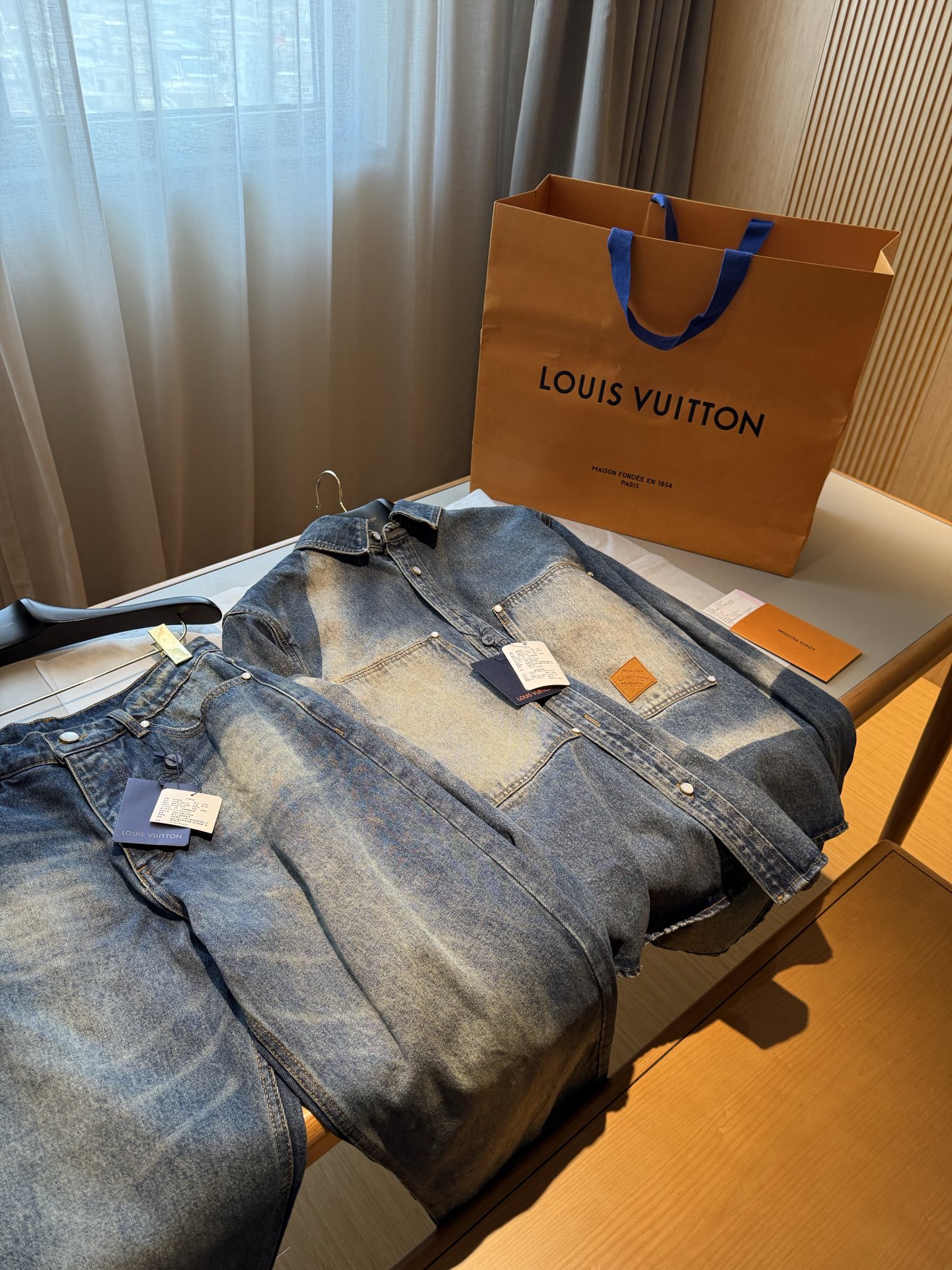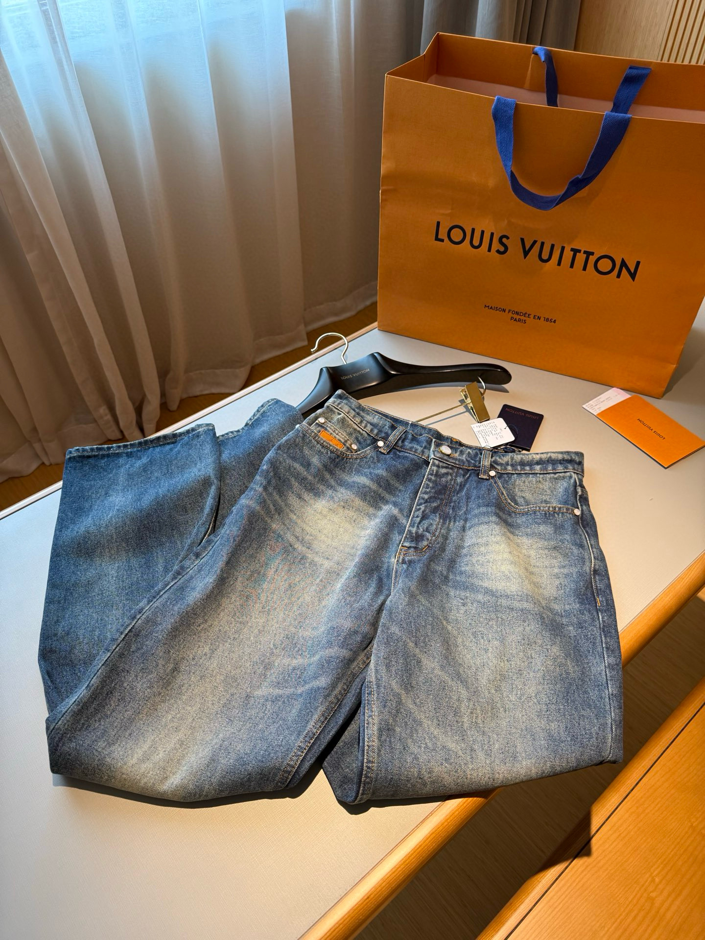 NIGO Louis Vuitton Sun Fading Effect Denim Long Sleeve Shirt Skateboarding Jeans Pants Men'S Spring And Summer Fashion High Street Trend Casual Suit Set #nigo75985