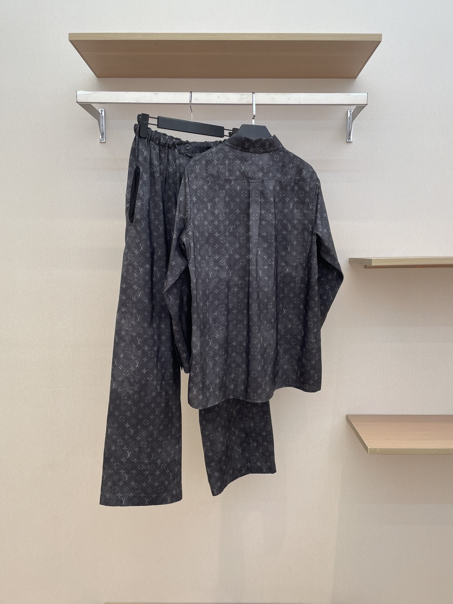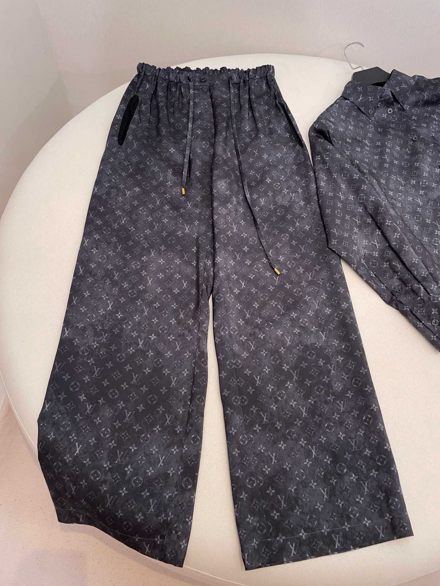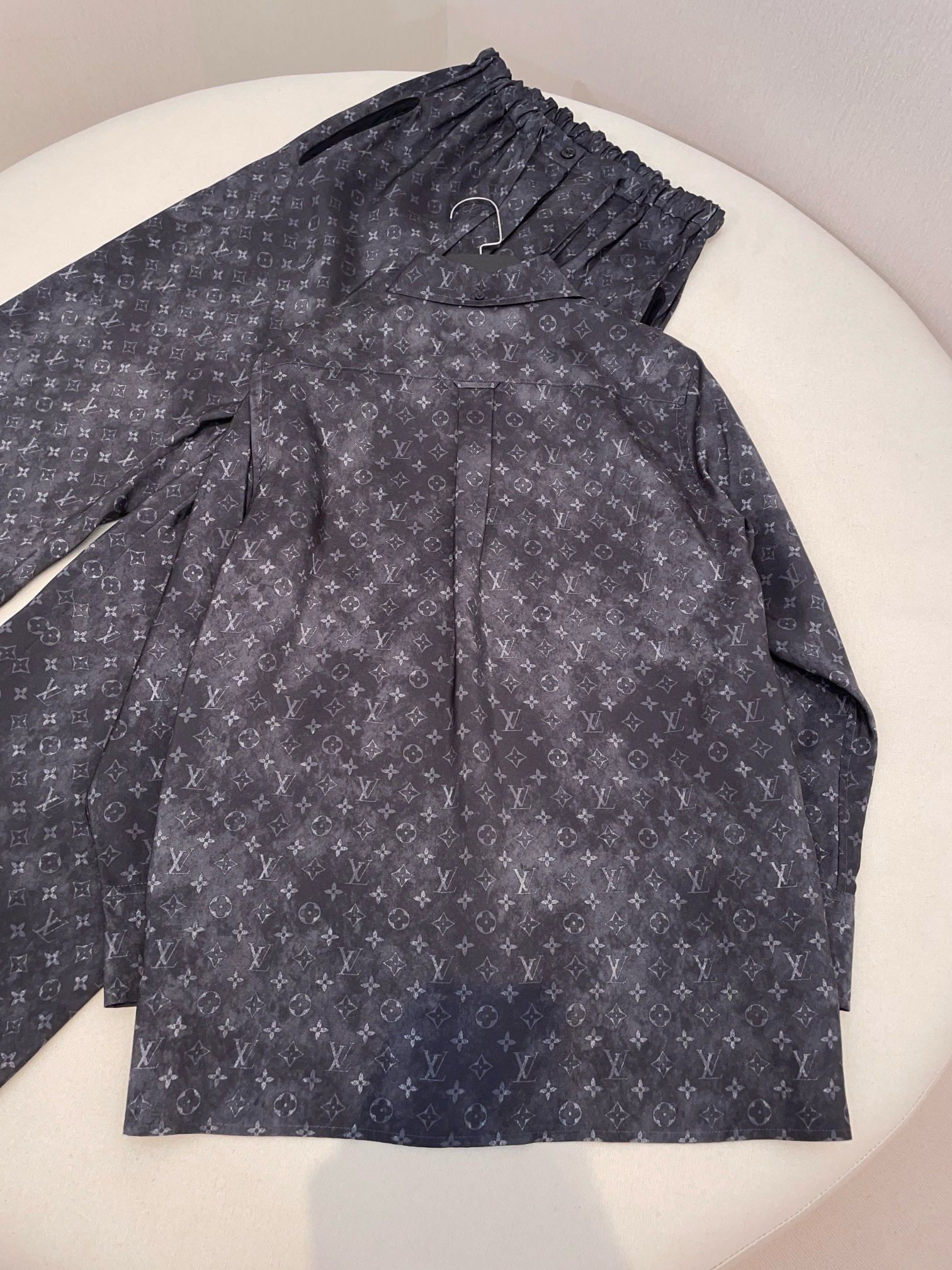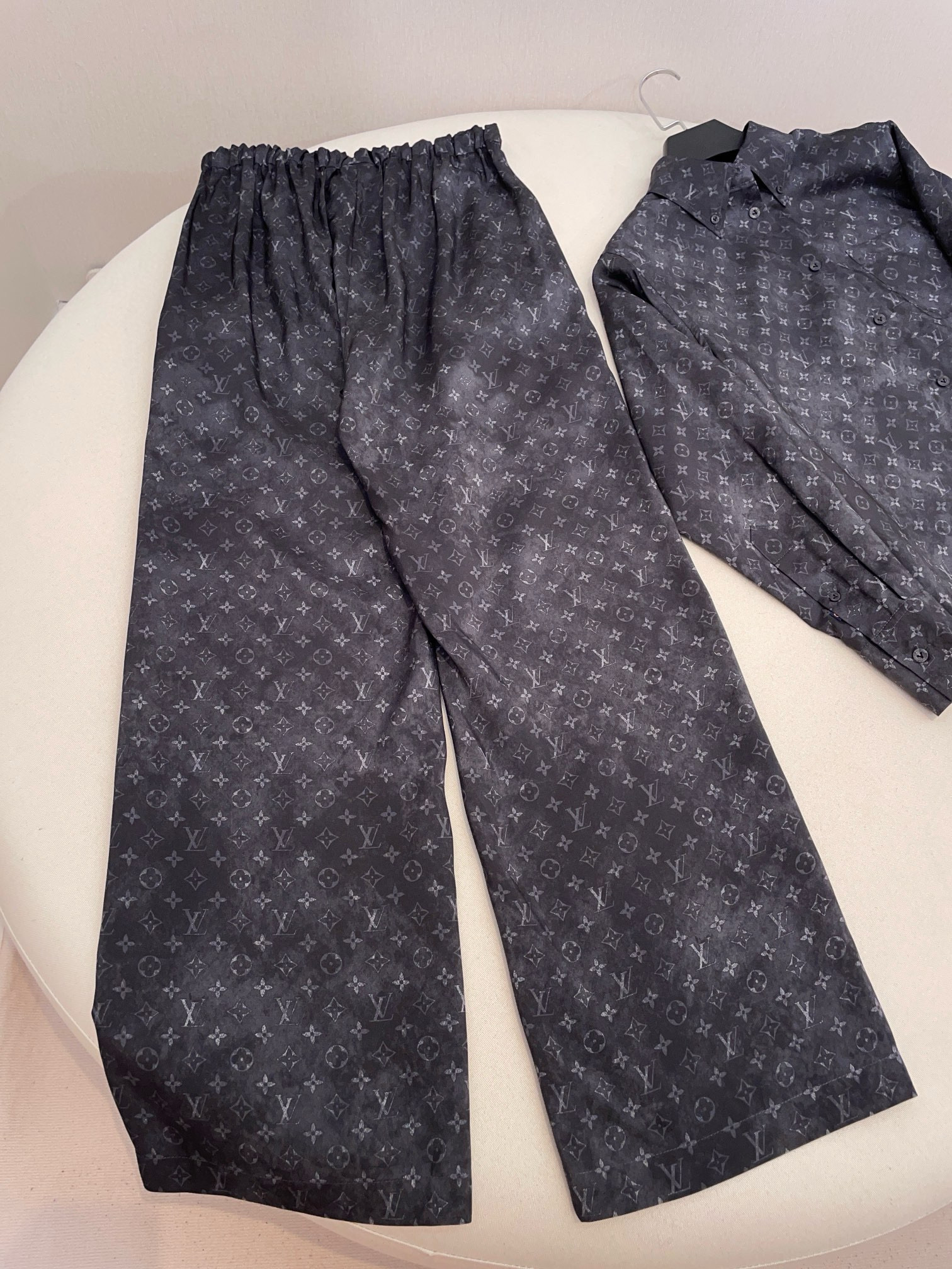 NIGO Louis Vuitton Women‘s Summer Letter Printed Single Breasted Long Sleeve Shirt Lace Up Casual Pants Set Suit #nigo75558