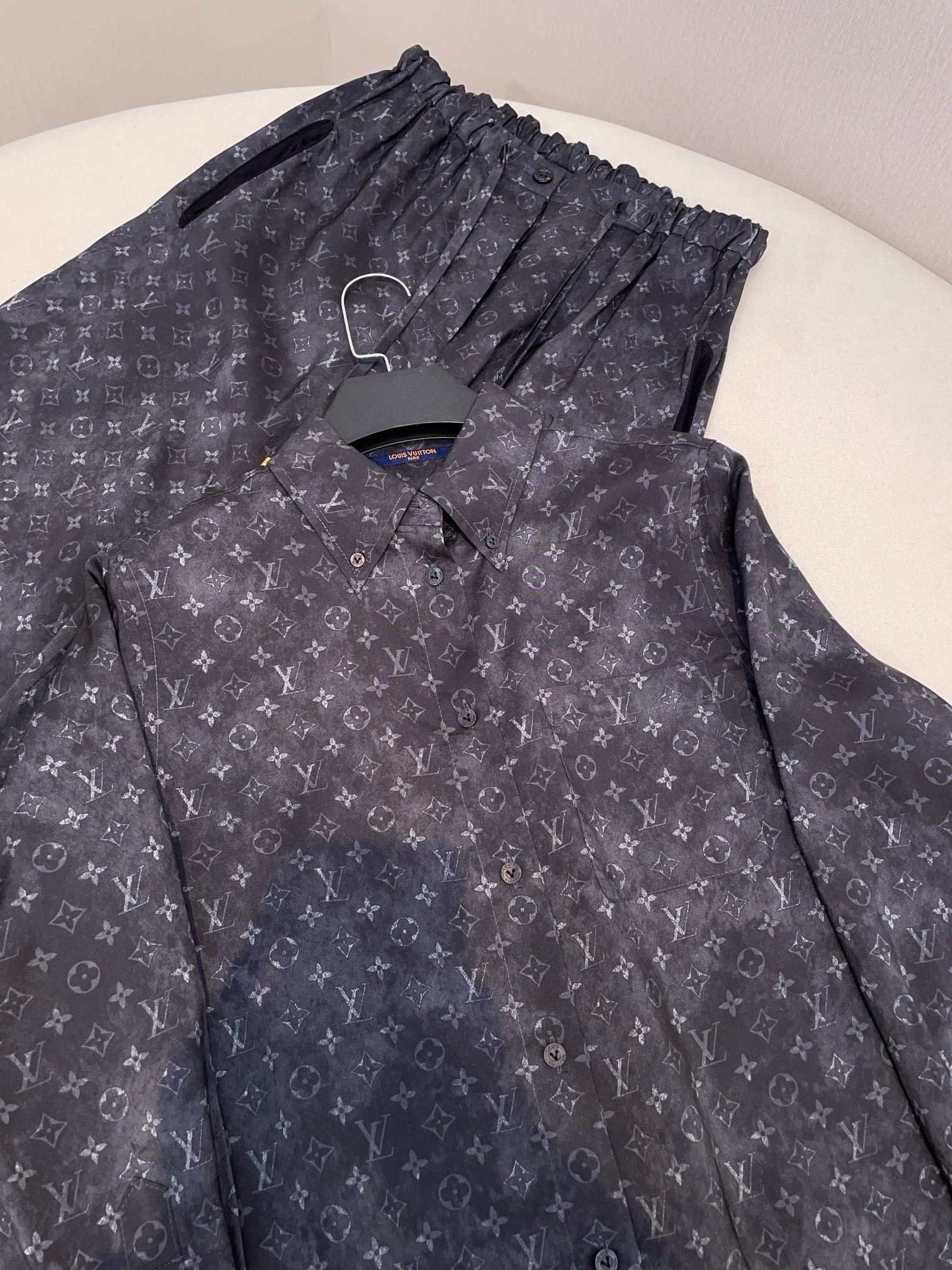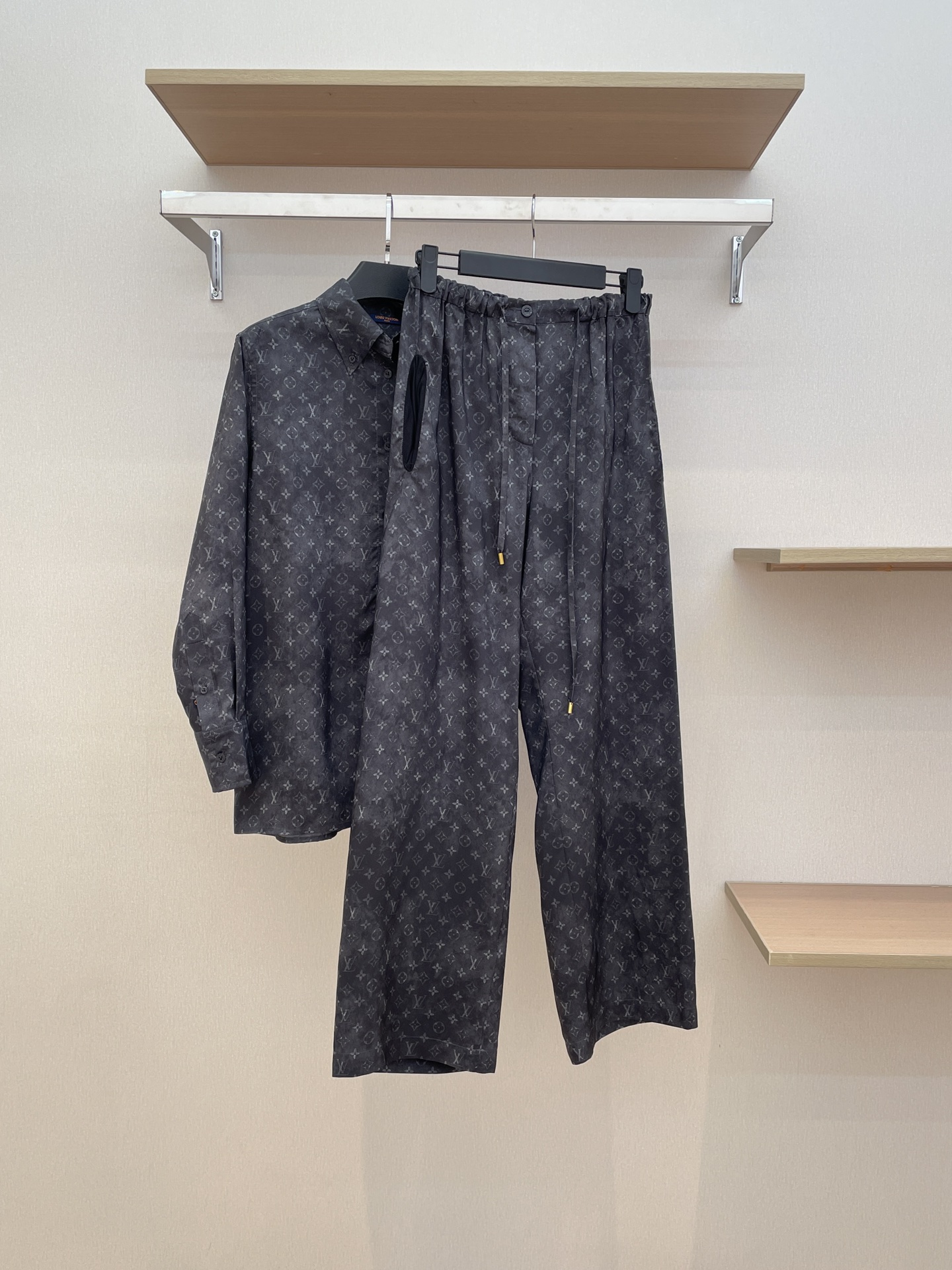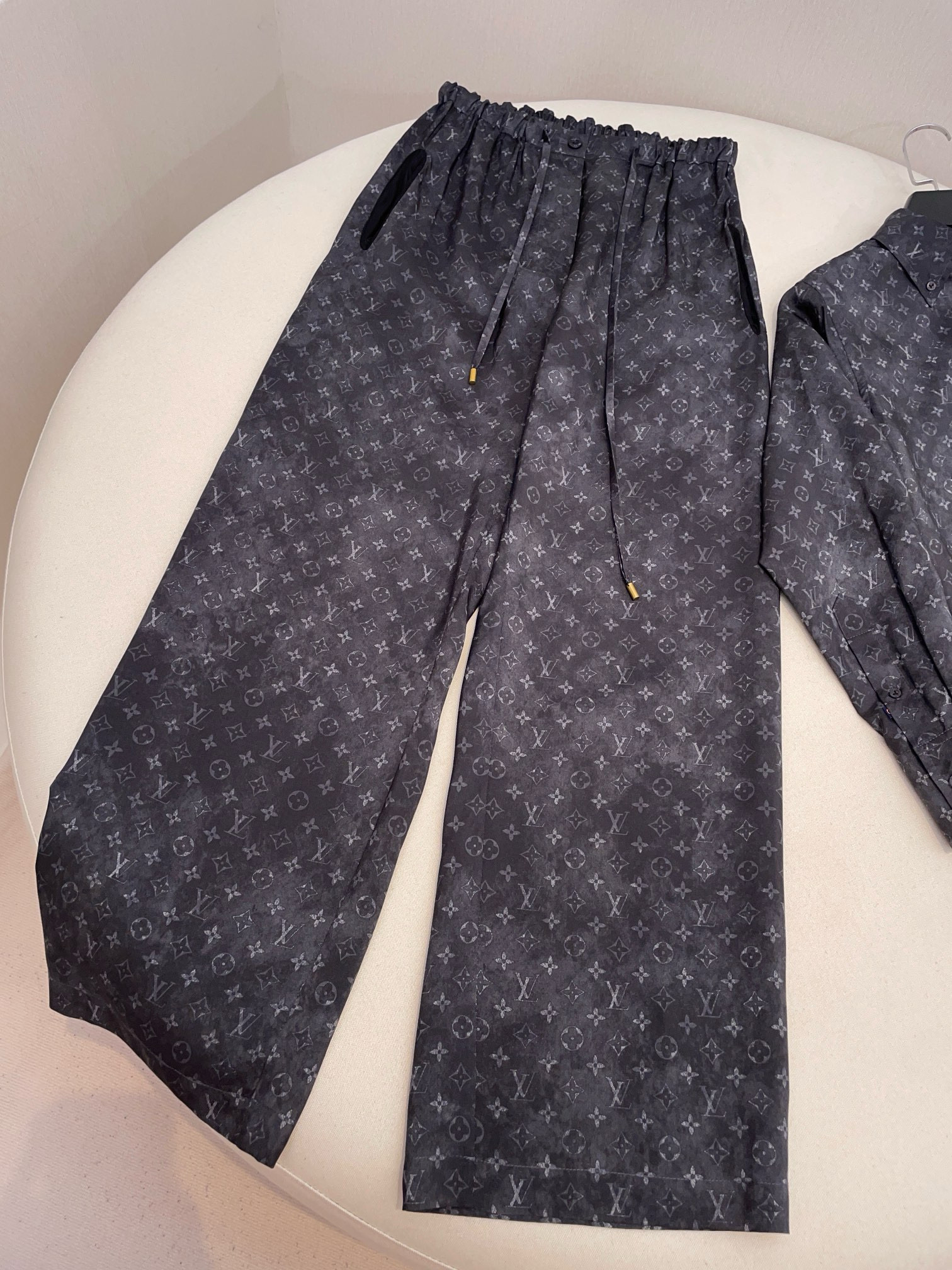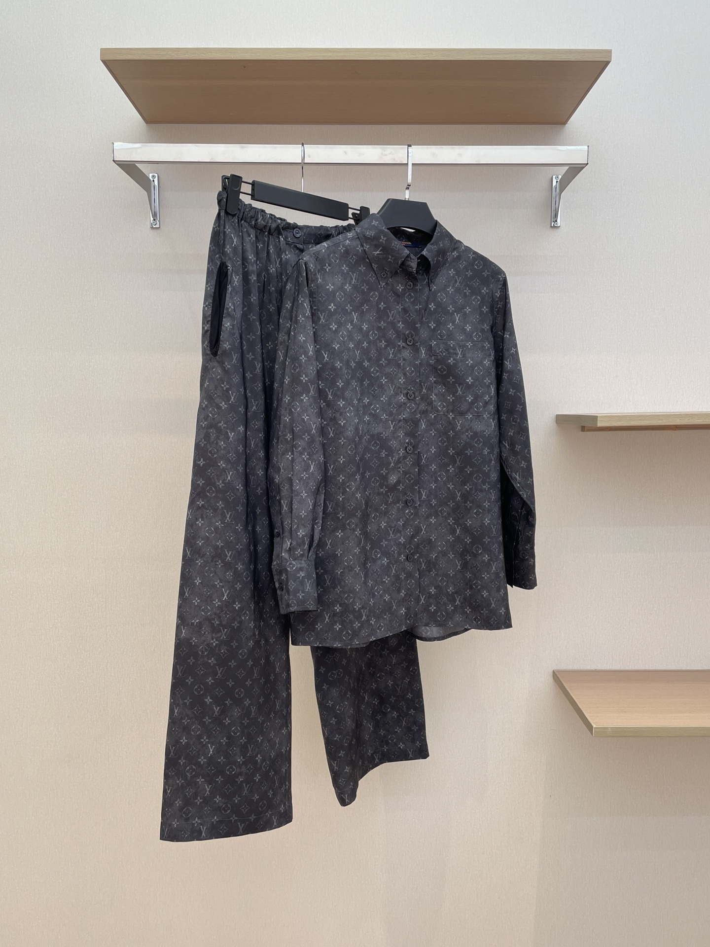 NIGO Louis Vuitton Women‘s Summer Letter Printed Single Breasted Long Sleeve Shirt Lace Up Casual Pants Set Suit #nigo75558