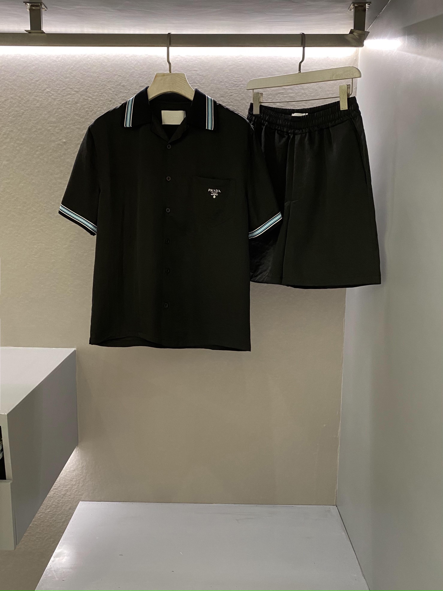NIGO Prada Men's Summer Logo Printed Single Breasted Short Sleeve Shirt Casual Fashion Shorts Set Suit #nigo72428