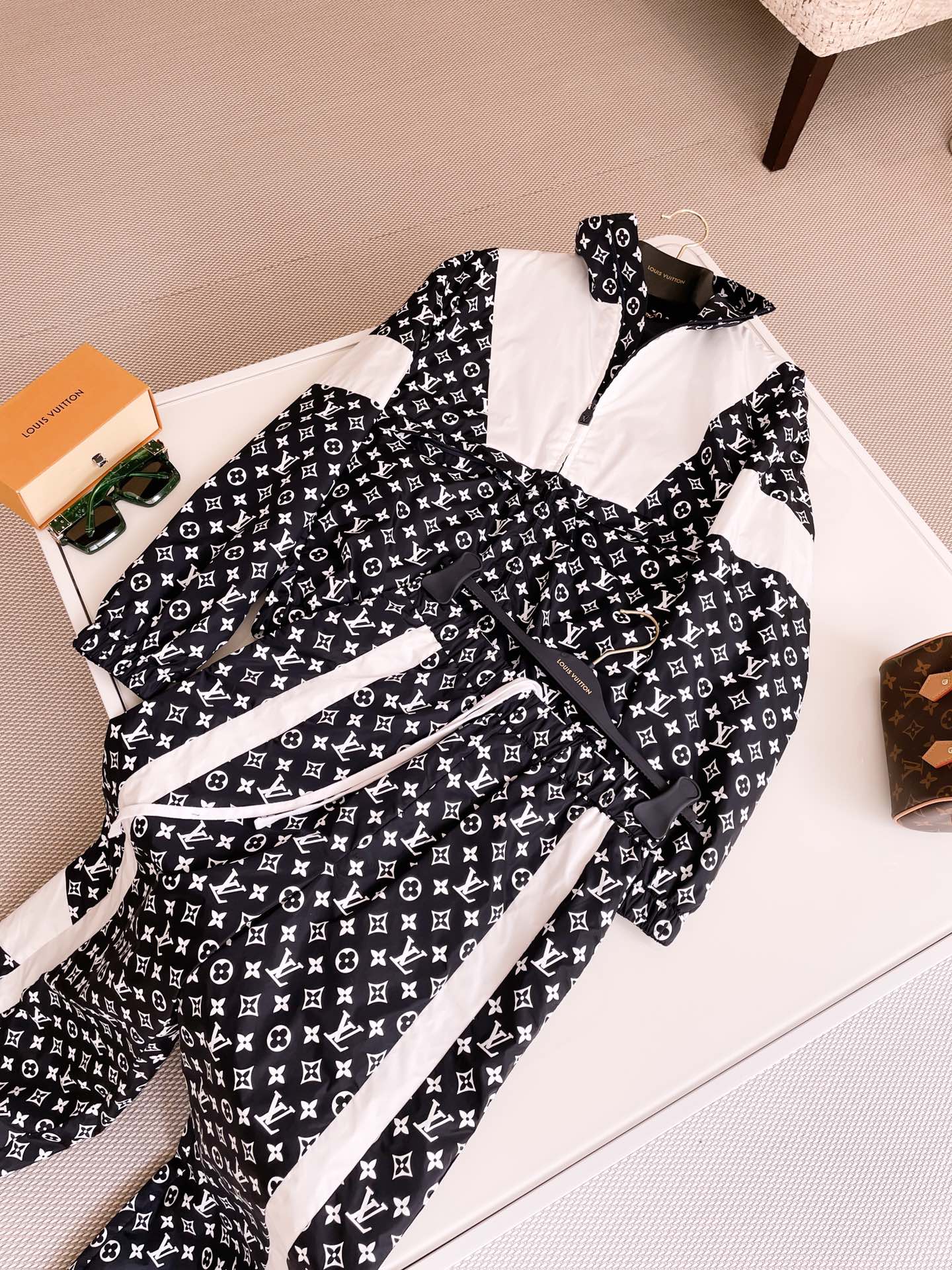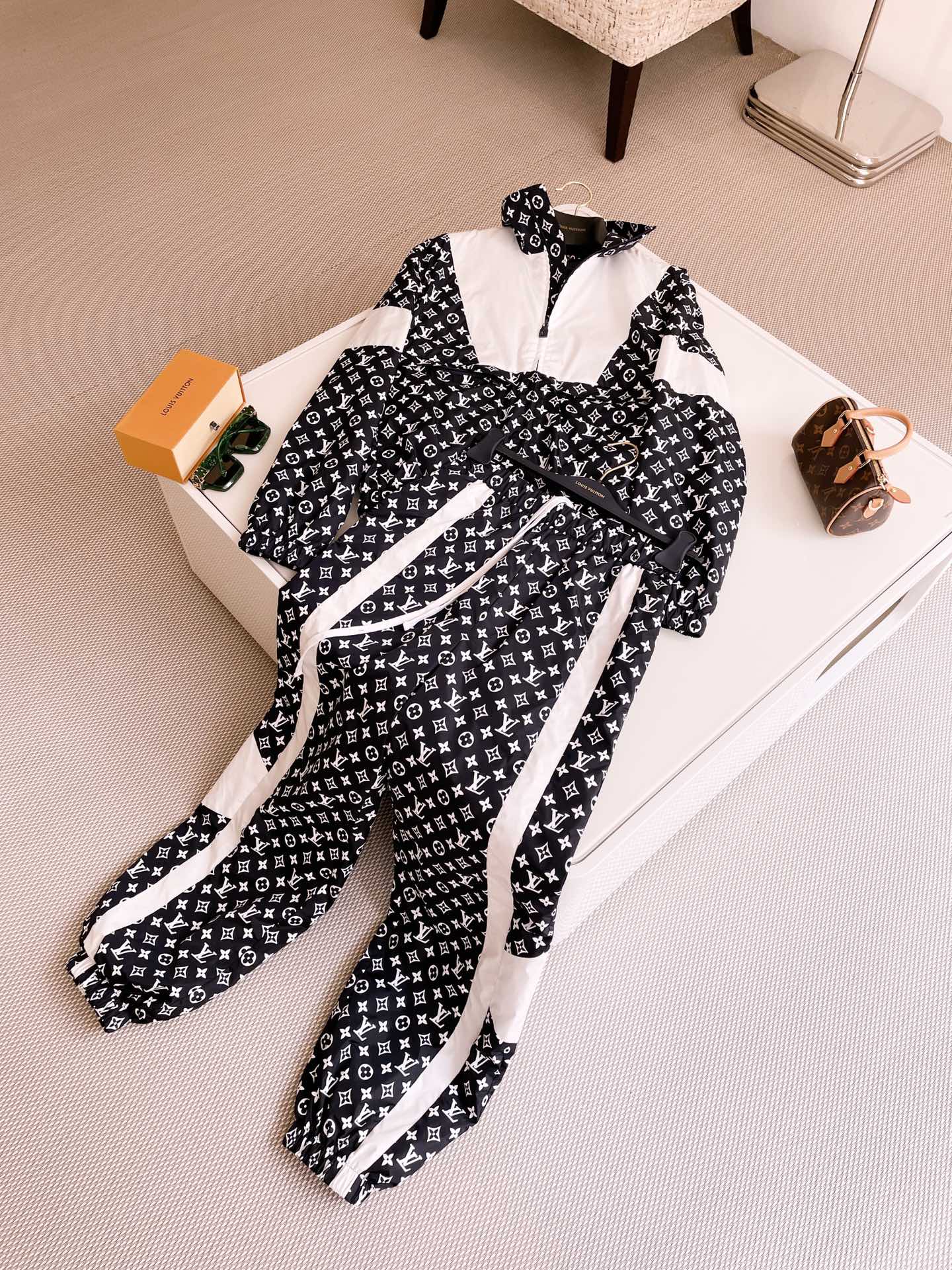 NIGO Louis Vuitton Men's Spring And Autumn Logo Letters Full Print Color Blocking Collar Zipper Long Sleeved Jacket Mid Waist Drawstring Knit Sweatpants Pants Suit Set #nigo73493