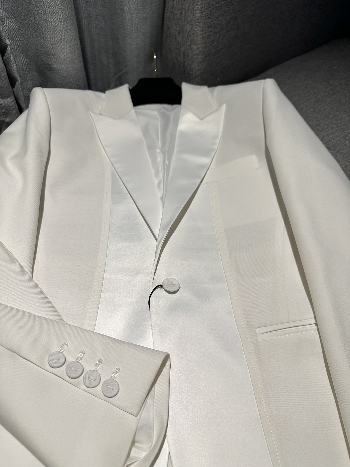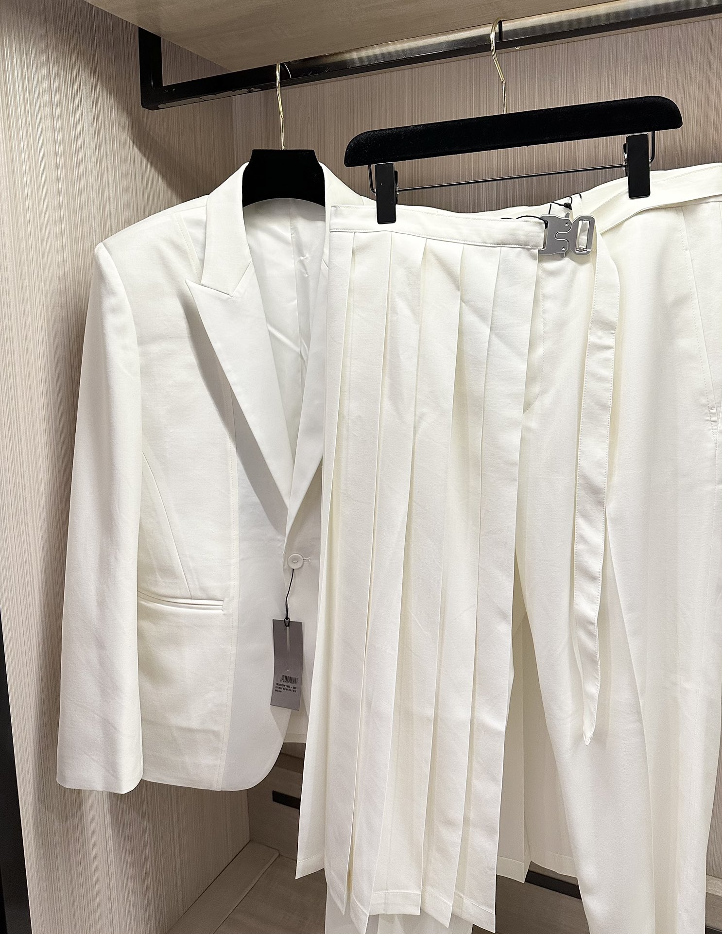 NIGO Dior Men's And Women's White Wool Single-breasted Blazer Top Jacket Pleated Bustier Skirt Pants Three-piece Set Suit #nigo73599