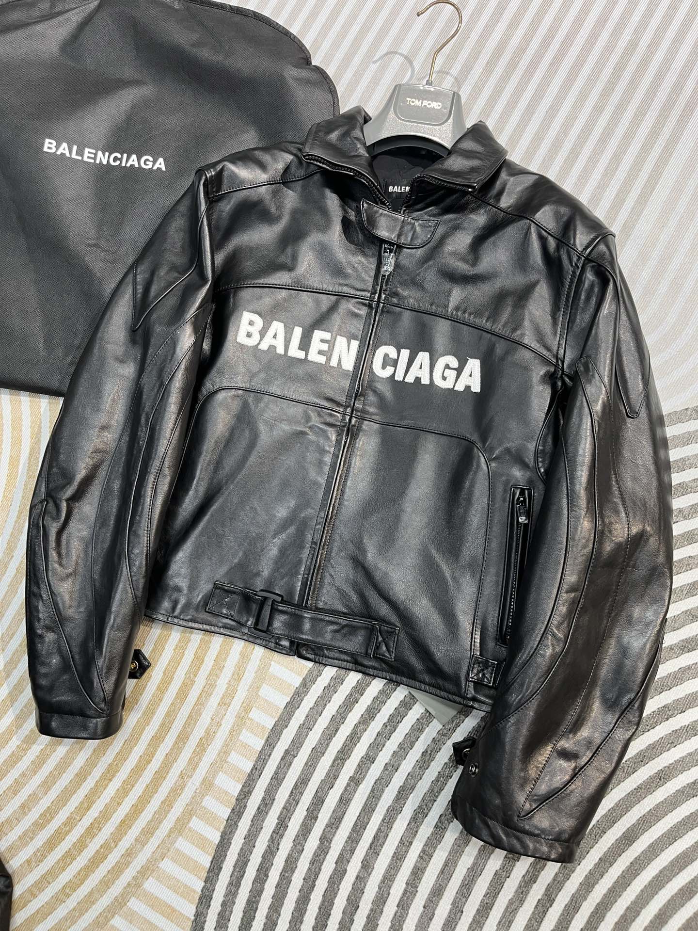 NIGO Balenciaga Men's Spring And Fall Monogrammed Black Zipper Long Sleeve Leather Biker Jacket Leather Pants Suit Set #nigo73678