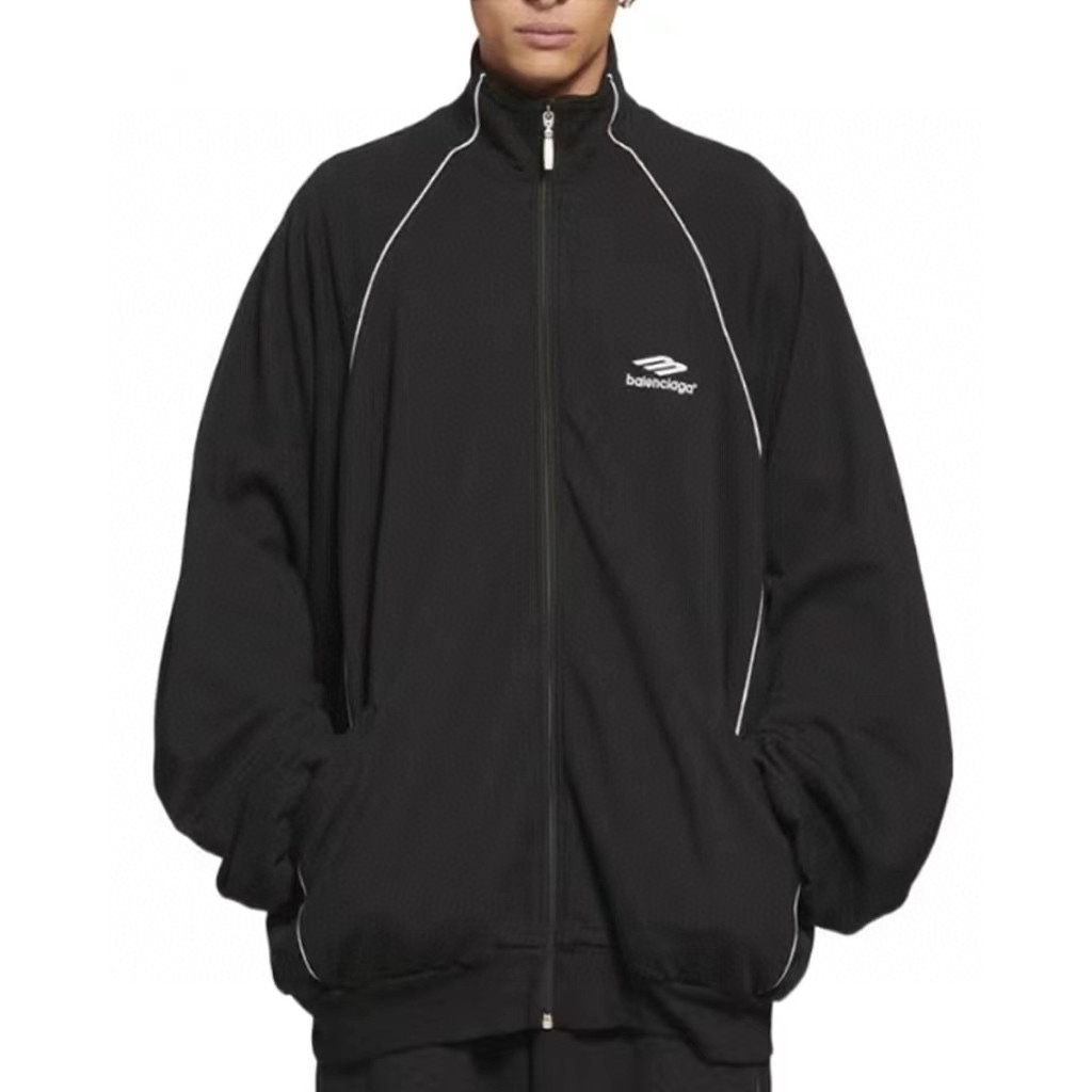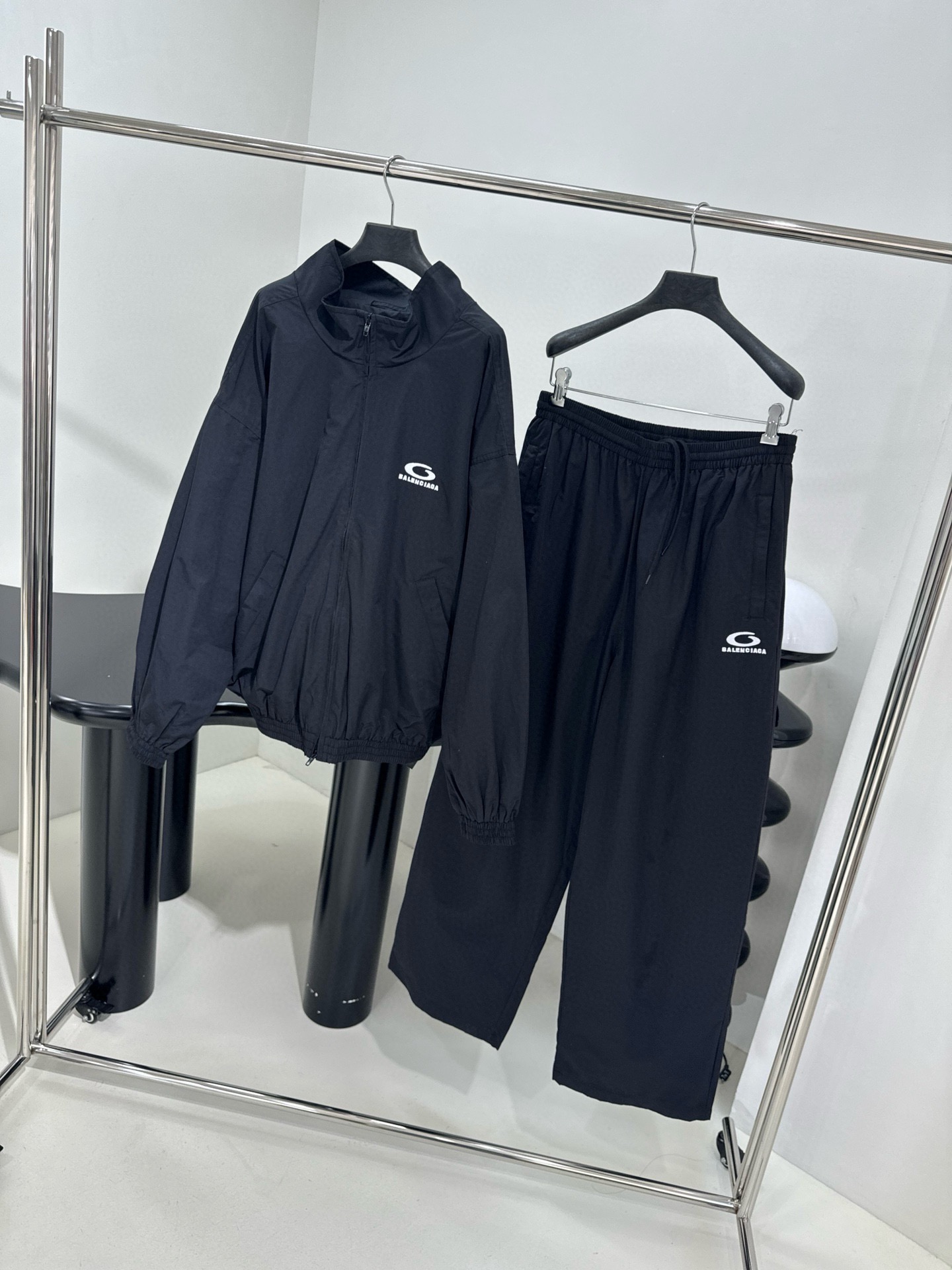 NIGO Balenciaga Men's Spring and Autumn Black Logo Printed Standing Collar Zipper Sports Jacket Loose Midriff Casual Pants Suit Set #nigo73687