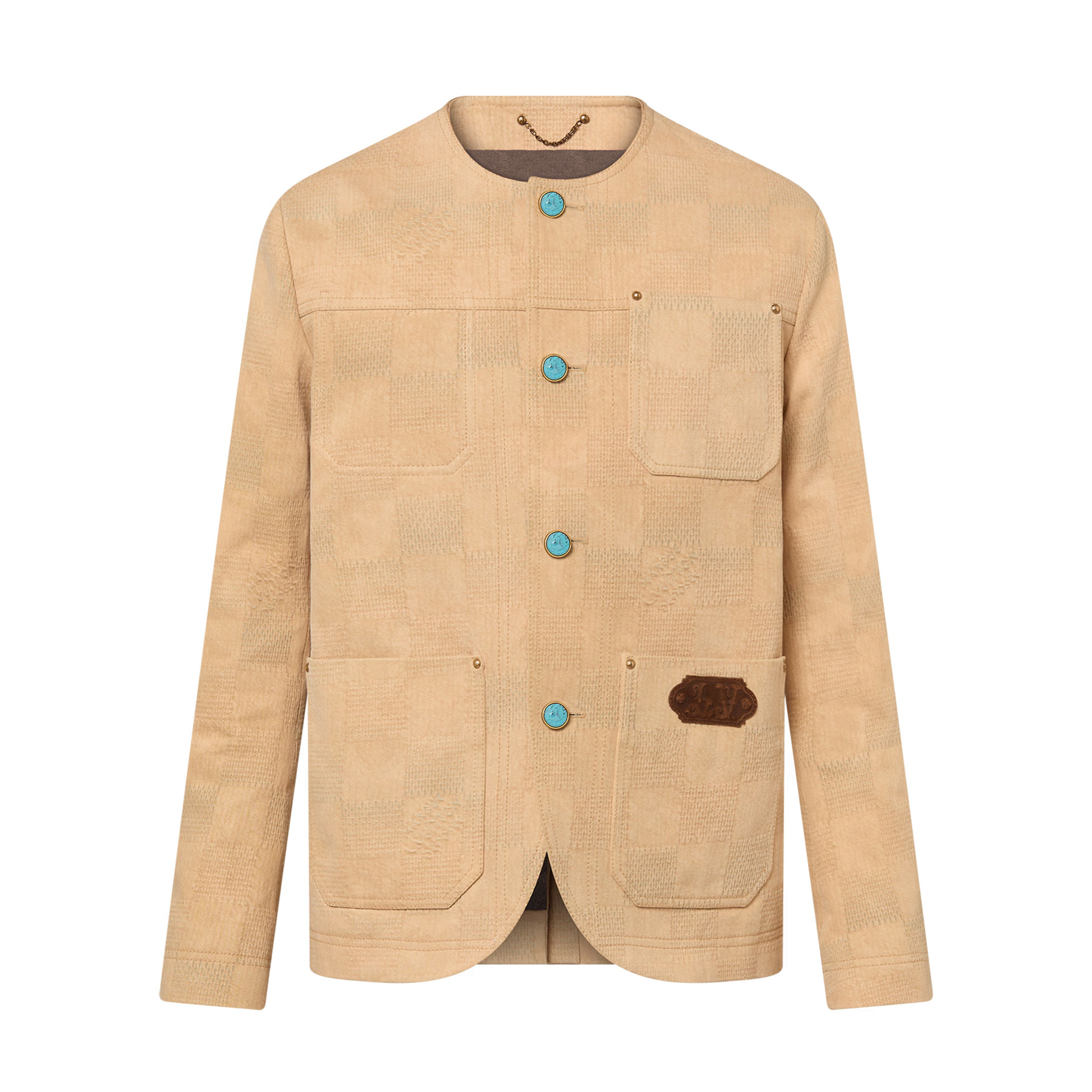 NIGO Louis Vuitton Men's Spring And Fall Khaki Letters Jacquard Round Neck Single Breasted Casual Long Sleeved Jacket Pants Suit Set #nigo73769