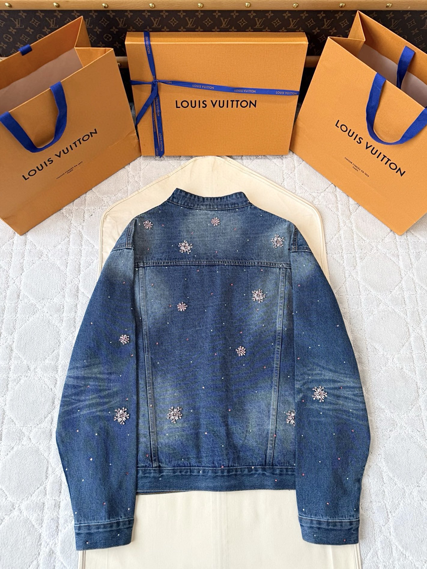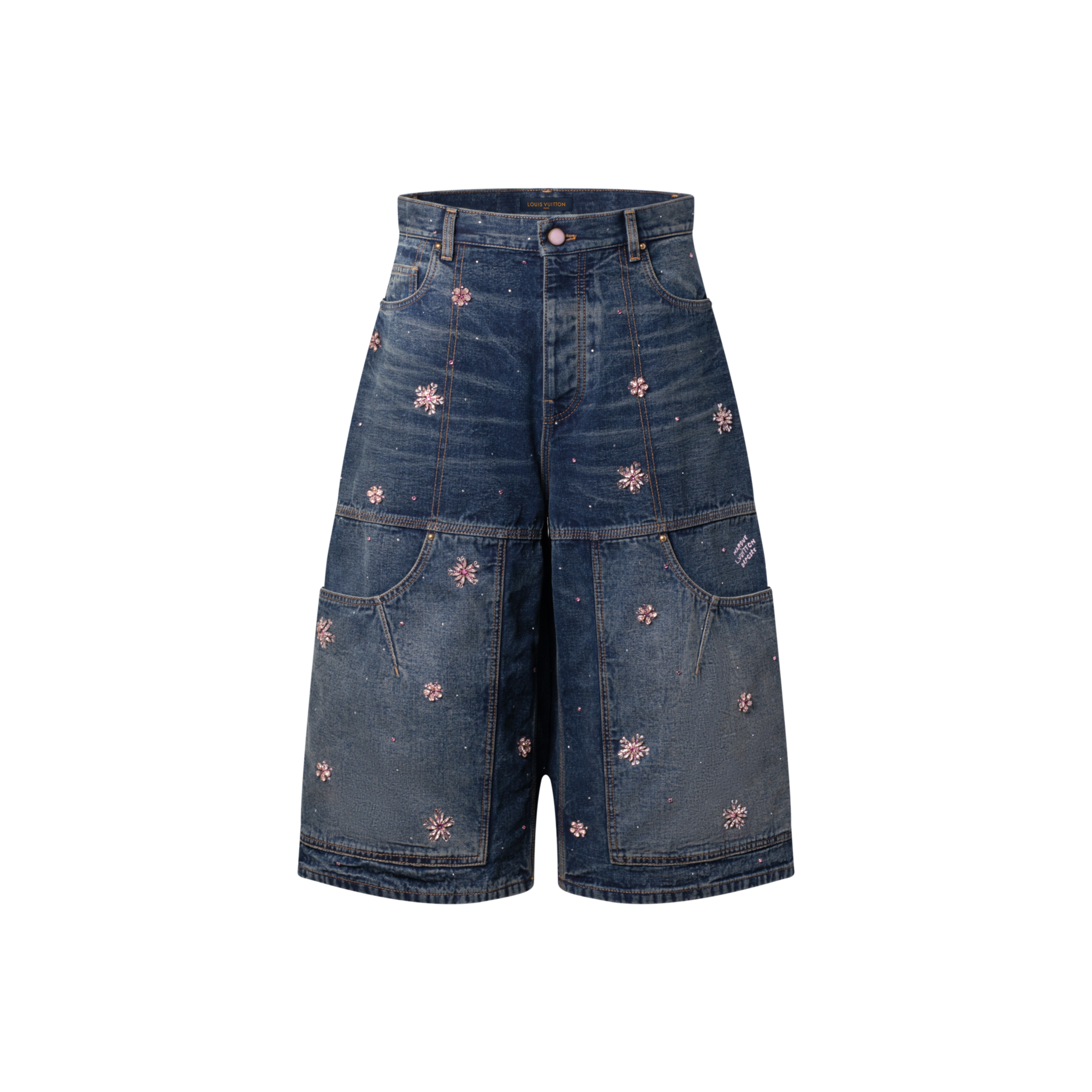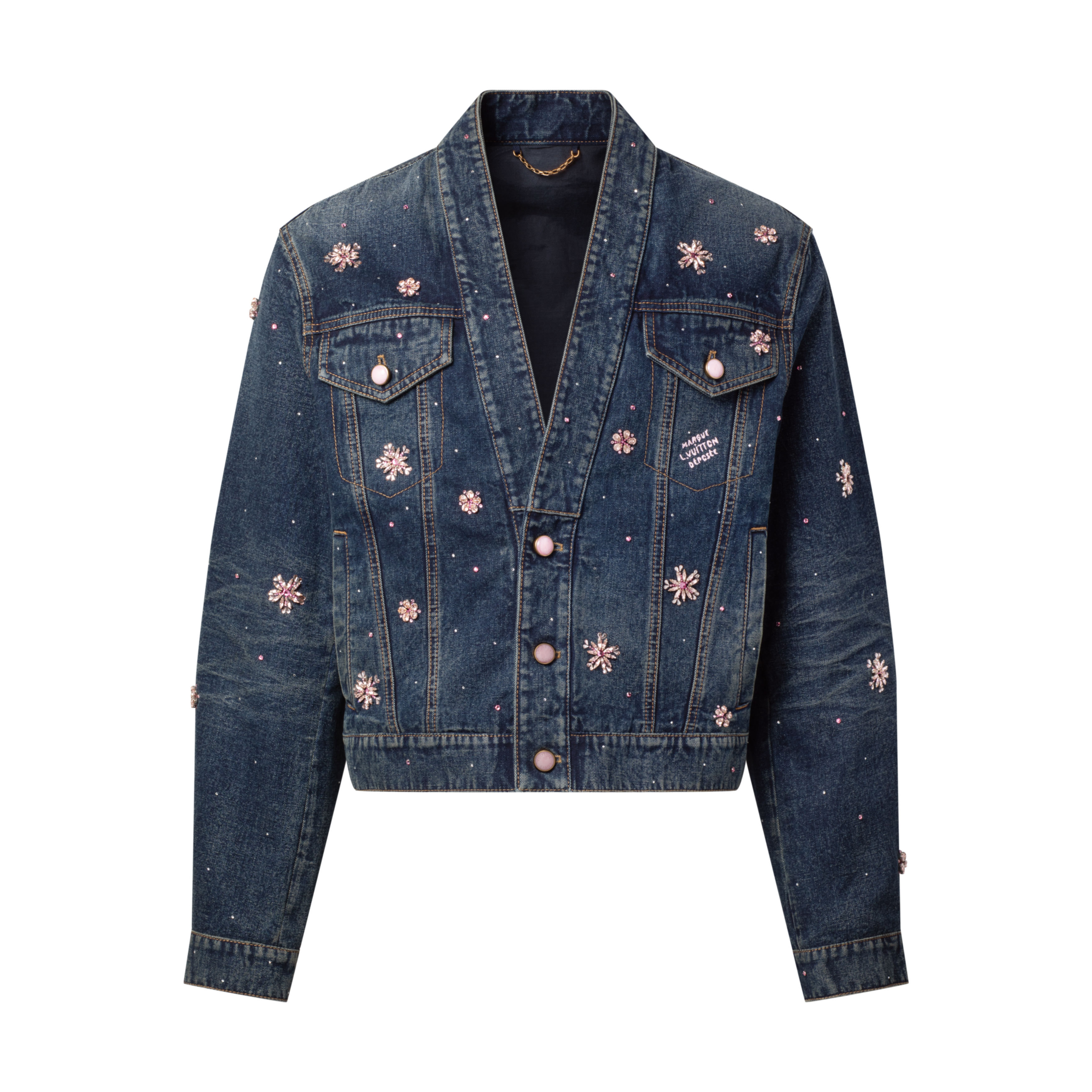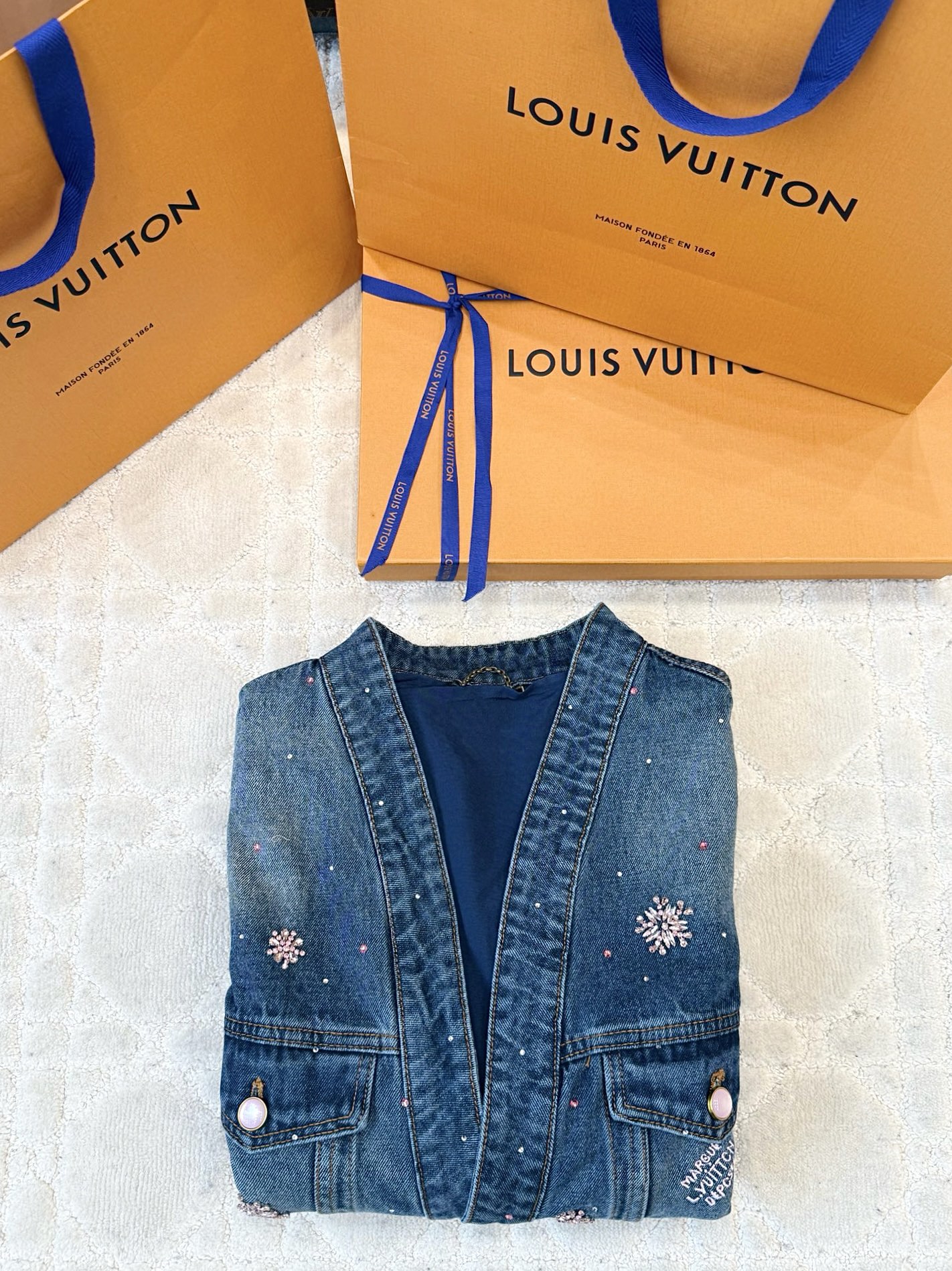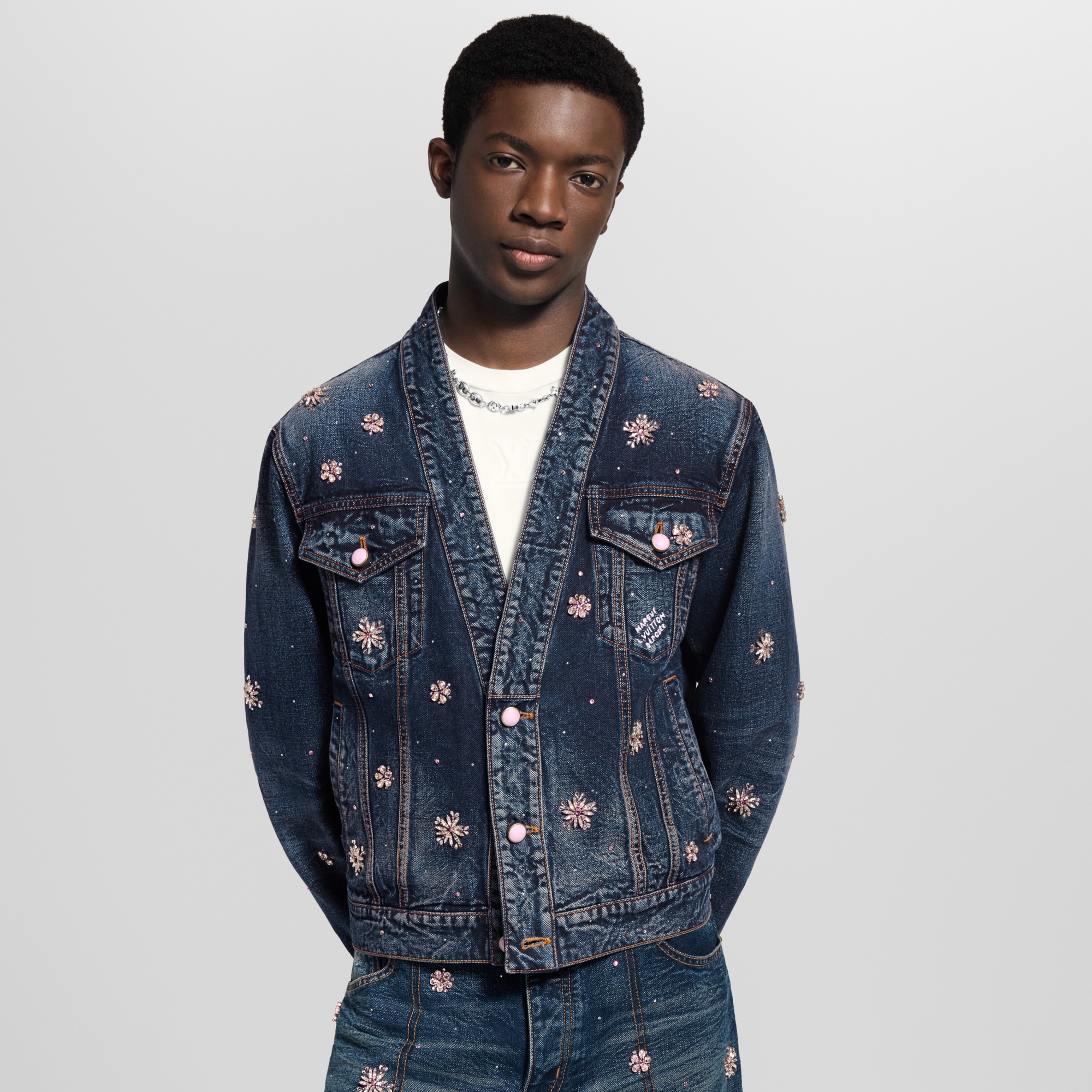 NIGO Louis Vuitton Men's and Women's Fashion Casual V Neck Embroidered Kimono Style Long Sleeve Denim Jacket Embroidered Workwear Denim Shorts Suit Set #nigo78735