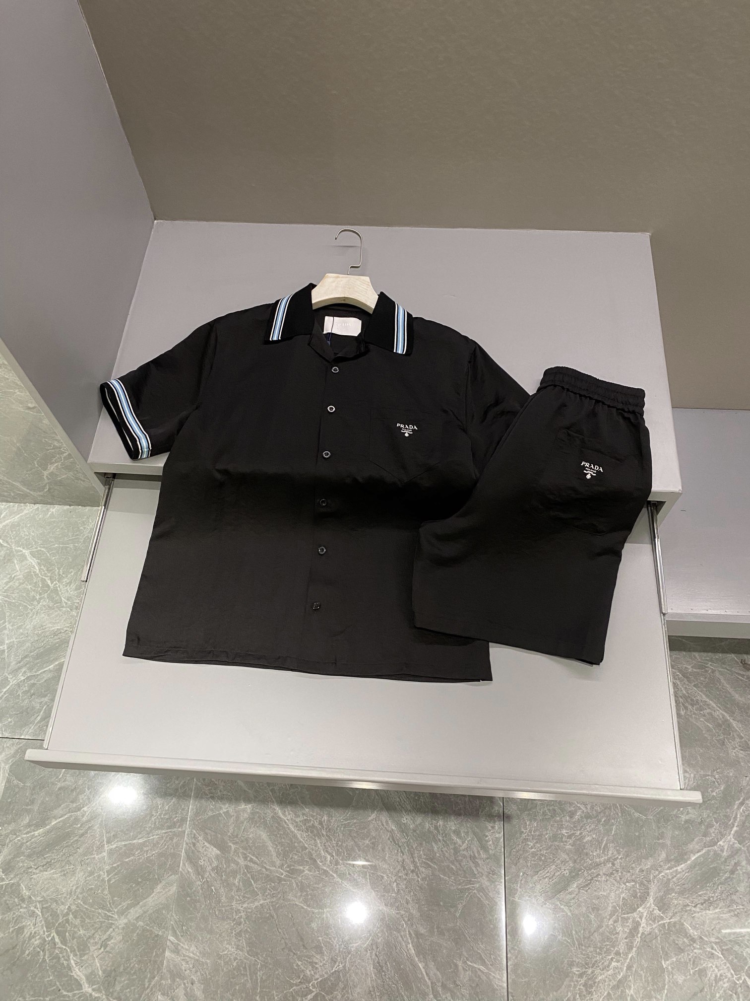 NIGO Prada Men's Summer Logo Printed Single Breasted Short Sleeve Shirt Casual Fashion Shorts Set Suit #nigo72428