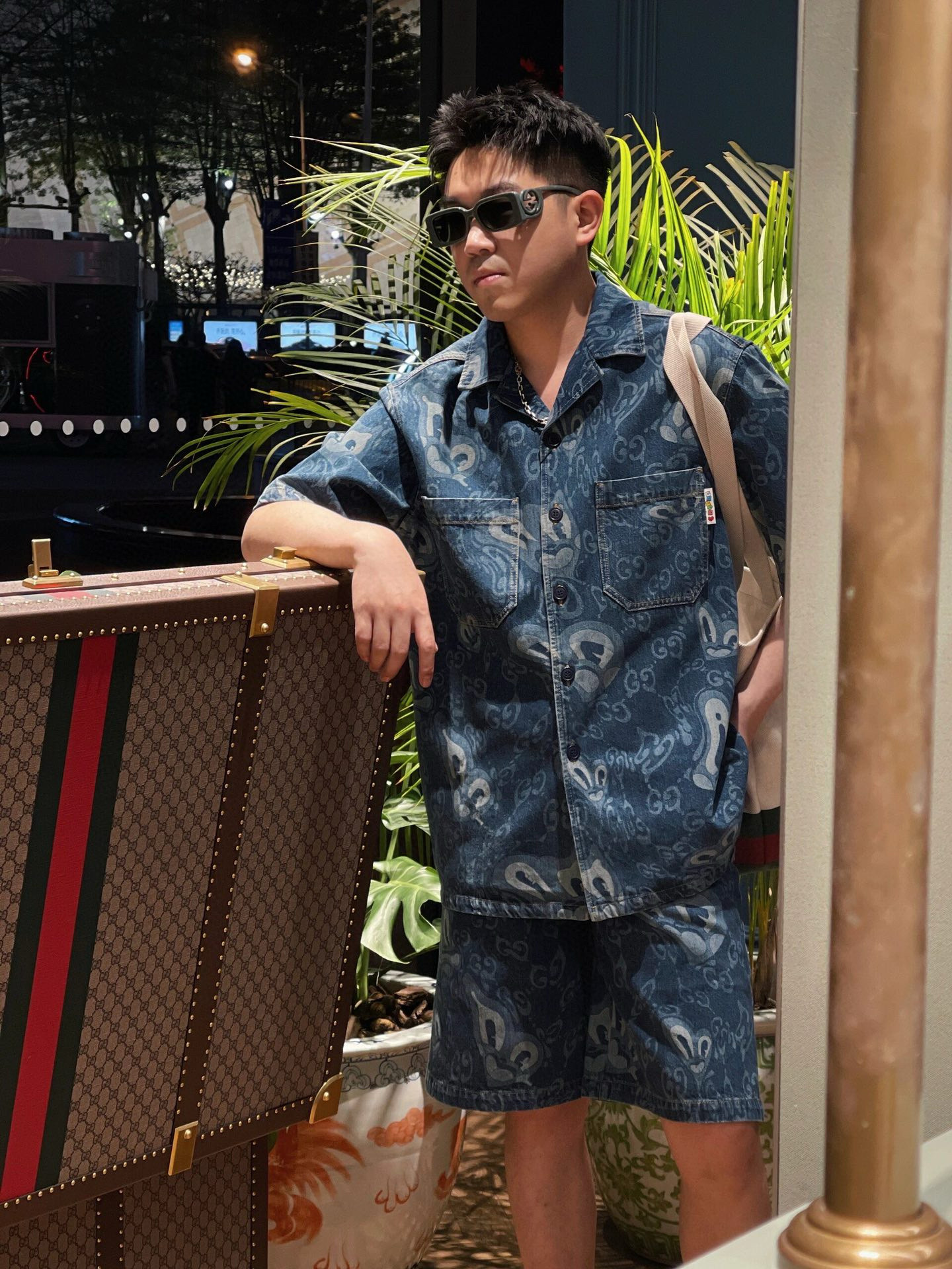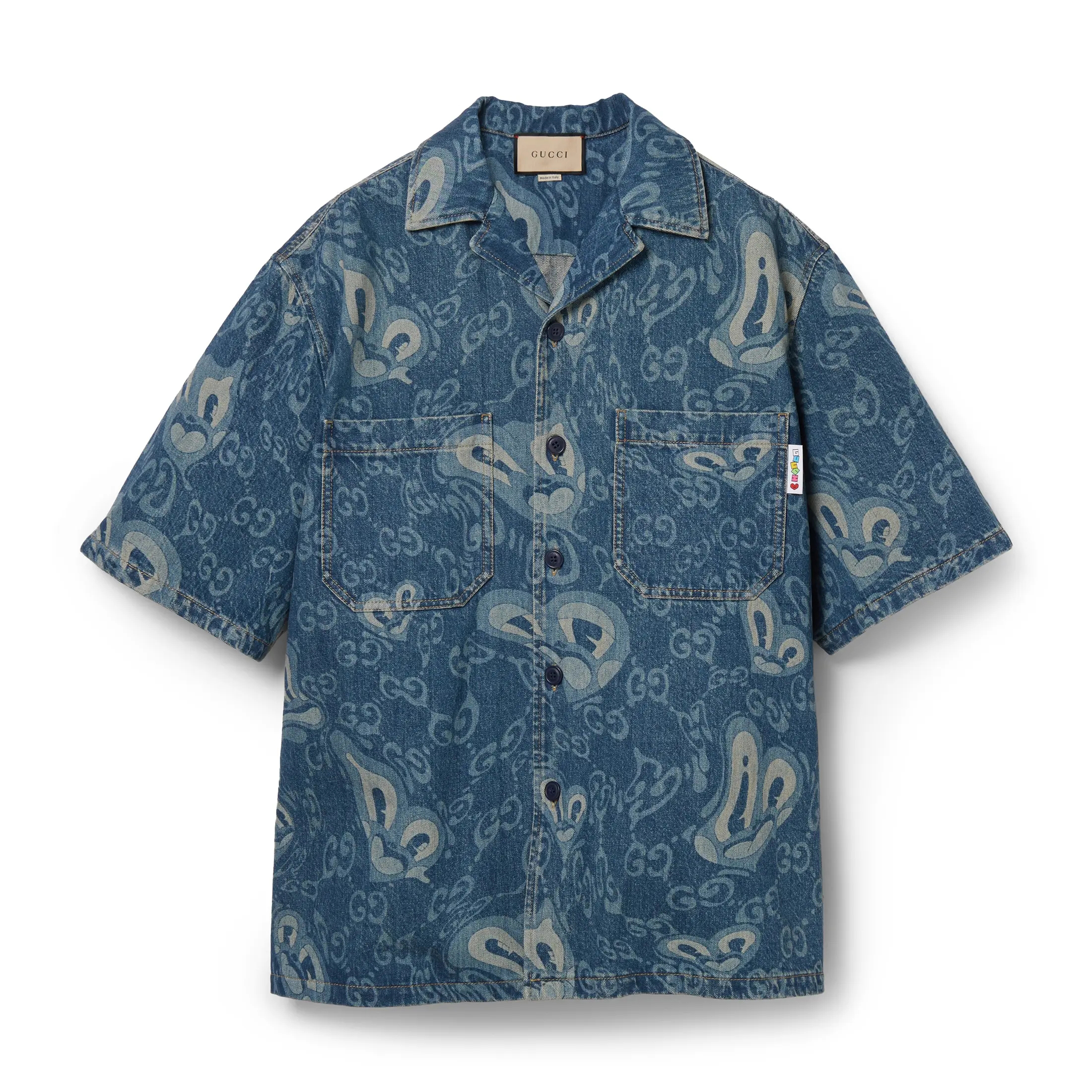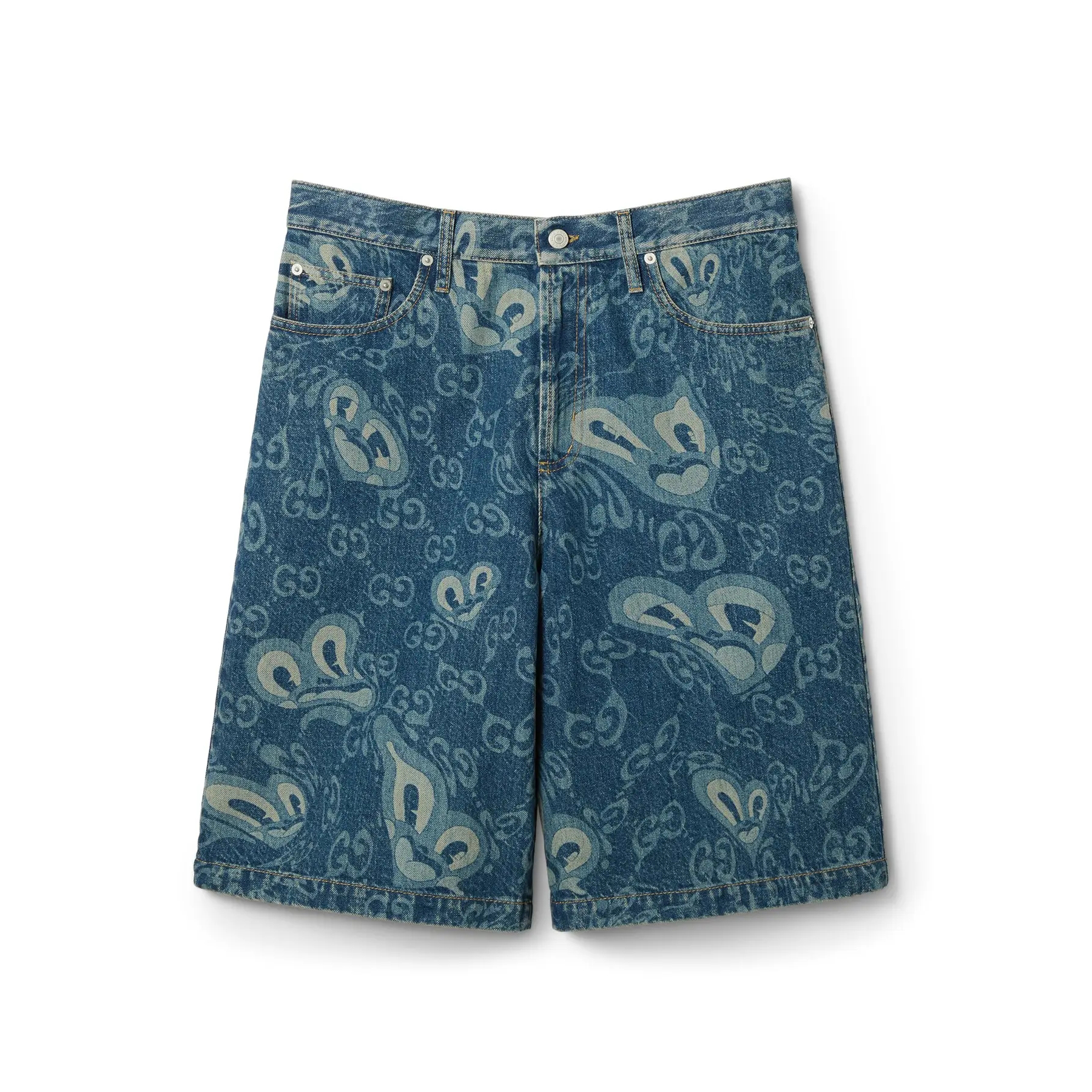 NIGO Gucci Men's Summer Pattern Printed Lapel Single Breasted Denim Short Sleeve Shirt Shorts Pants Set Suit #nigo99327