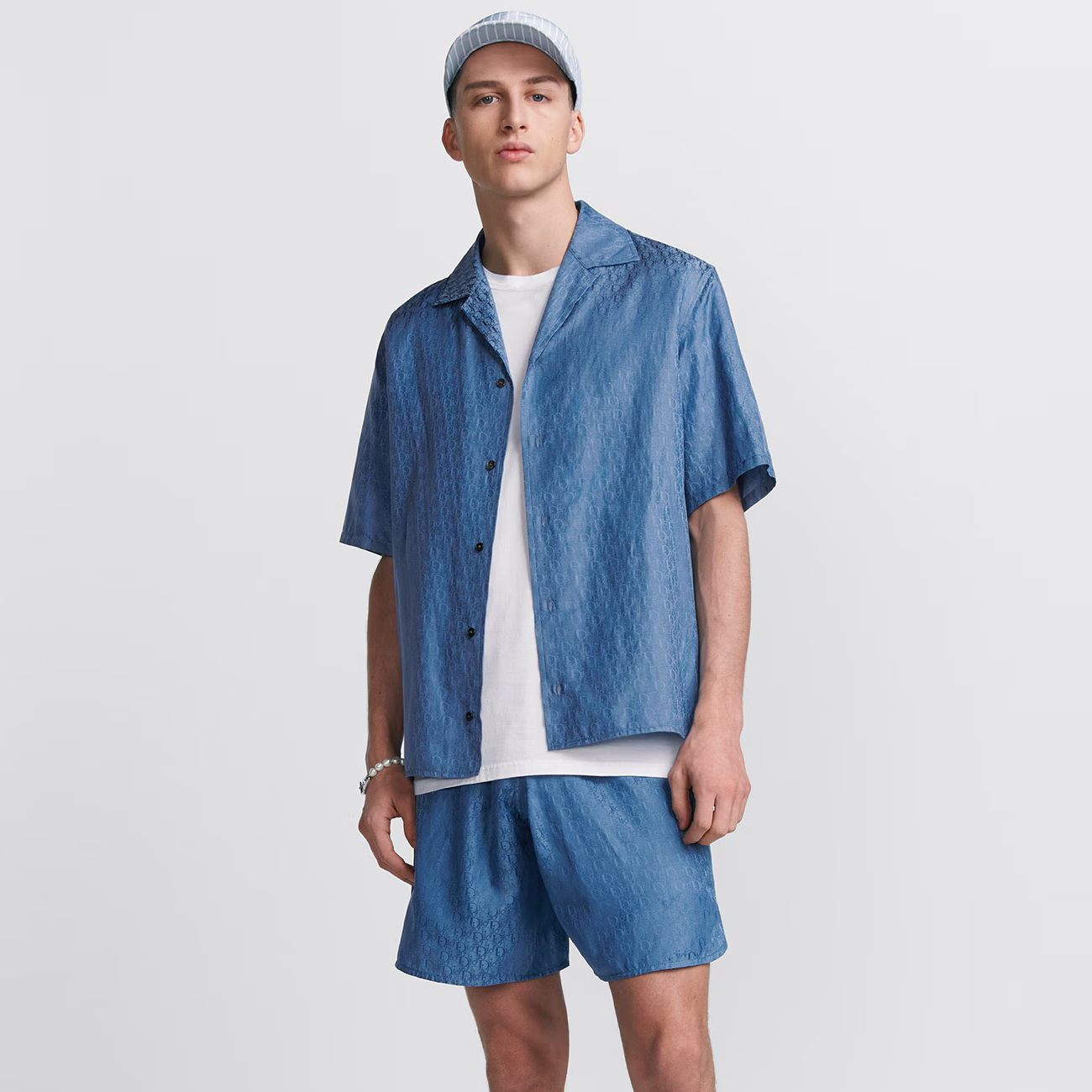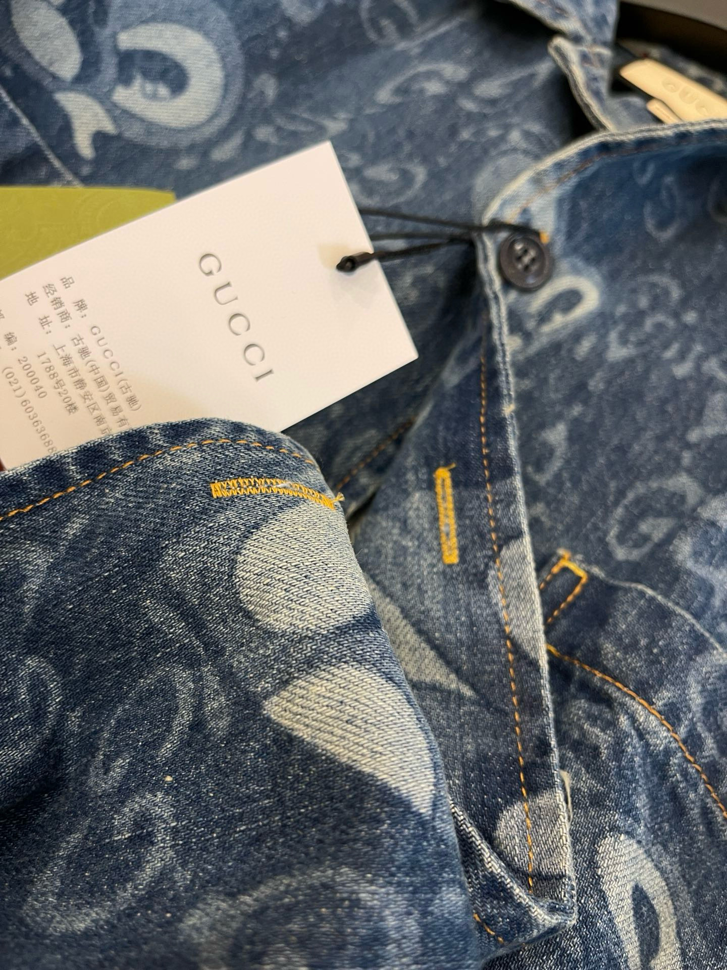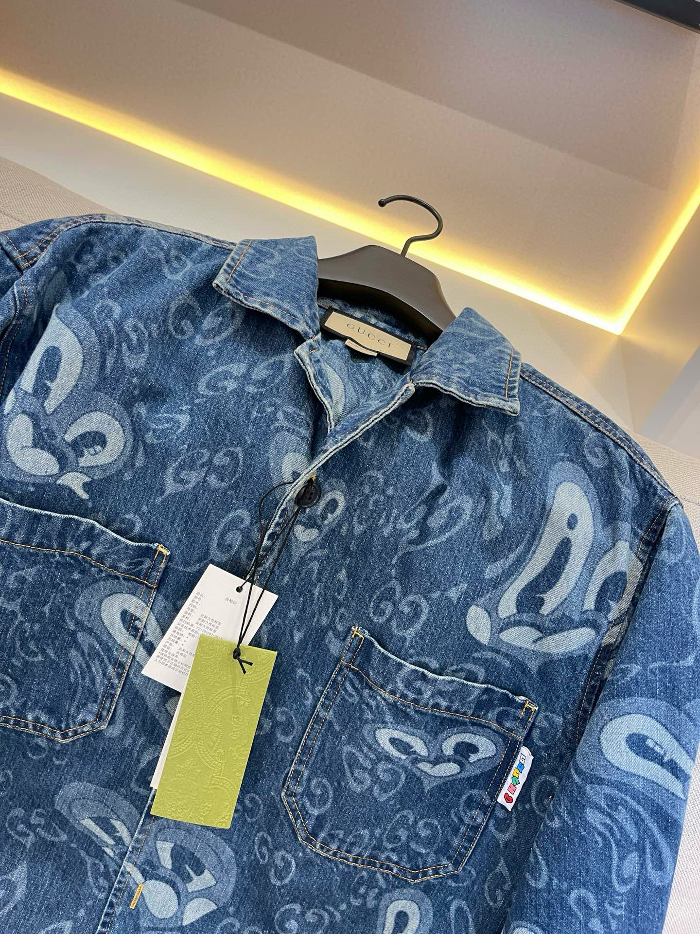 NIGO Gucci Men's Summer Pattern Printed Lapel Single Breasted Denim Short Sleeve Shirt Shorts Pants Set Suit #nigo99327