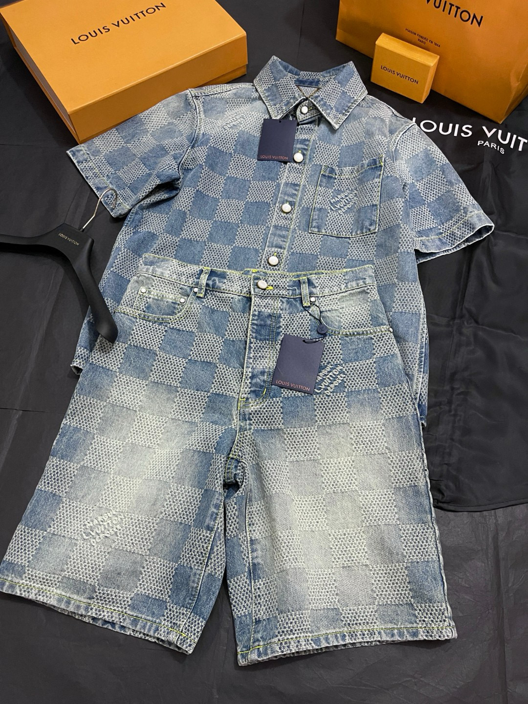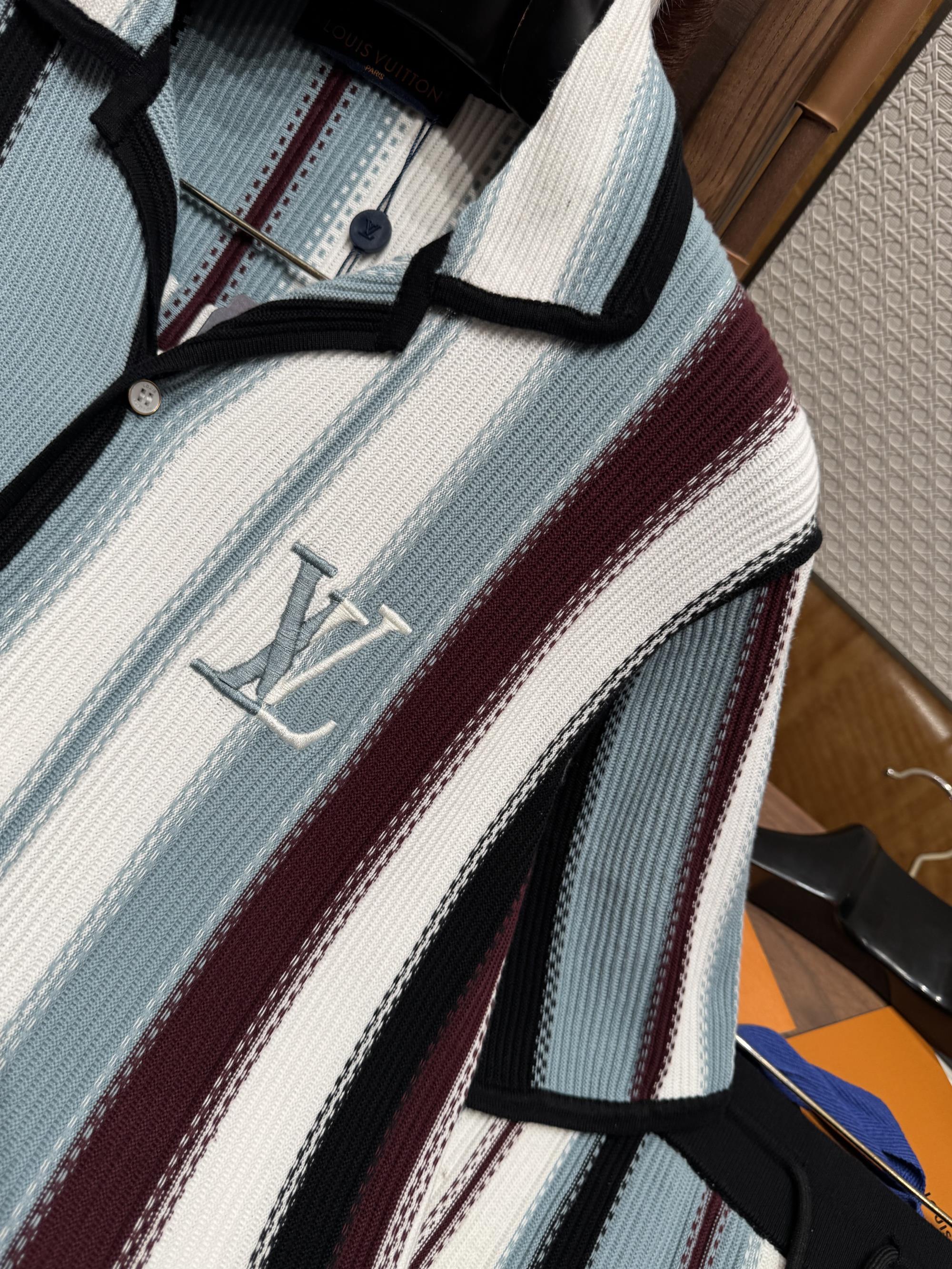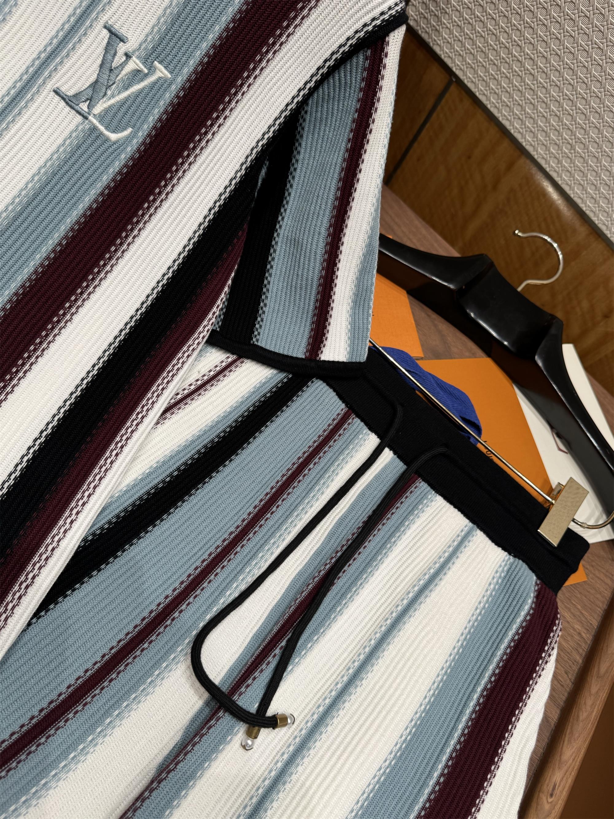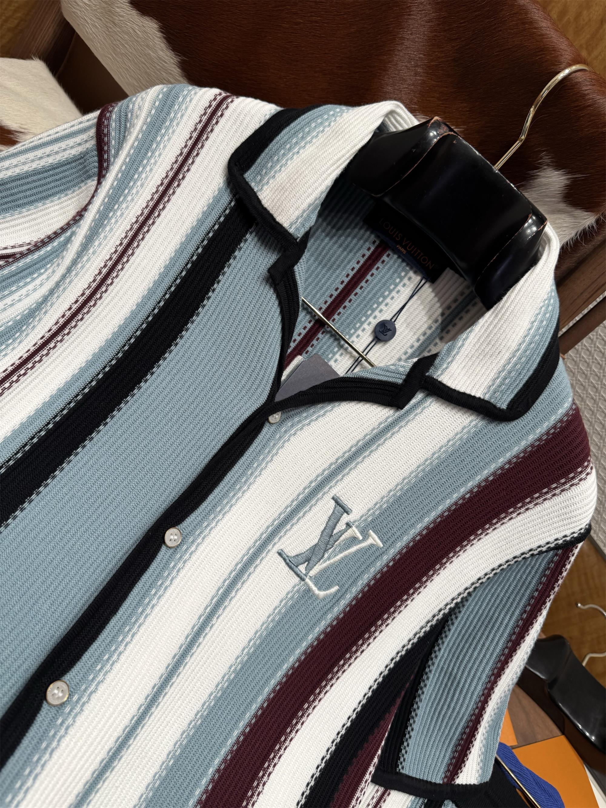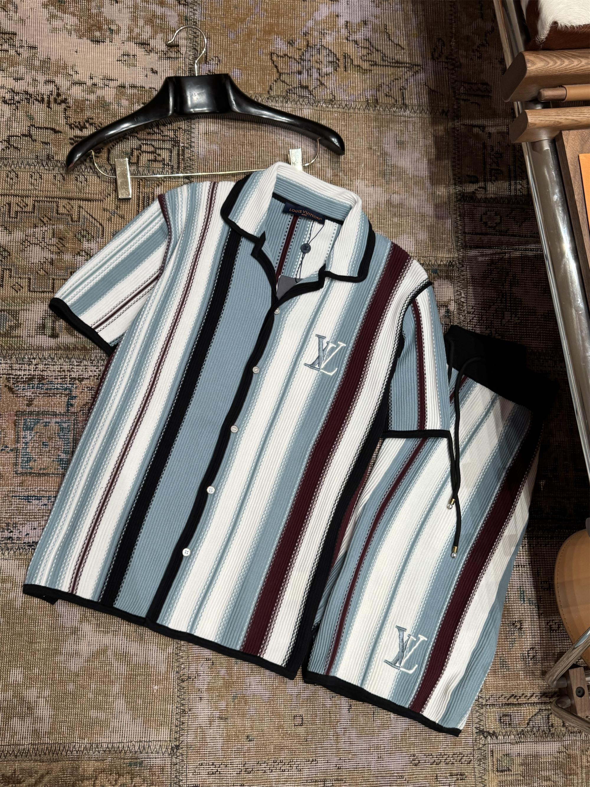 NIGO Louis Vuitton Men’s Summer Striped Crochet Single Breasted Short Sleeve Shirt Casual Lace-Up Shorts Suit Set #nigo76893