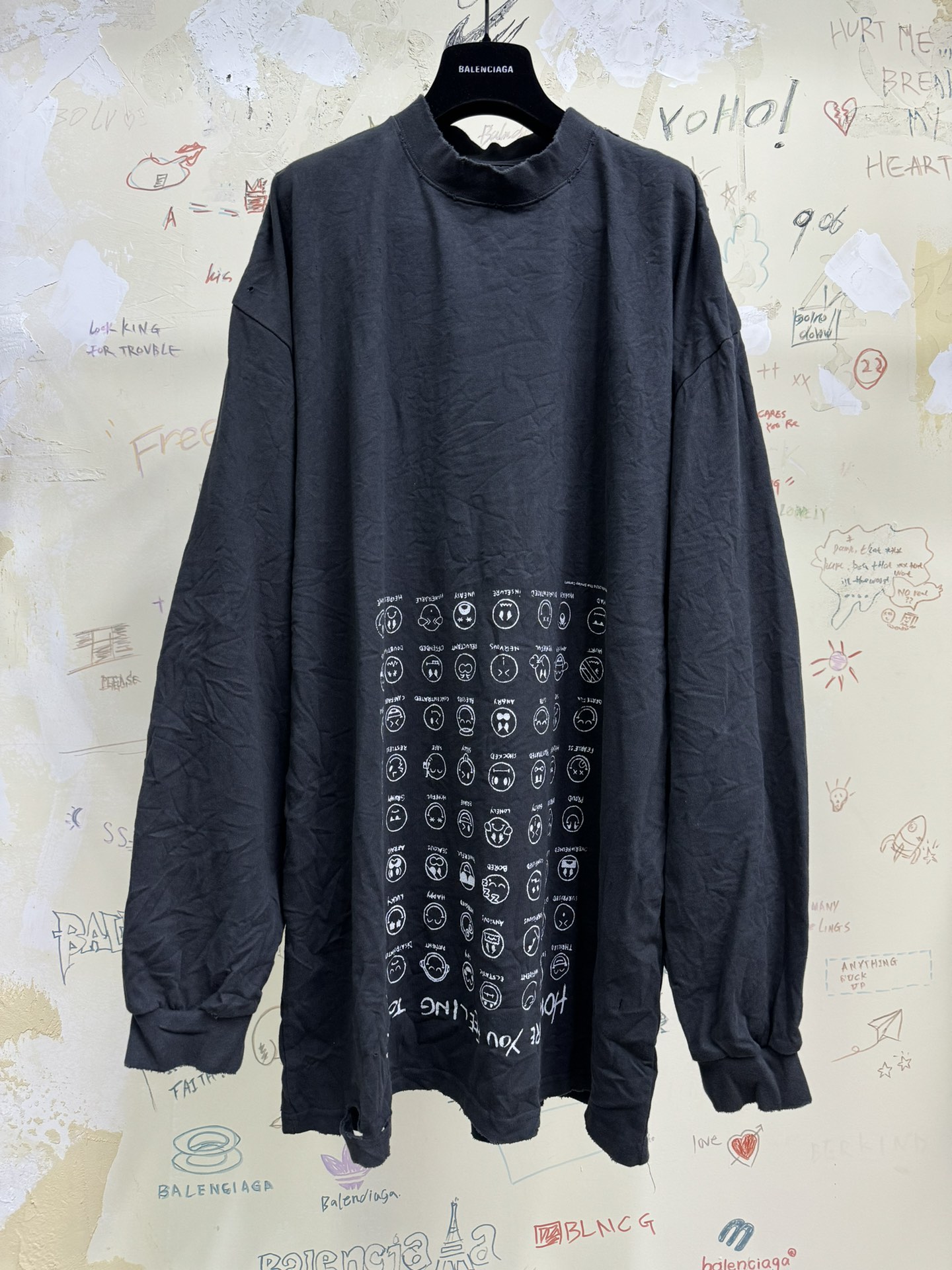 NIGO Balenciaga Men Women Summer Letter Printed Loose Cotton Round Neck Black Long Sleeve T-Shirt Ngvp #nigo9556