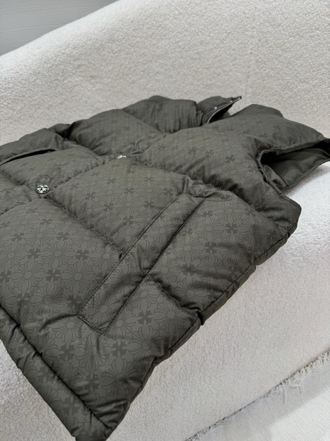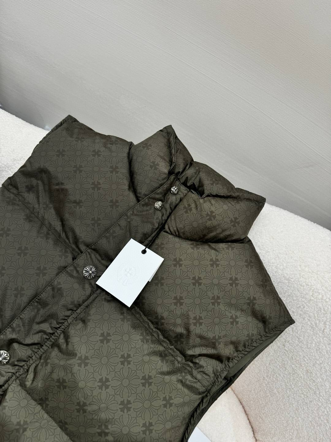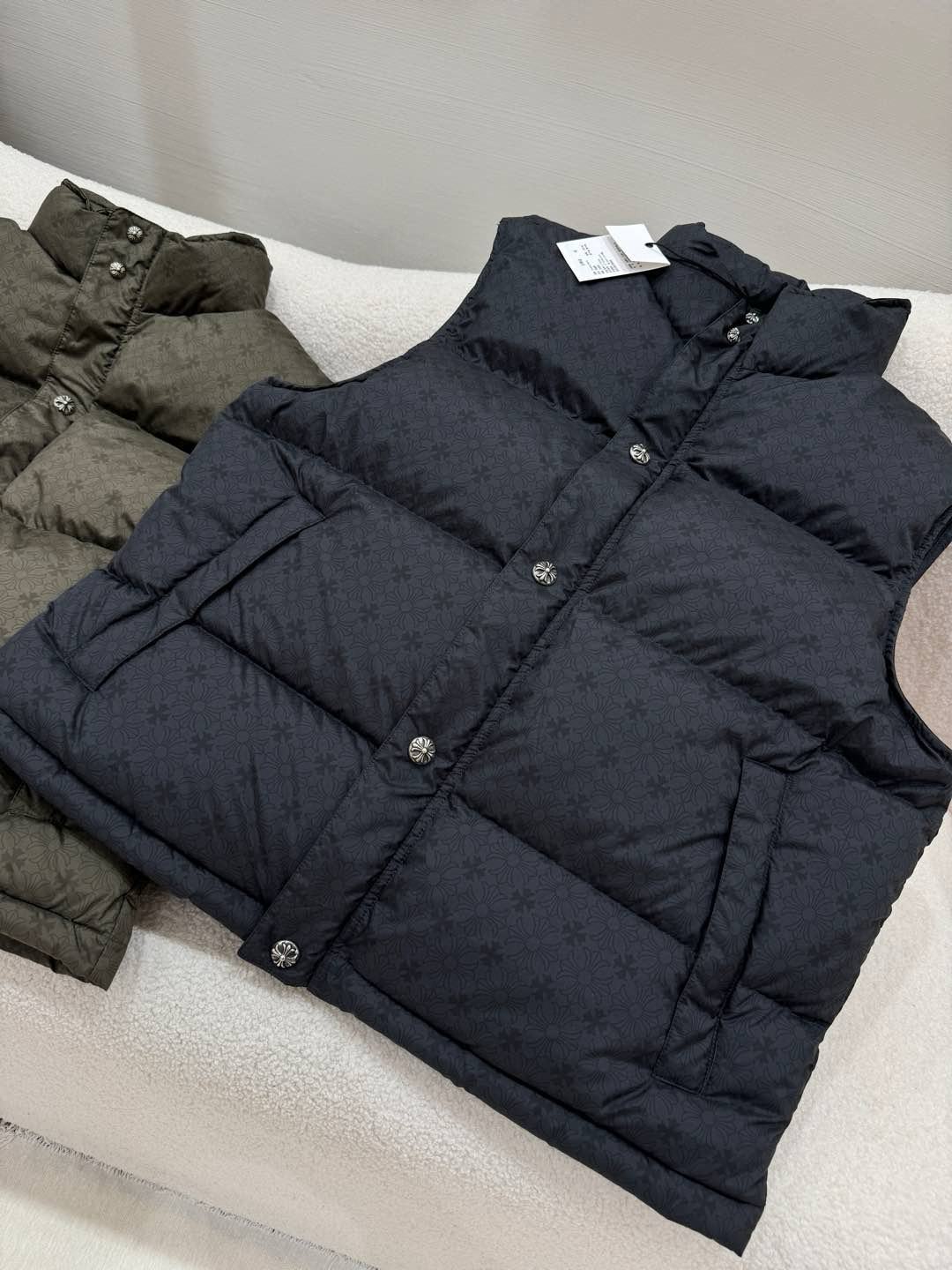 NIGO Chrome Hearts Men's And Women's Fall/Winter Fashion Casual Stand Collar Zipper Single Button Hidden Pattern 925 Sterling Silver Hardware Down Sleeveless Vest #nigo79126