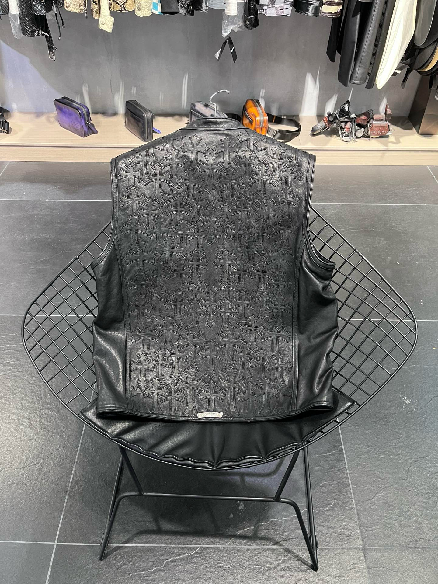 NIGO Chrome Hearts Men's Spring/Summer Dark Logo Leather Zipper Sleeveless Waistcoat Vest Jacket #nigo98936