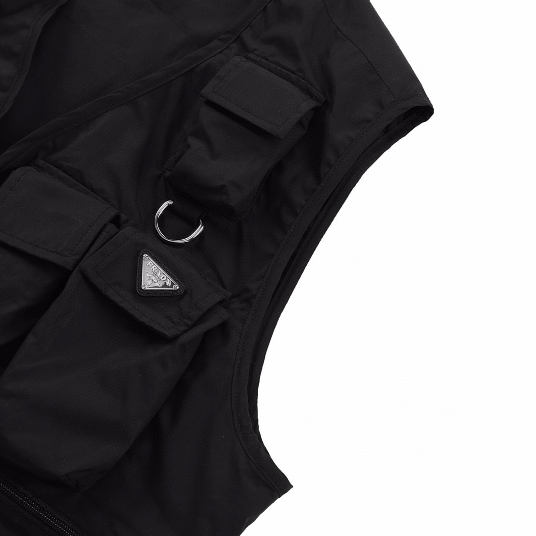 NIGO Prada Men's Summer Black Logo Patch Pocket V-Neck Zipper Casual Vest Jacket #nigo98664