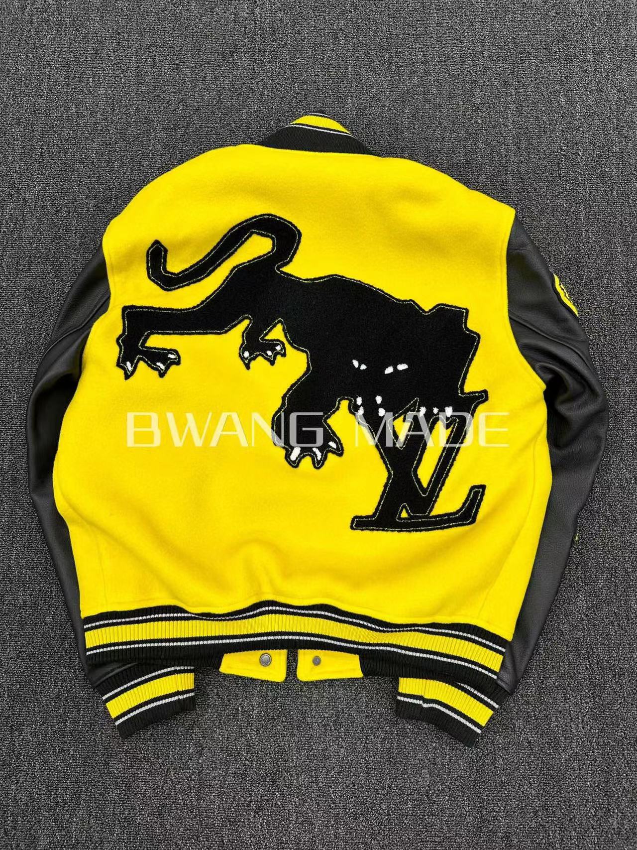 Louis Vuitton Genuine Leather Wool Embroidered Varsity Jacket #nigo3185