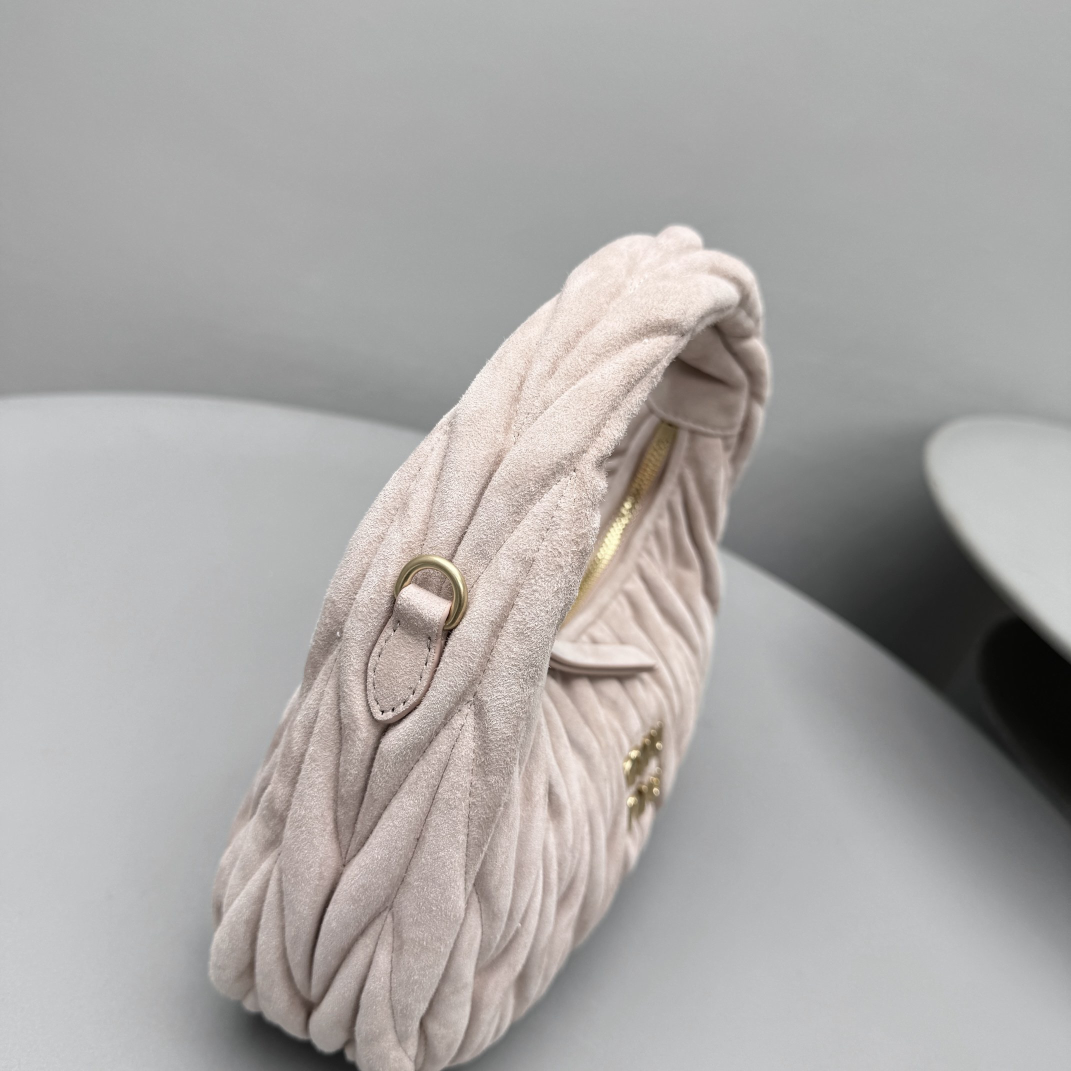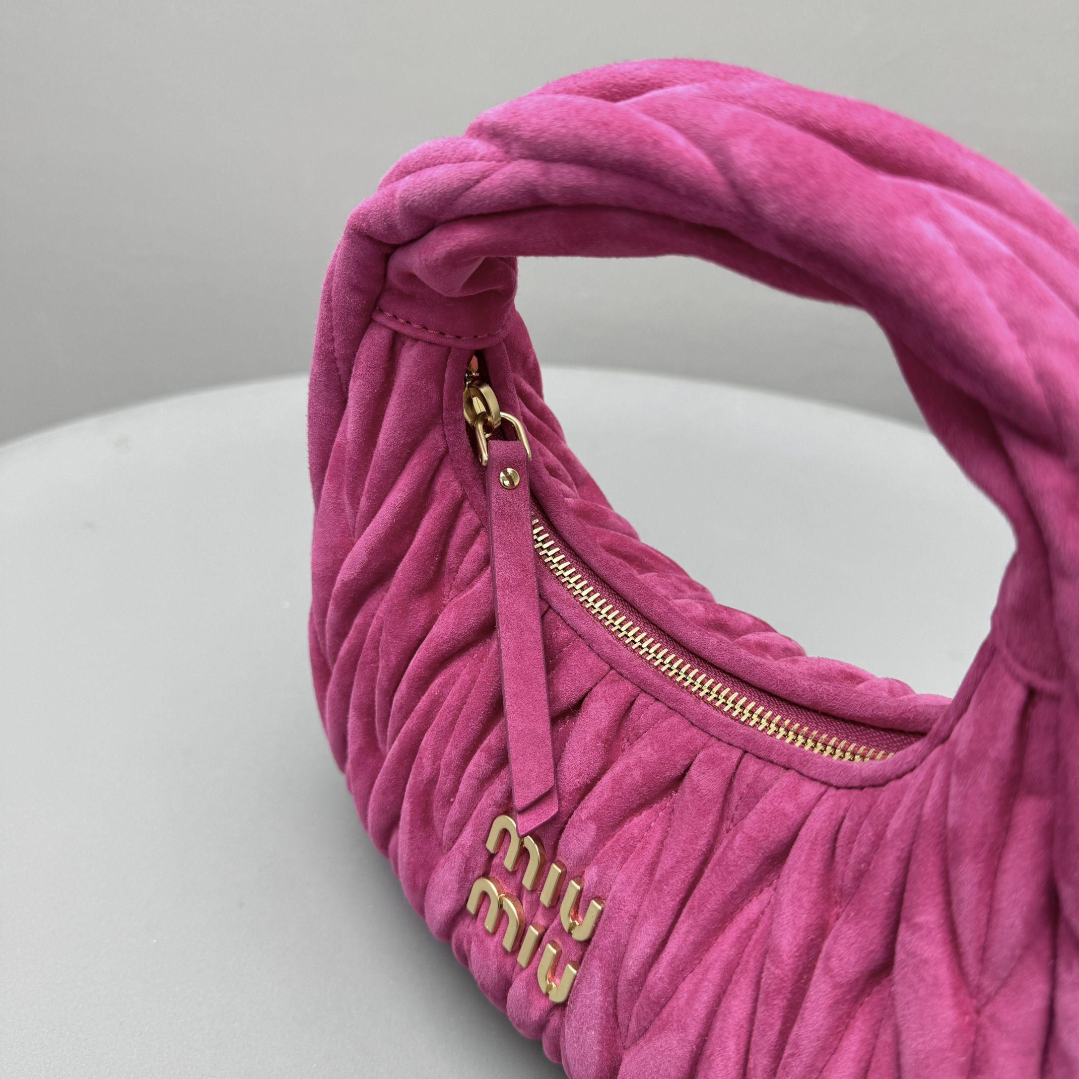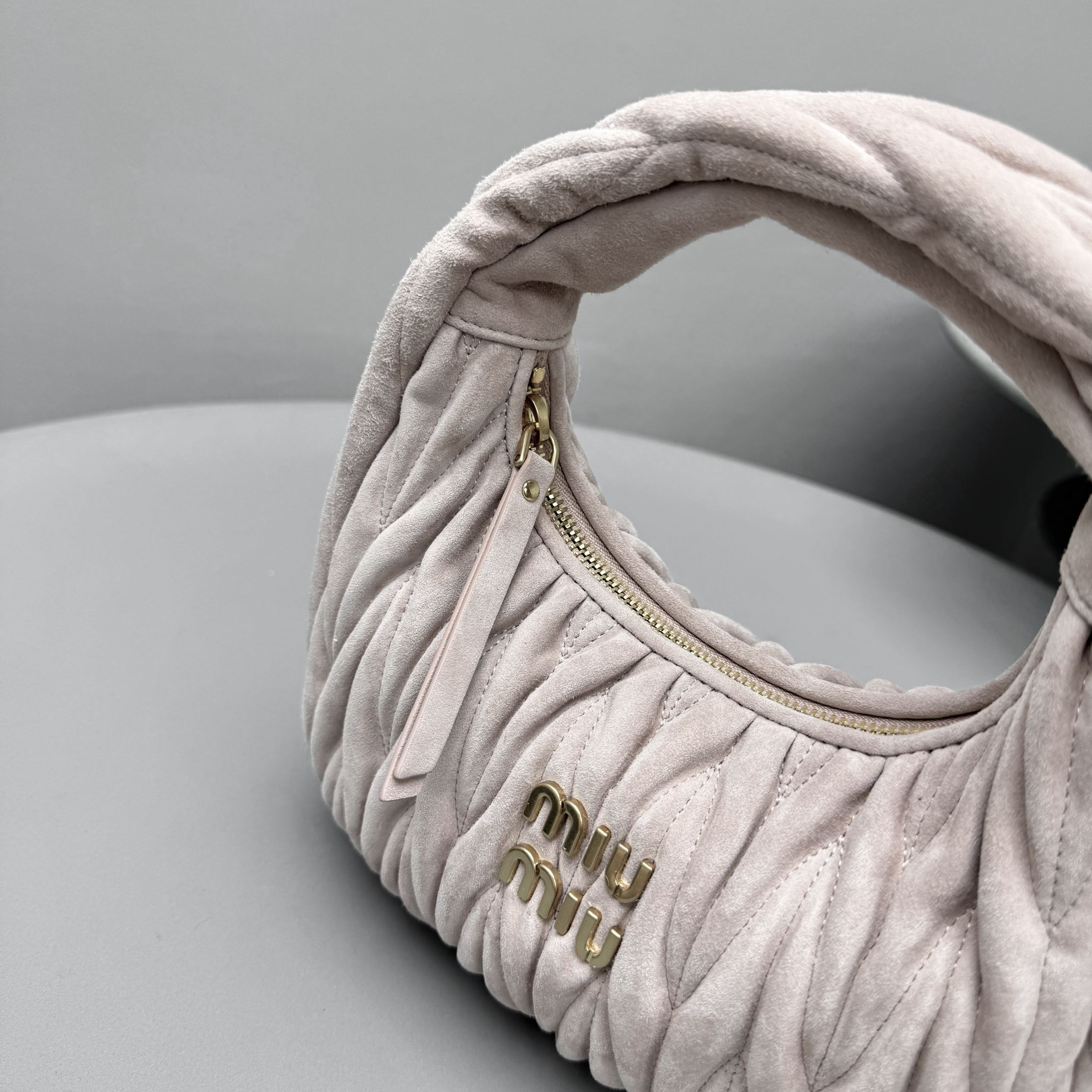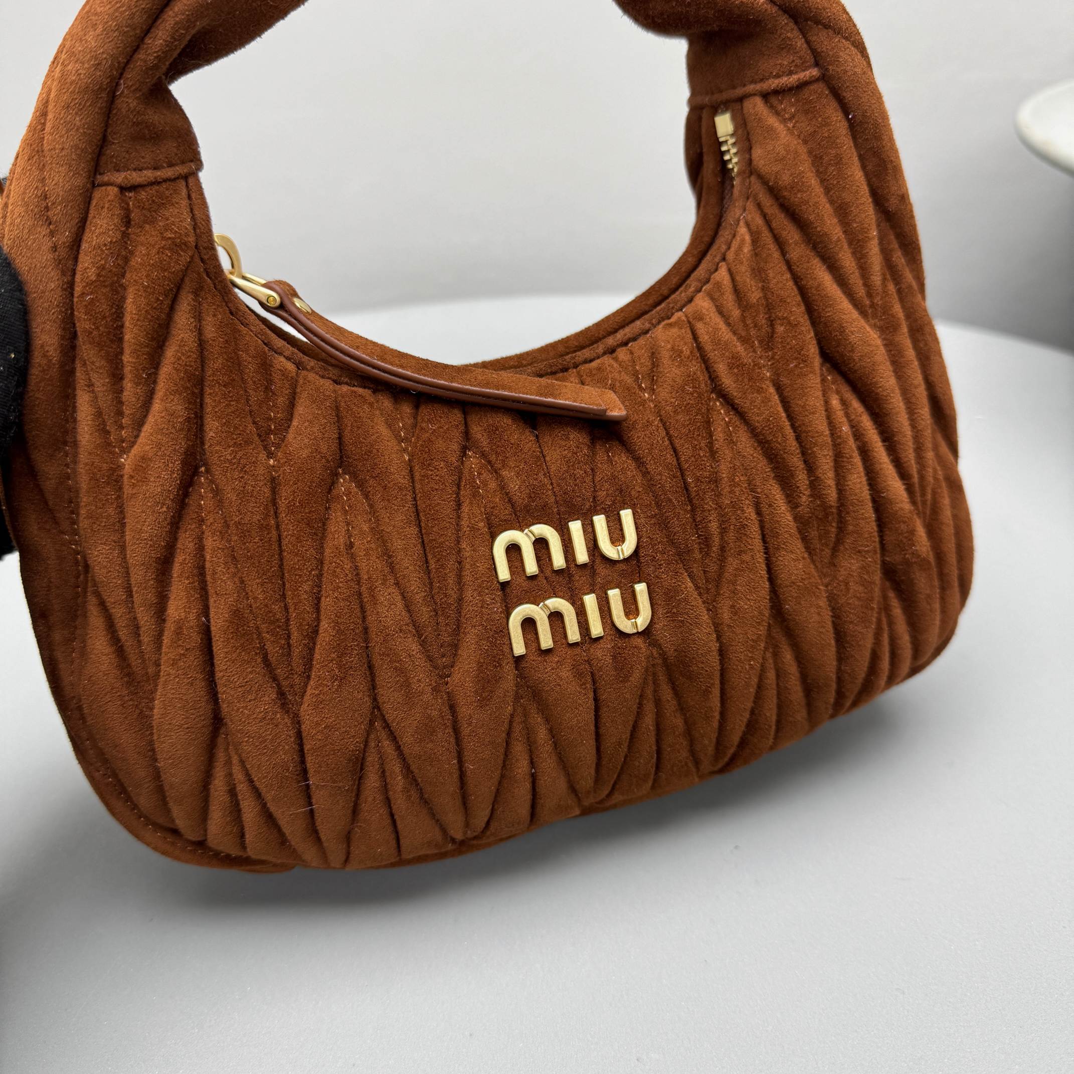 MiuMiu Wander Matelassé Suede Leather Bag Women's Metal Engraving Zipper Closure Single Shoulder Crossbody Crescent Bag Tote Bag #nigo333006