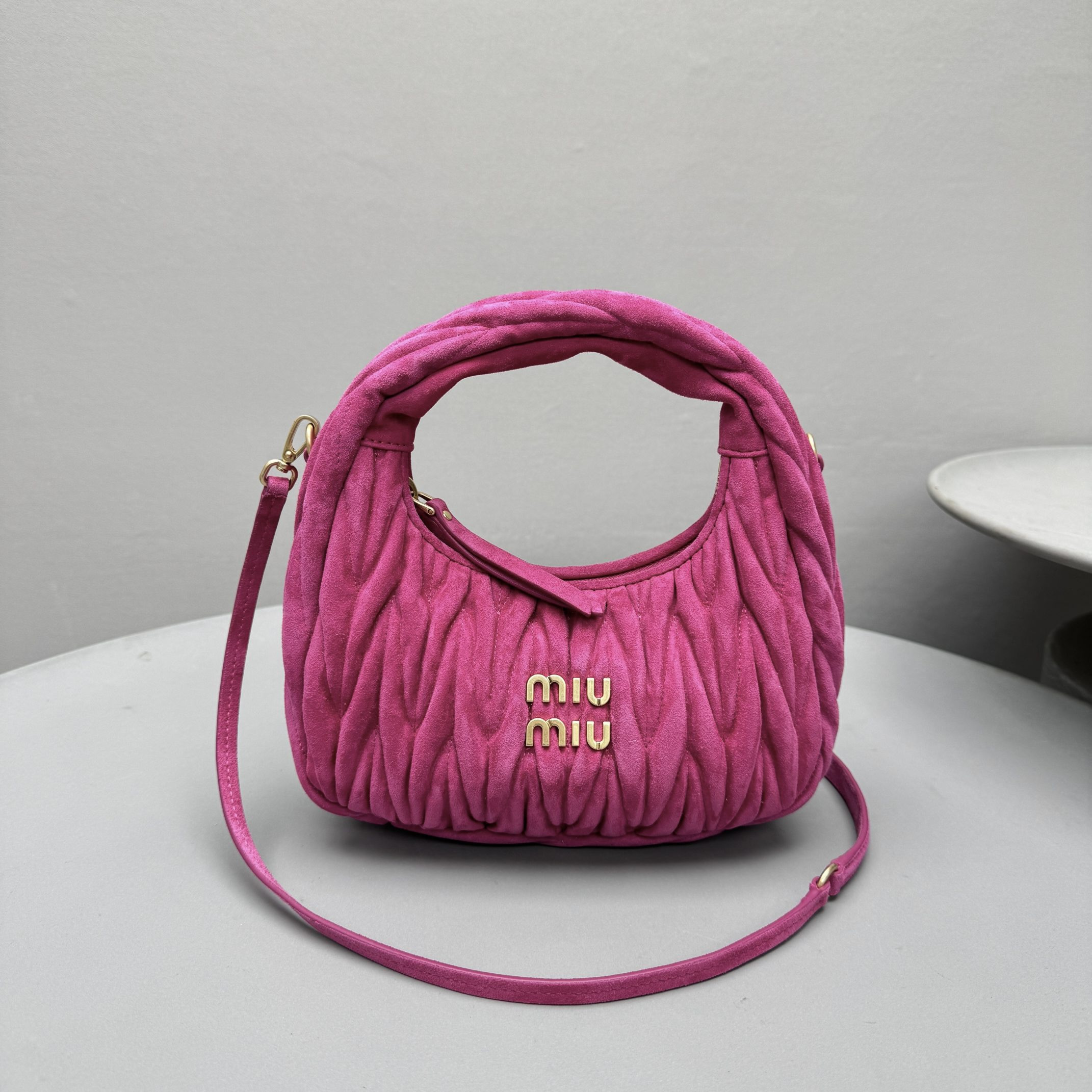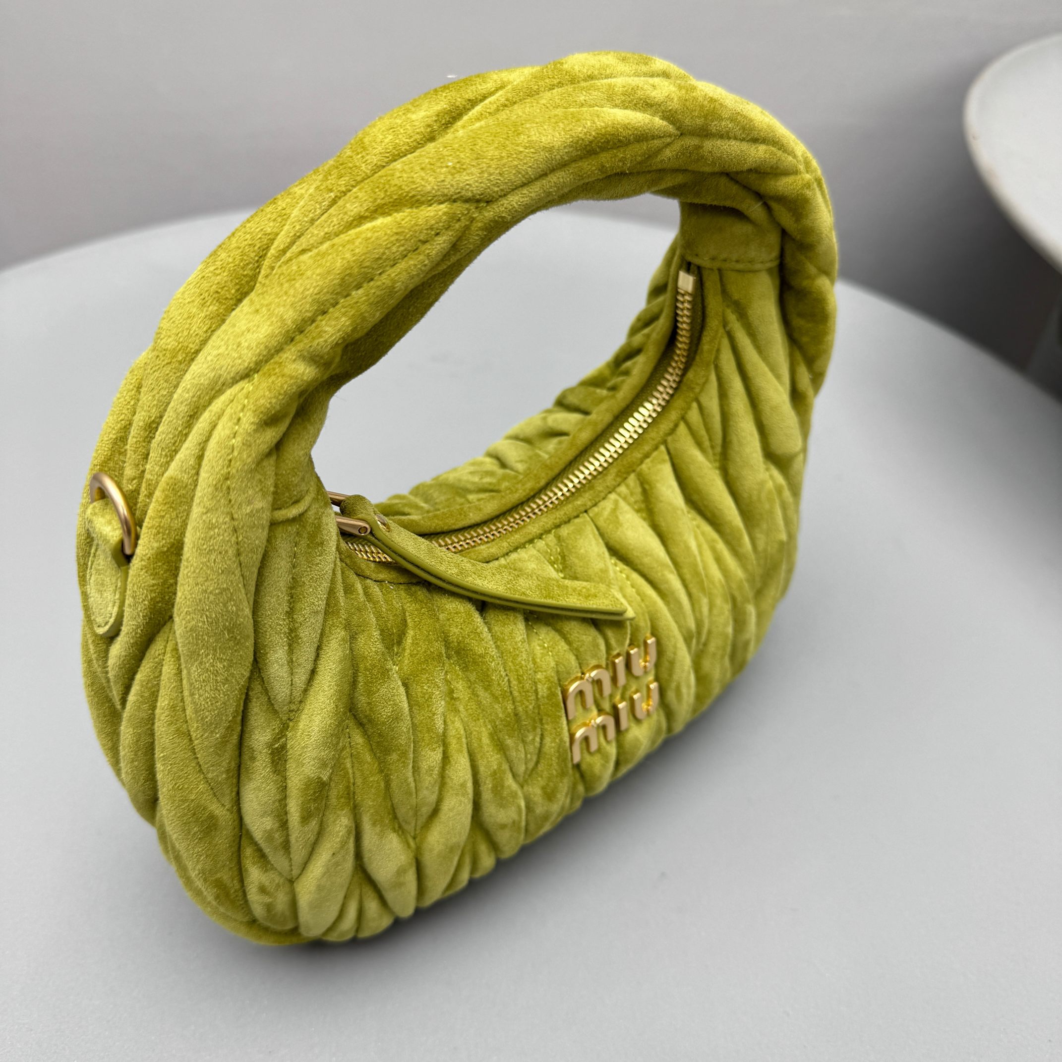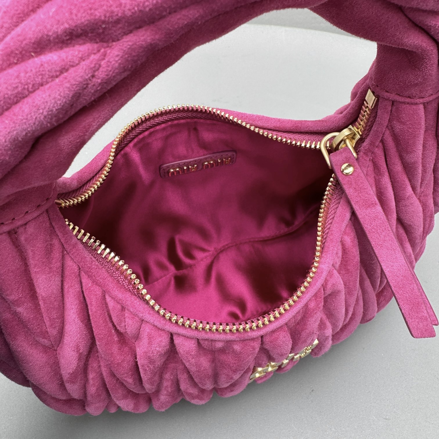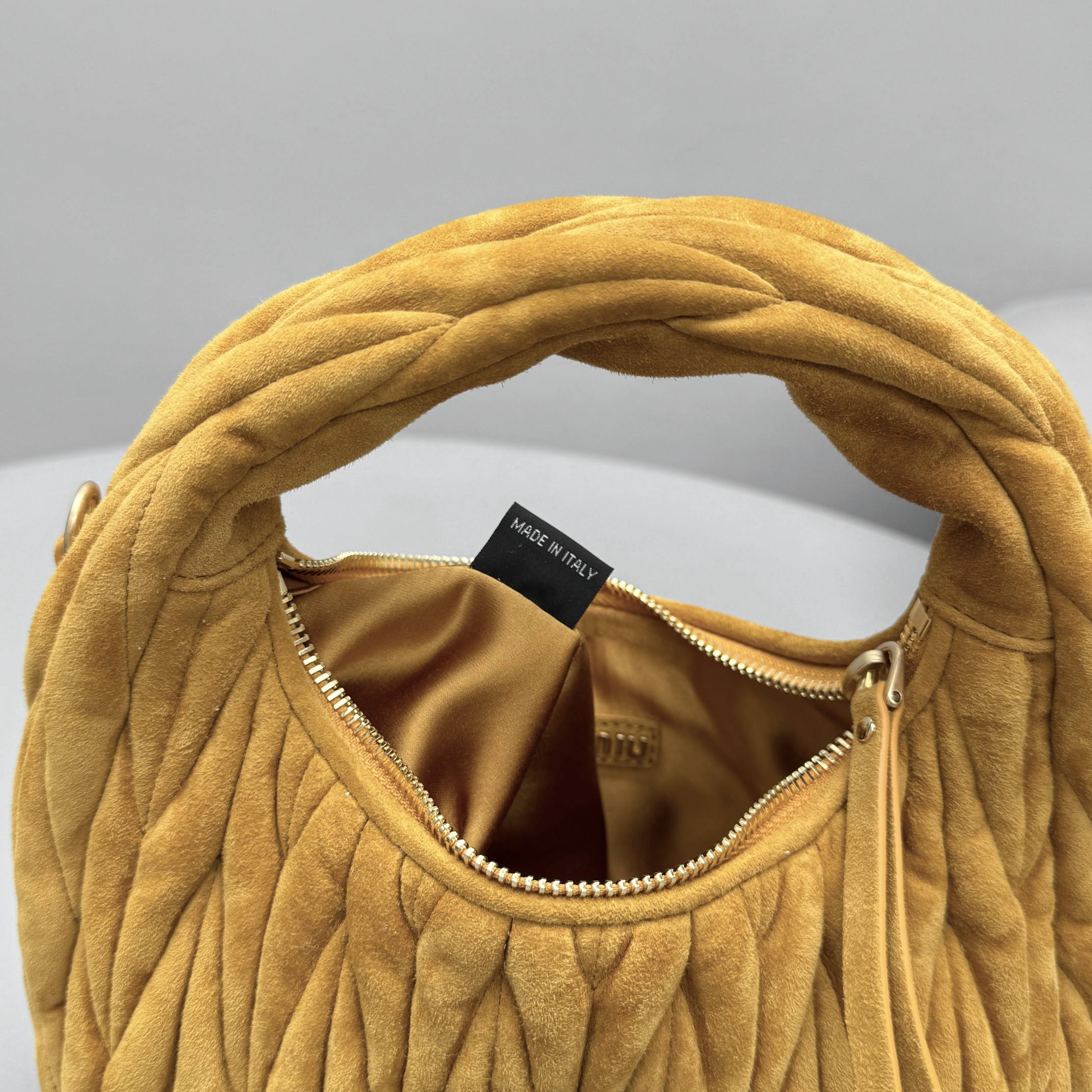 MiuMiu Wander Matelassé Suede Leather Bag Women's Metal Engraving Zipper Closure Single Shoulder Crossbody Crescent Bag Tote Bag #nigo333006