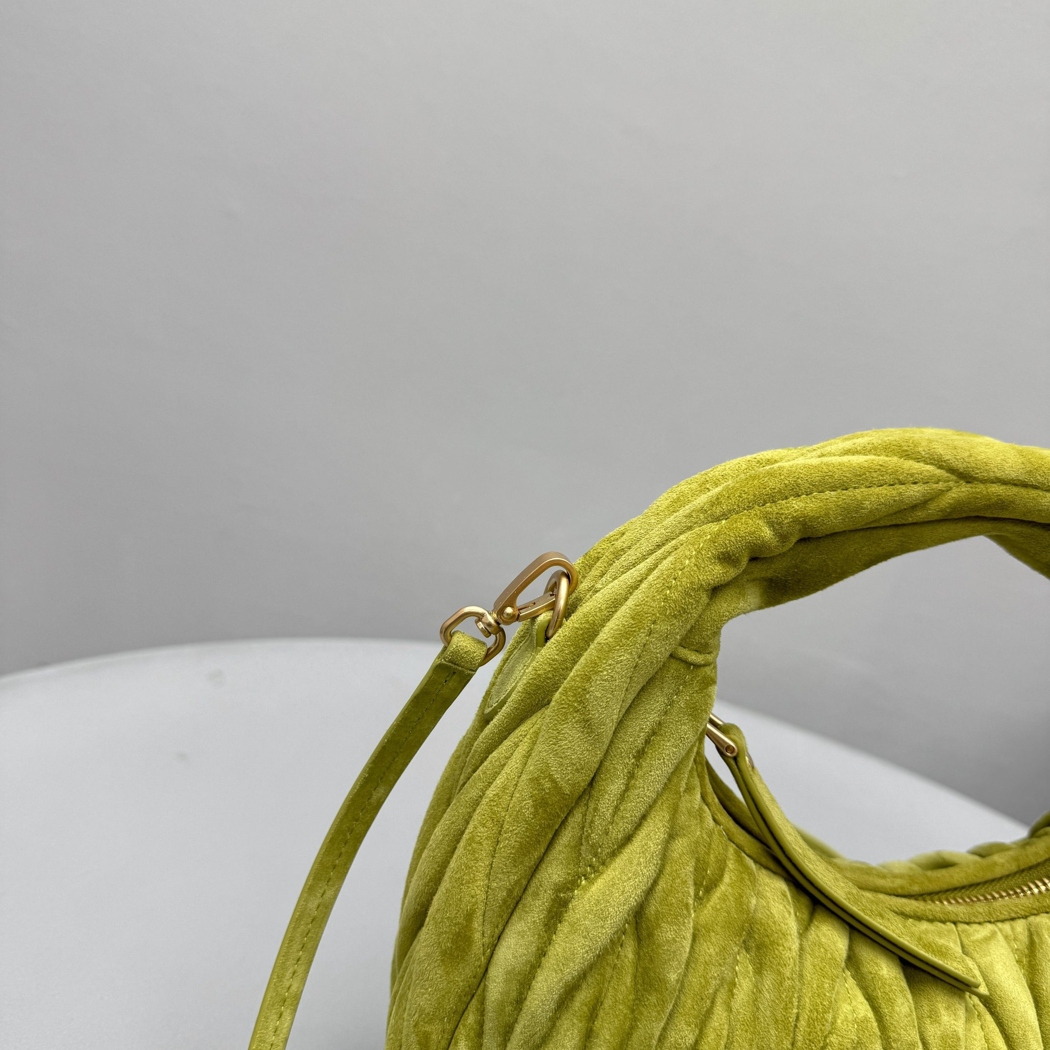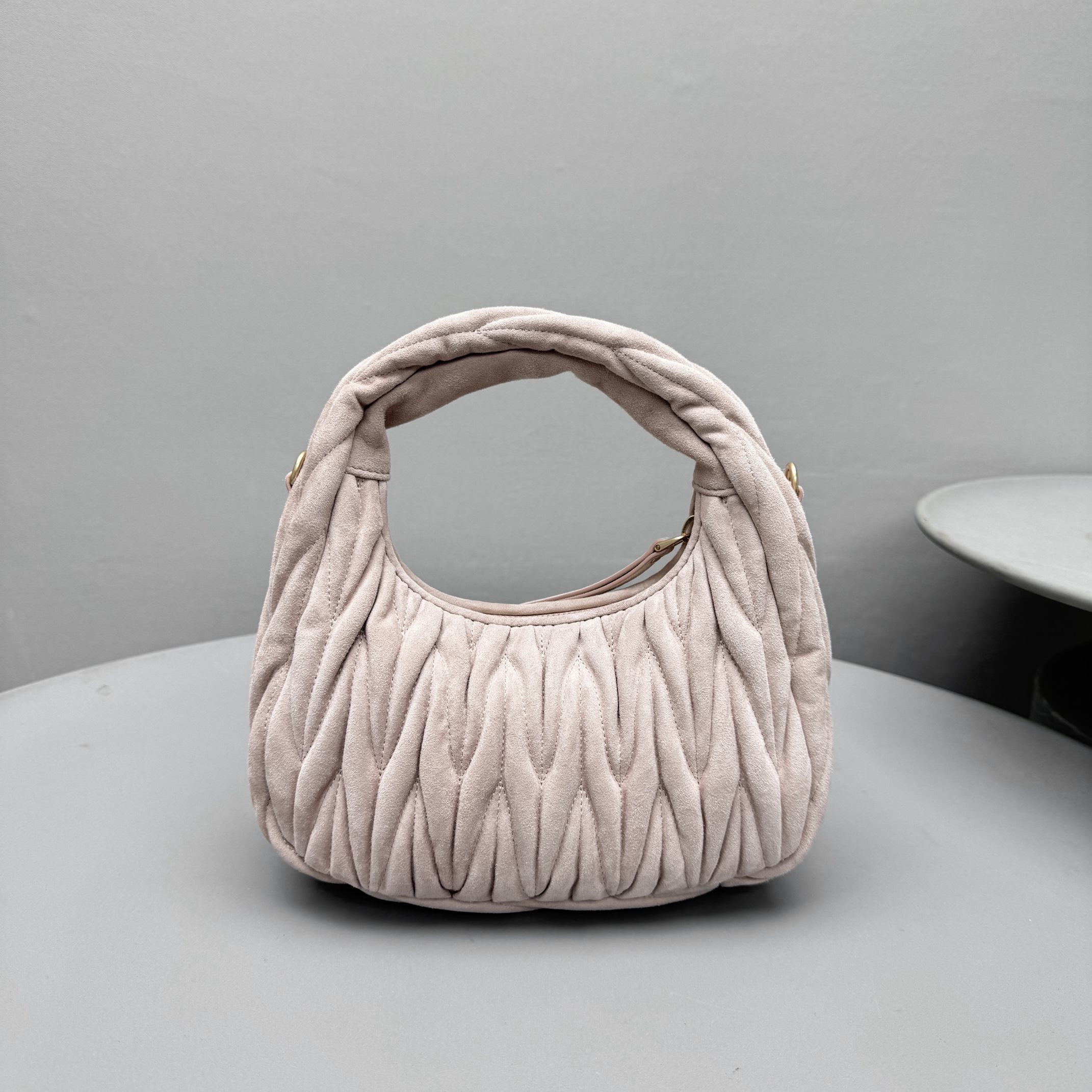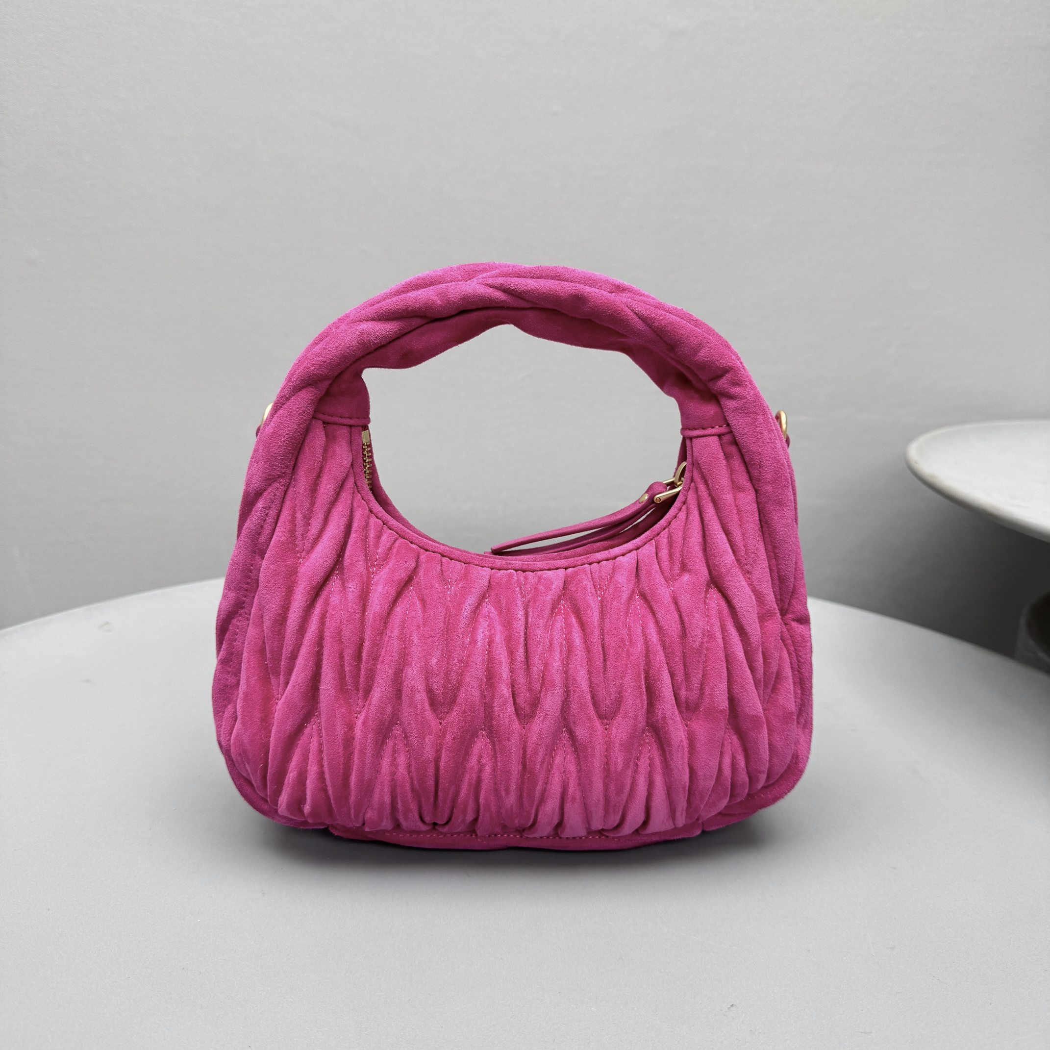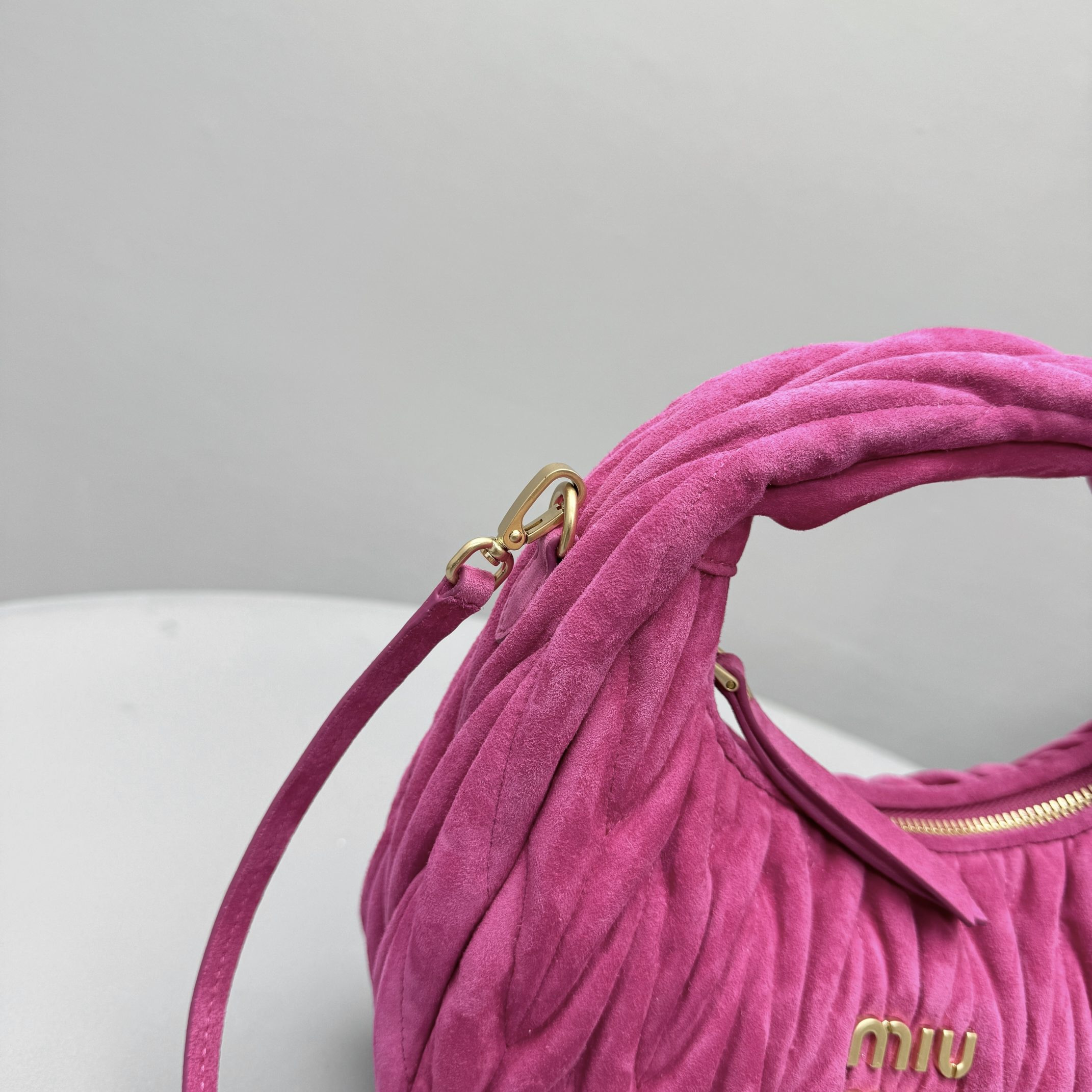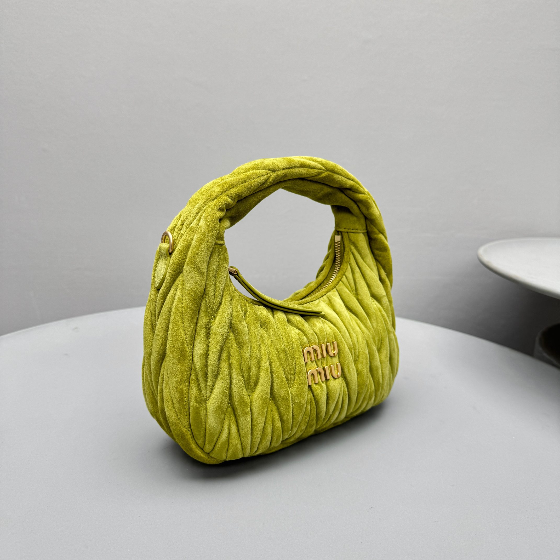MiuMiu Wander Matelassé Suede Leather Bag Women's Metal Engraving Zipper Closure Single Shoulder Crossbody Crescent Bag Tote Bag #nigo333006