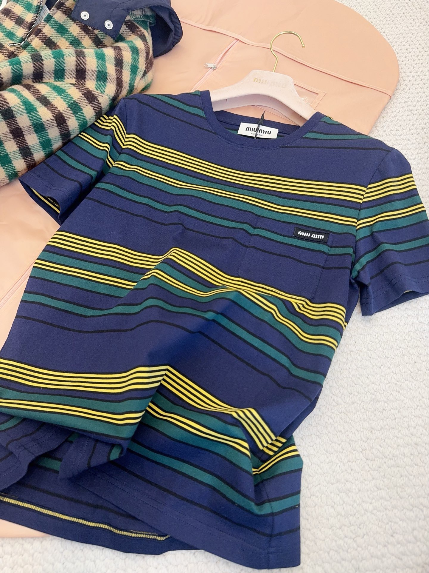 Home / MIUMIU / NIGO MiuMiu 25FW Women's Striped Short-sleeved T-shirt Yellow And Green Stripes Retro College Style Cotton Logo Pocket #nigo332610