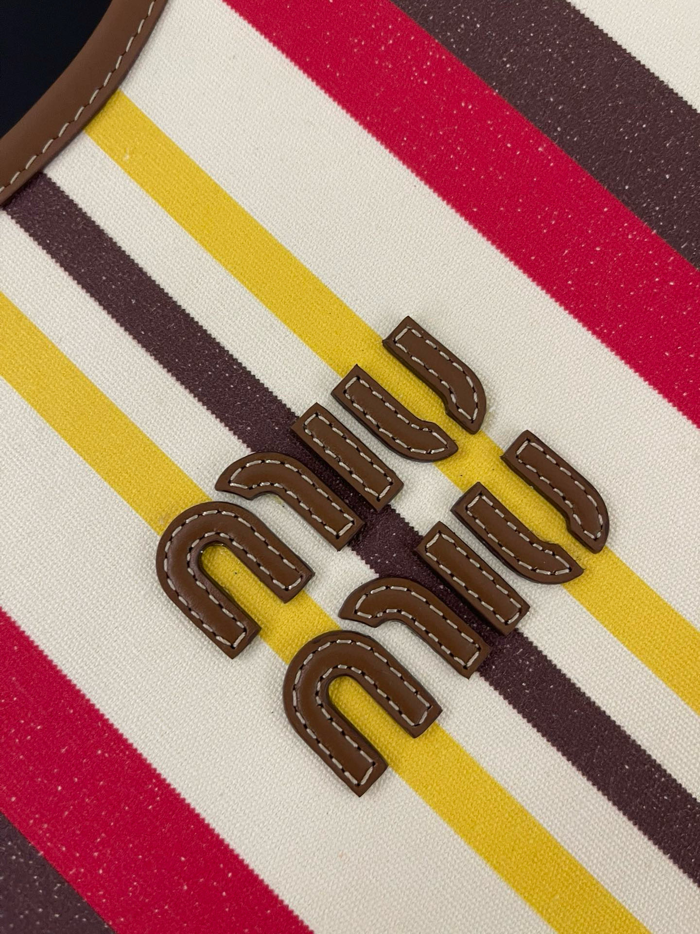 NIGO MiuMiu IVY Women's Embroidered Letter Print Striped Pattern Canvas And Leather Handbag Tote Bag Bags #nigo77931