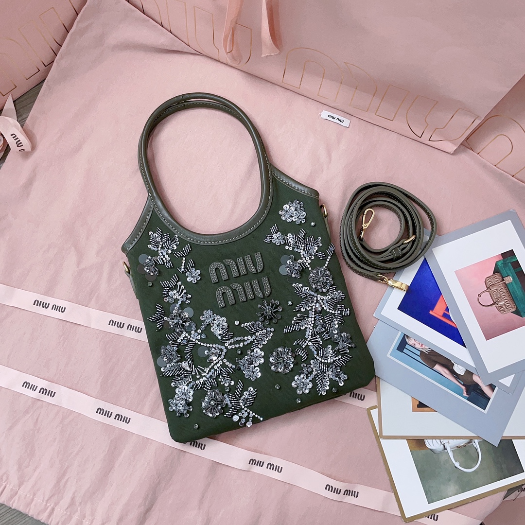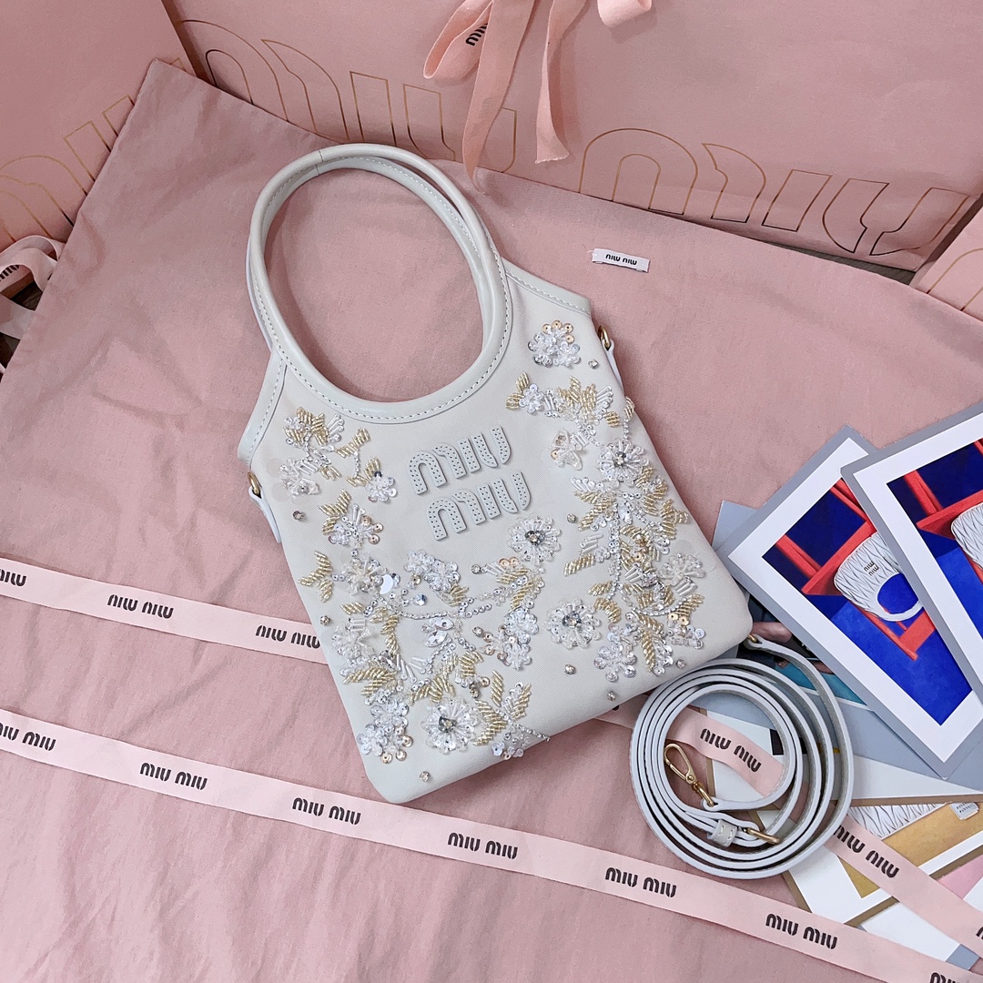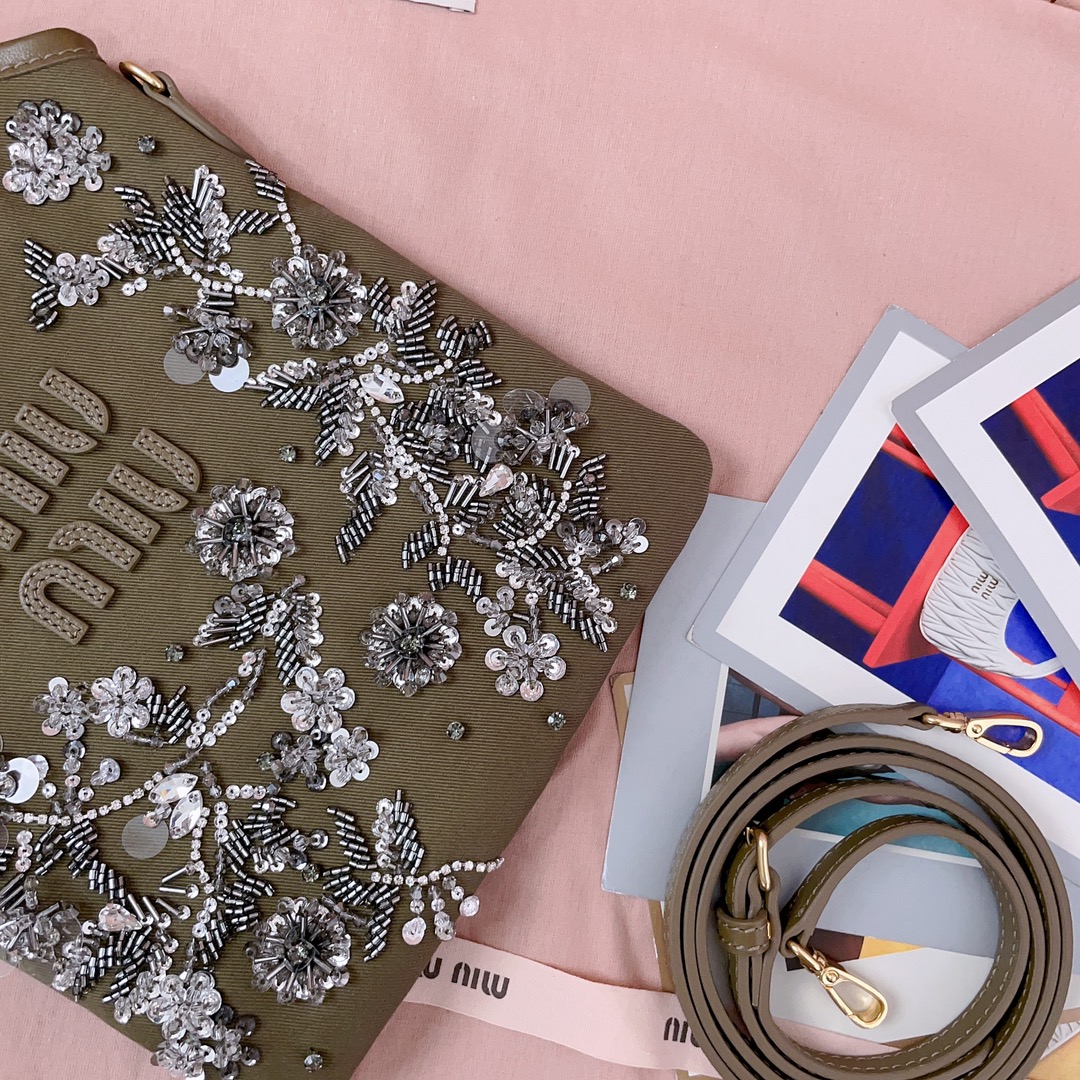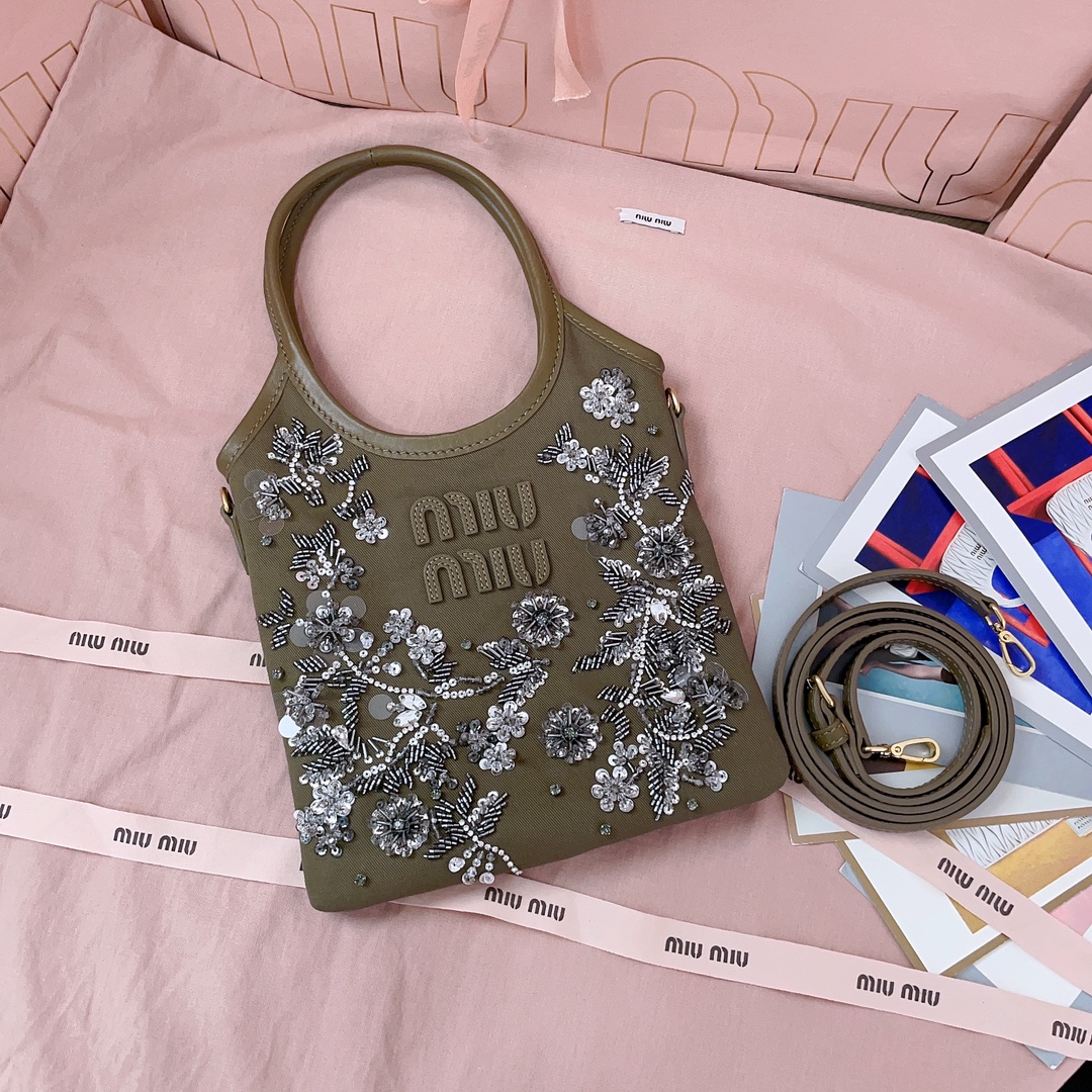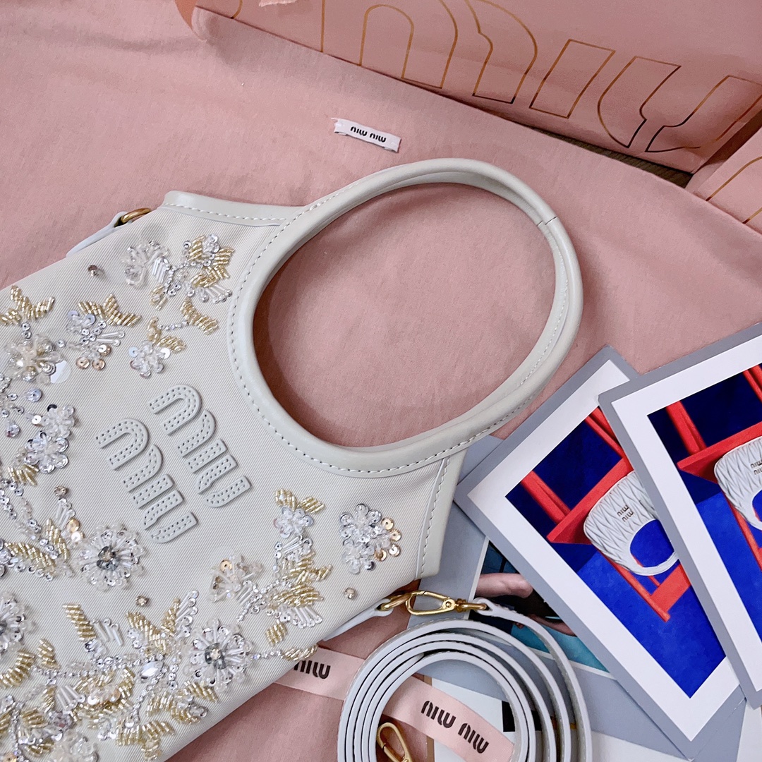 NIGO MiuMiu IVY Women's Solid Colour Floral Embroidery Steel Hardware Accessories Cotton Shoulder Crossbody Handbag Bag Bags #nigo76742