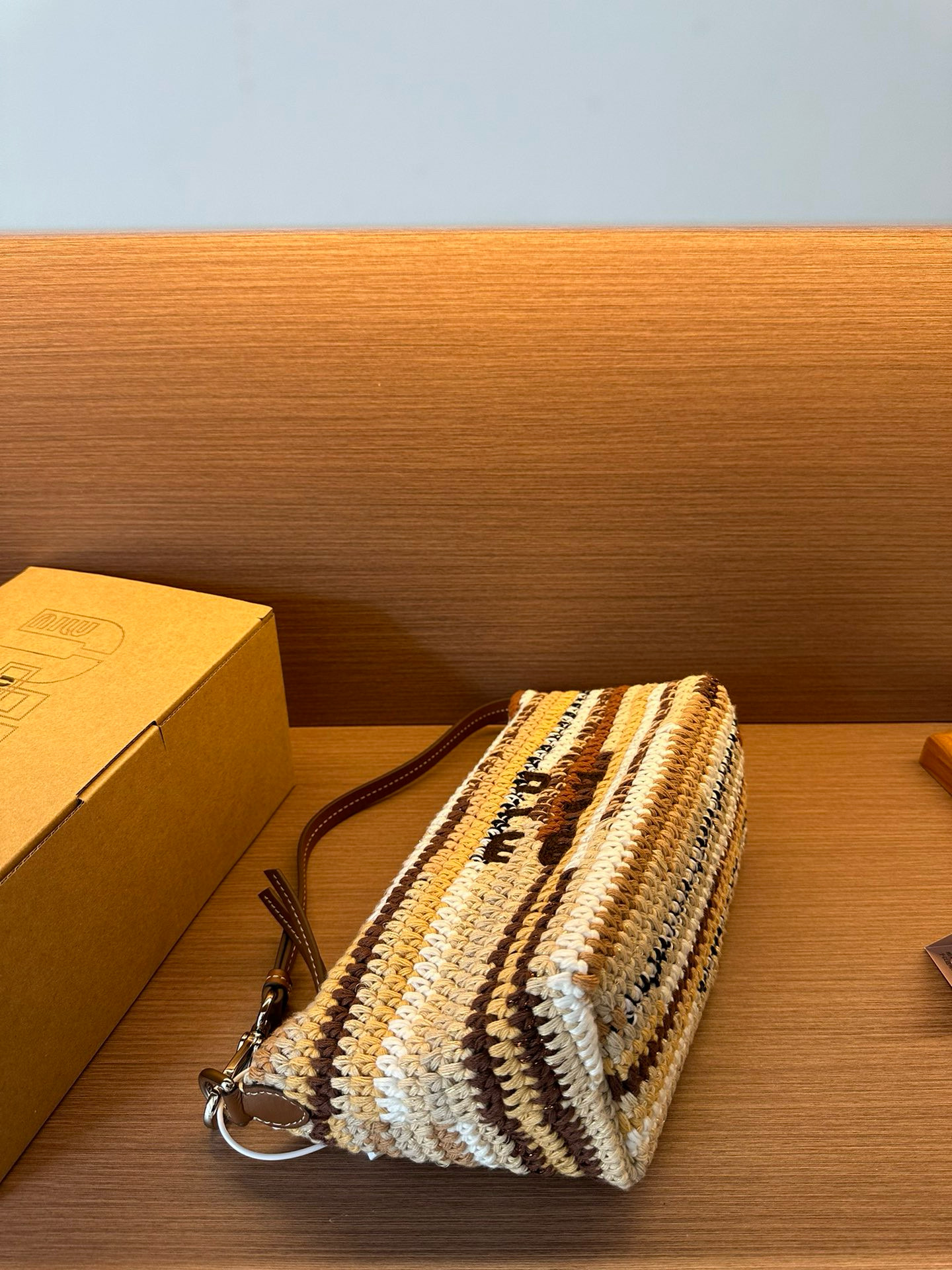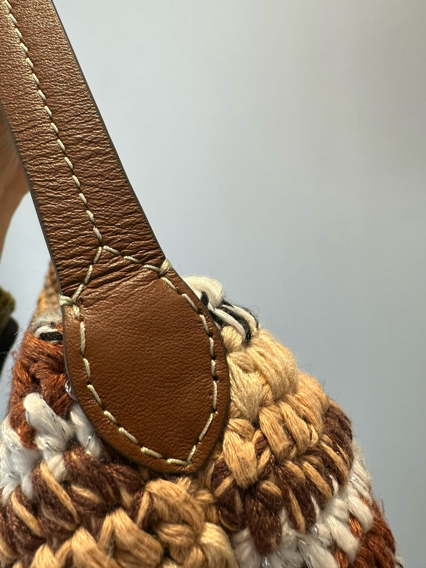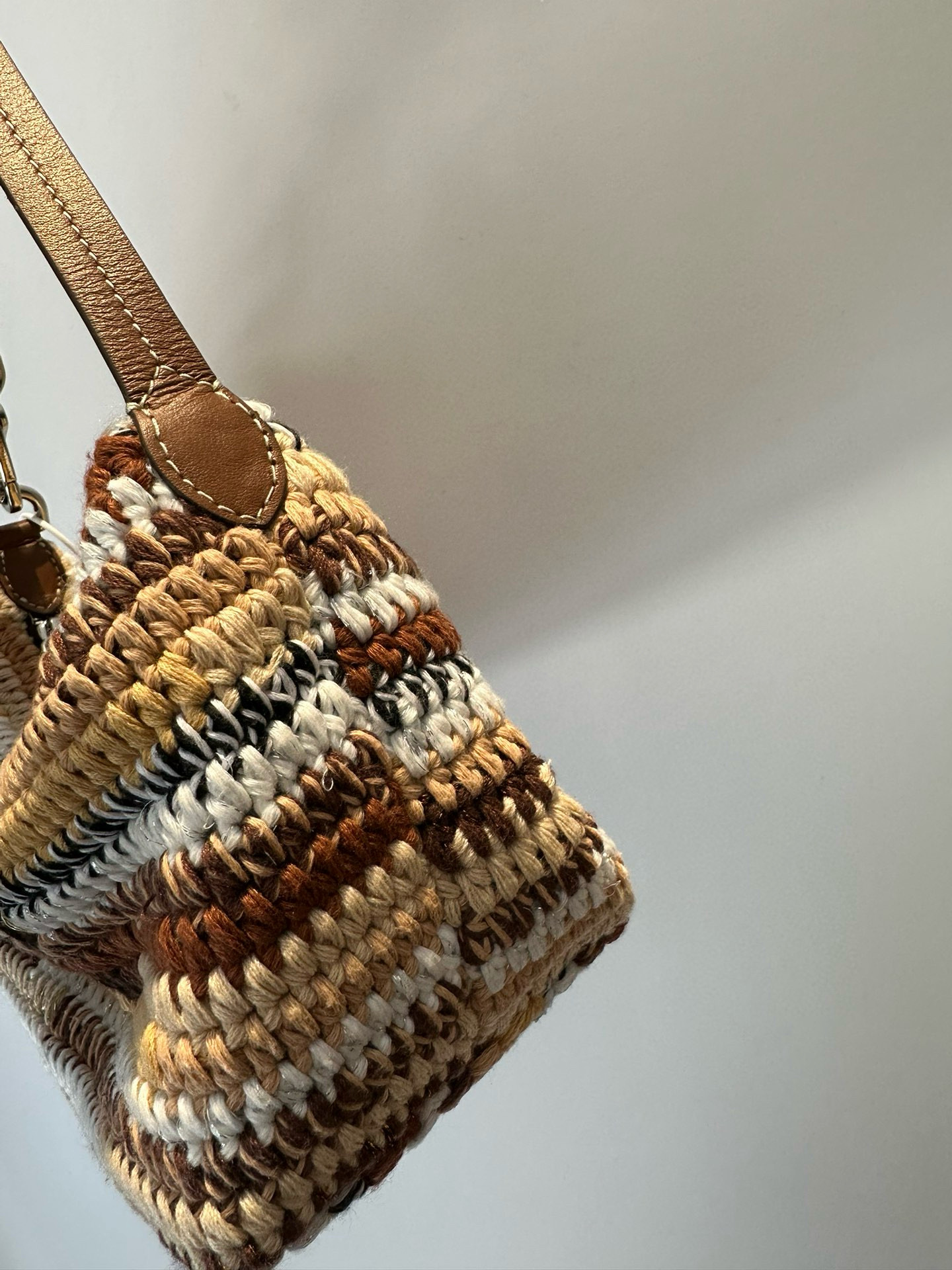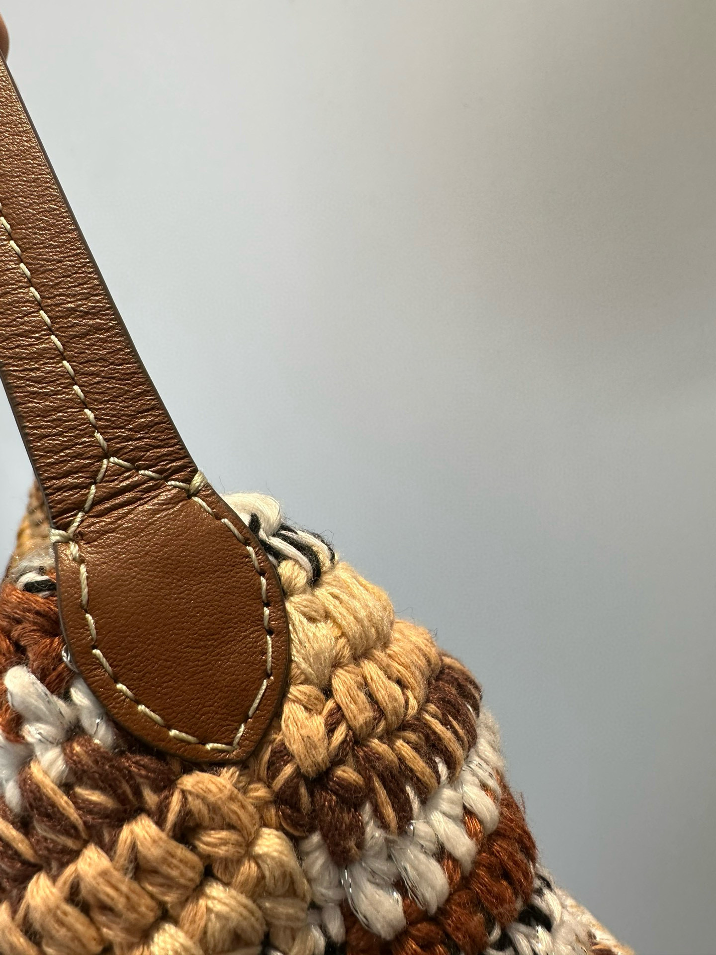 NIGO MiuMiu Ladies Brown Embroidered Engraved Logo Crochet Leather Handle Shoulder Underarm Tote Bag Bags #nigo97874