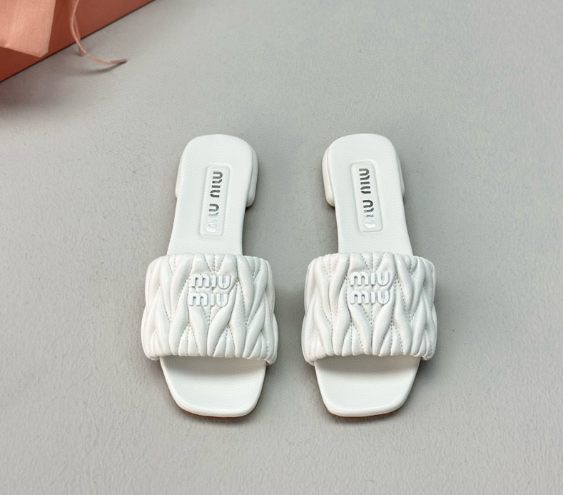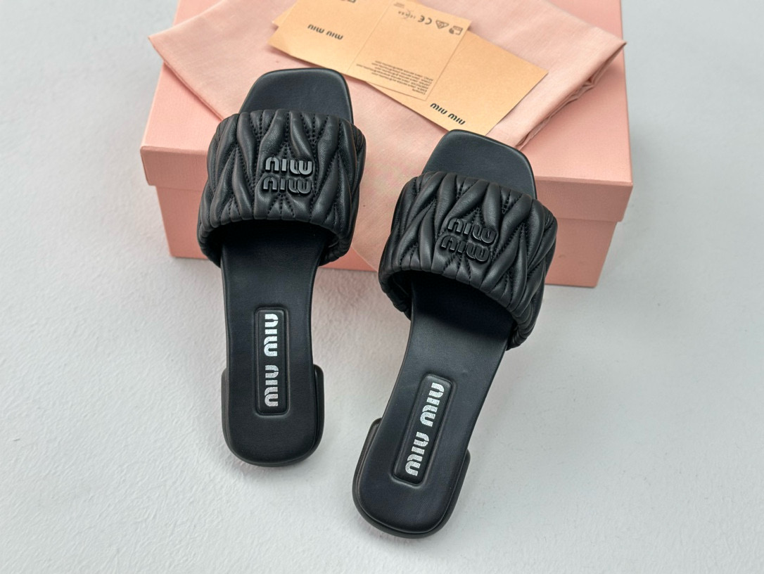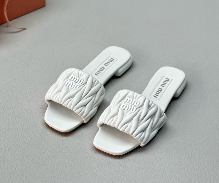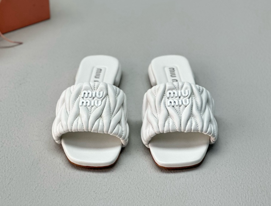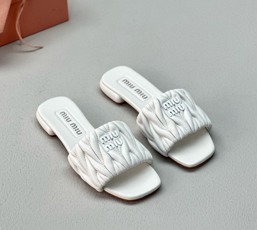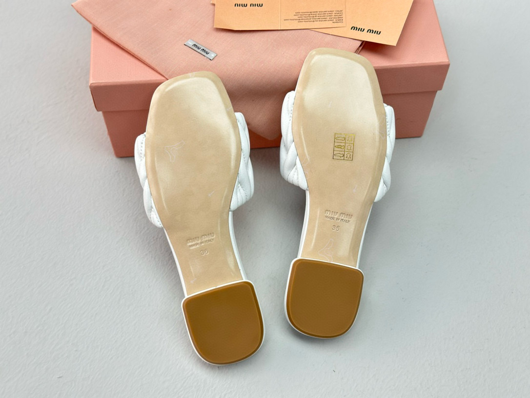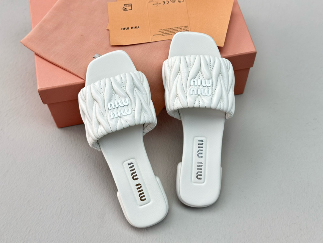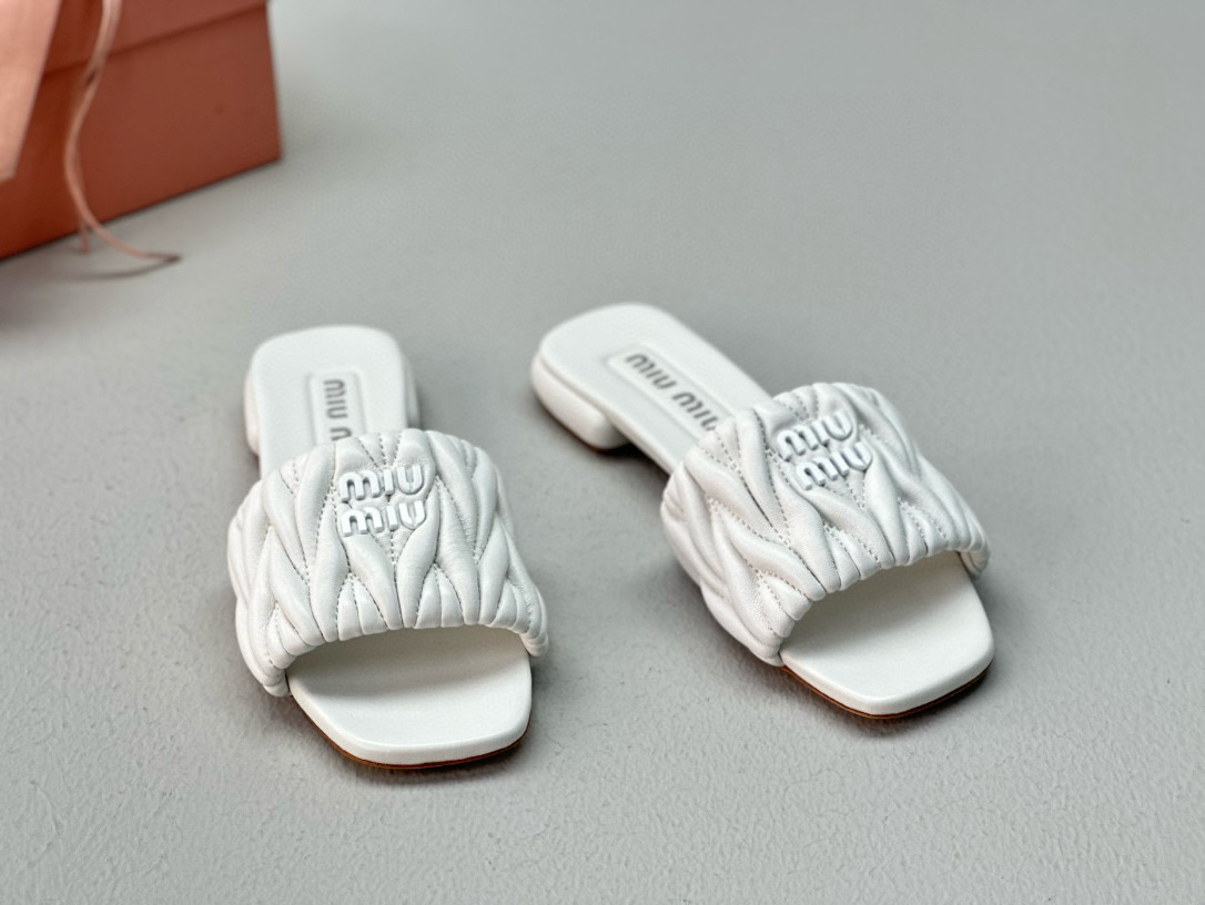 NIGO Miumiu Matelassé Women's Summer Solid Colour Soft Sheepskin Slipper Sandals Shoes #nigo99342