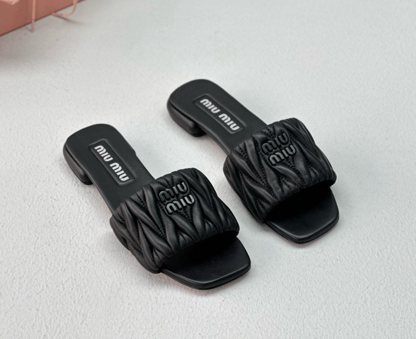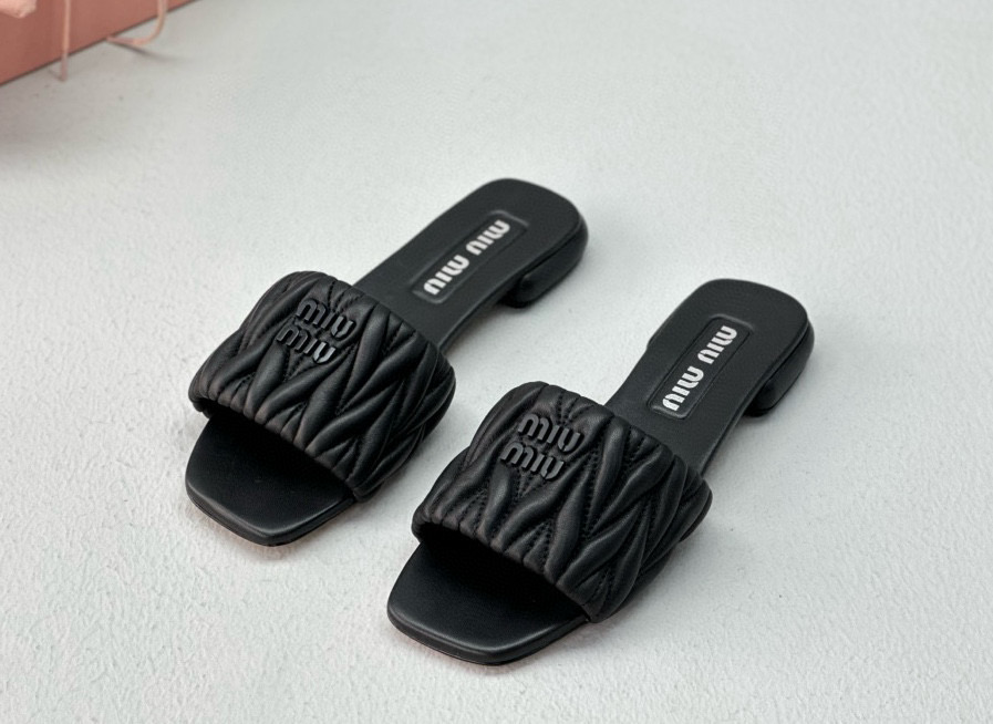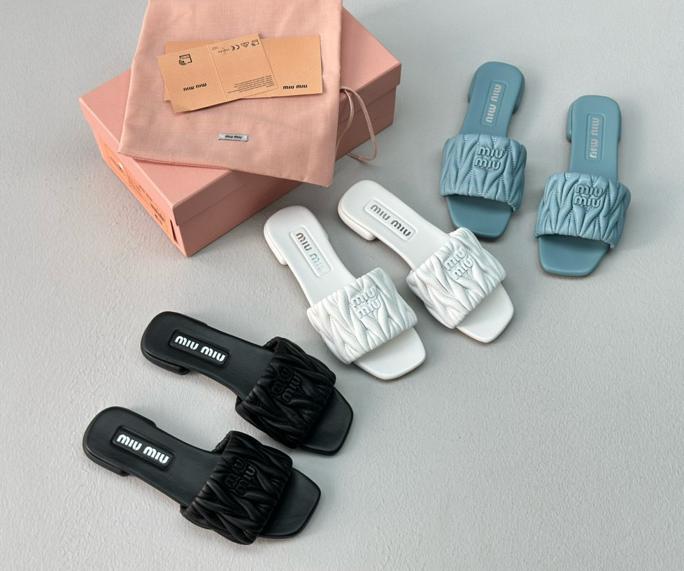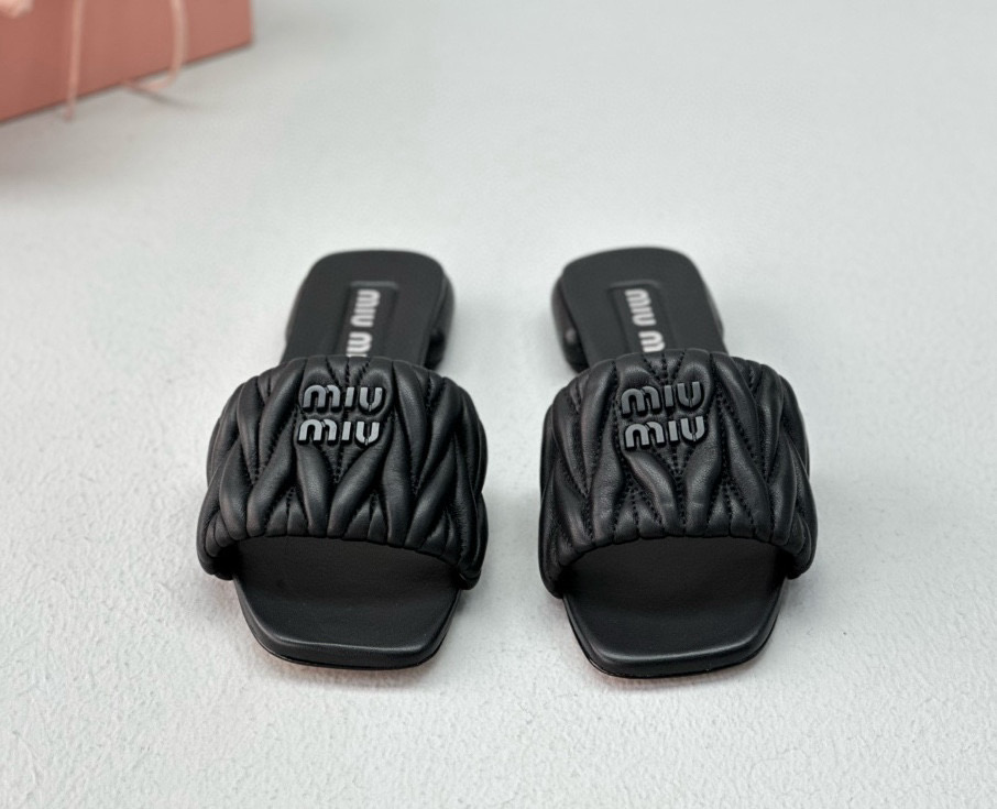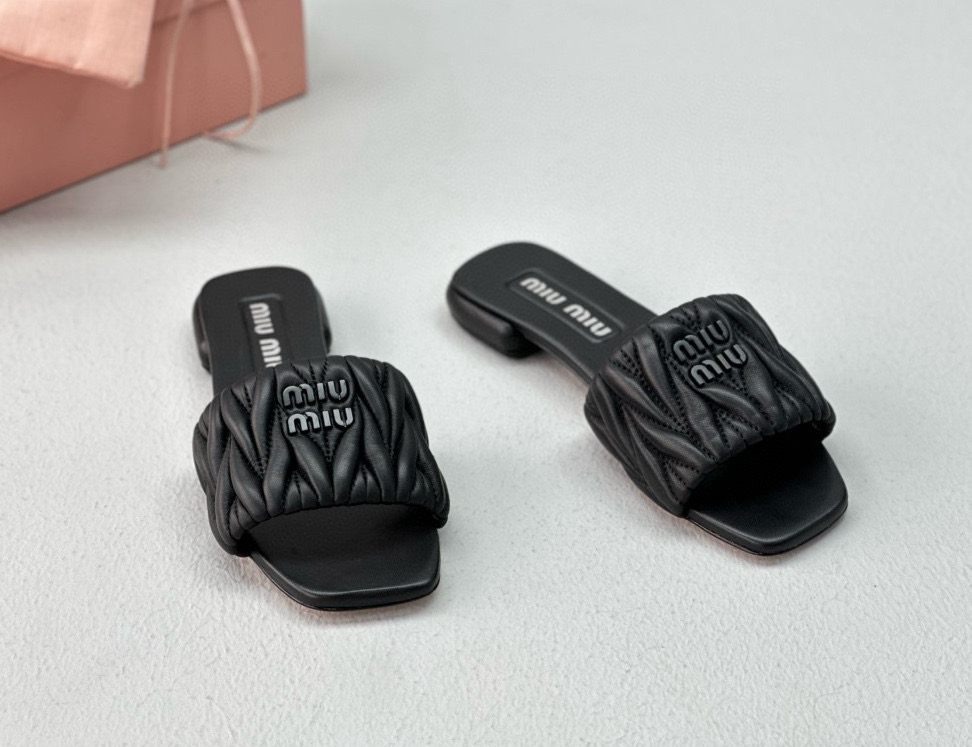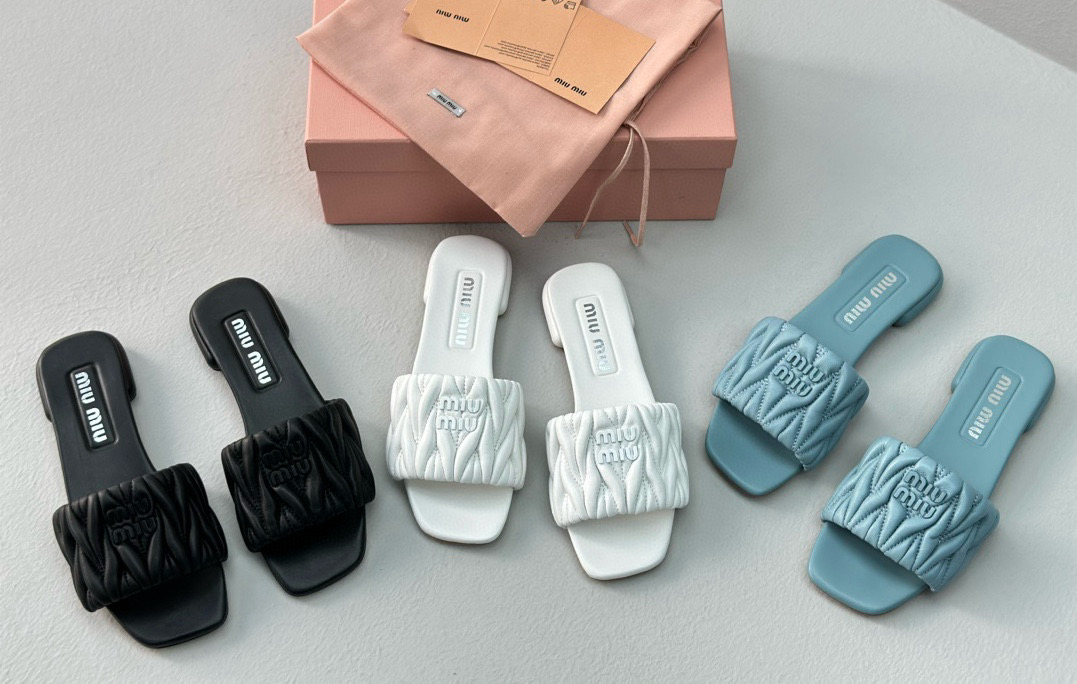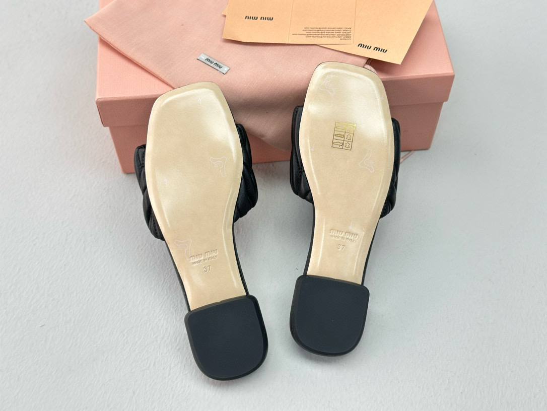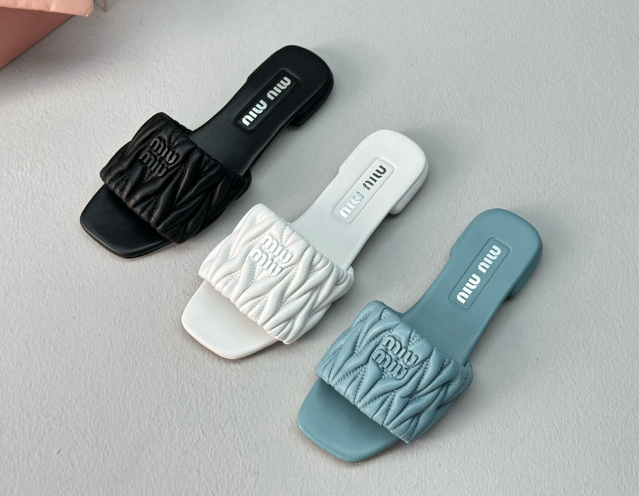 NIGO Miumiu Matelassé Women's Summer Solid Colour Soft Sheepskin Slipper Sandals Shoes #nigo99342
