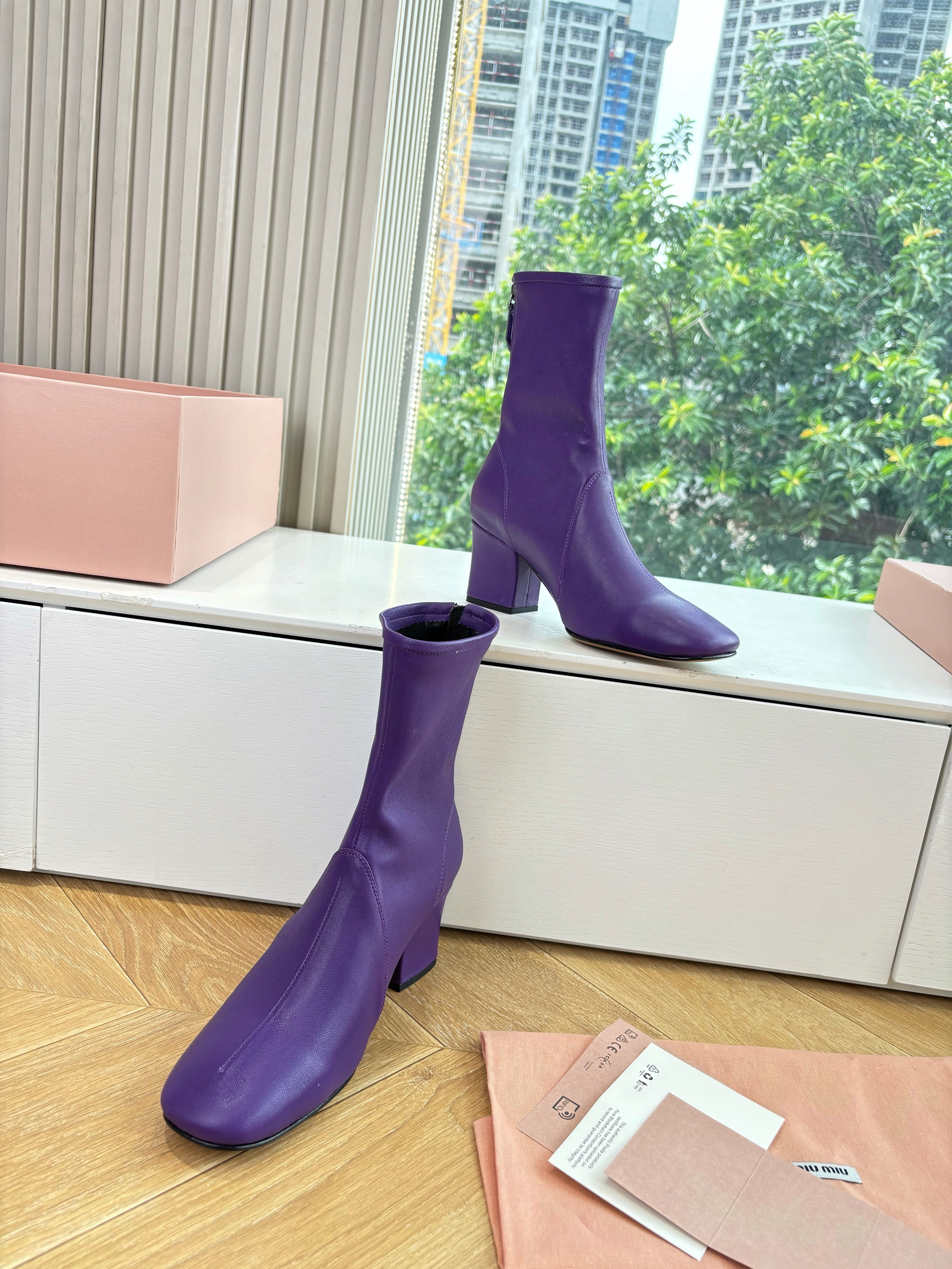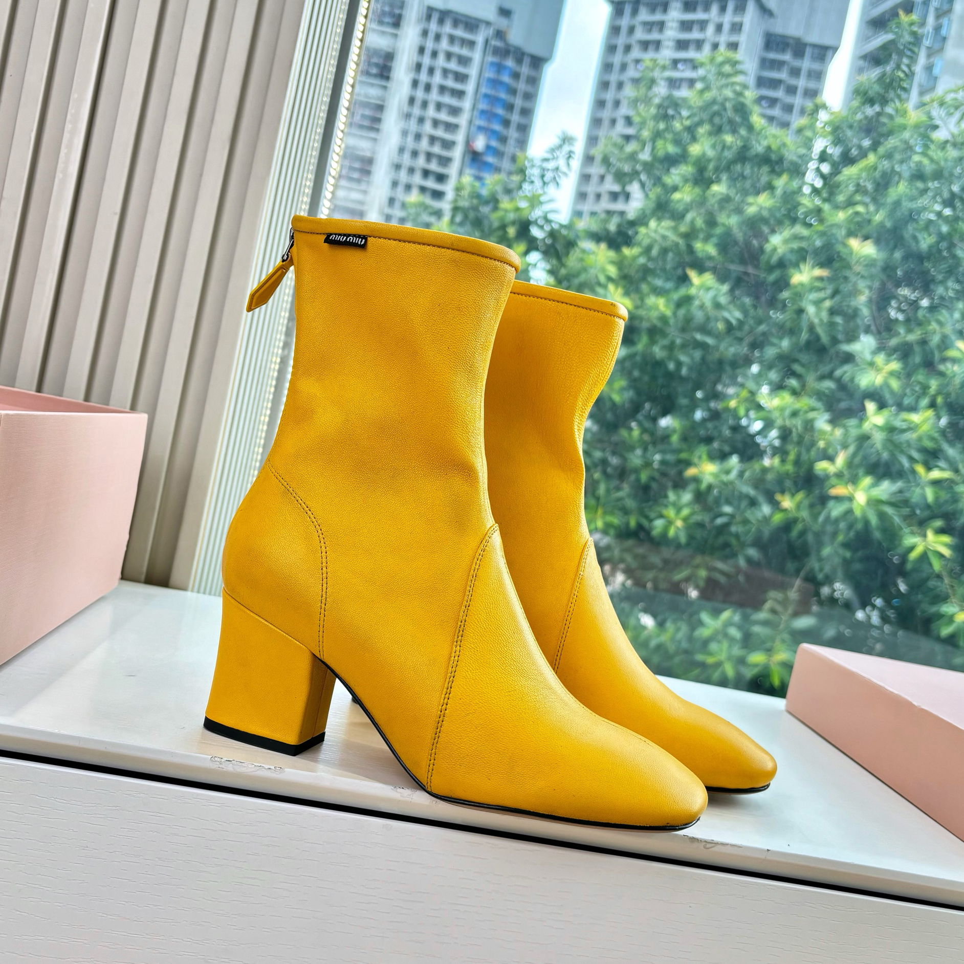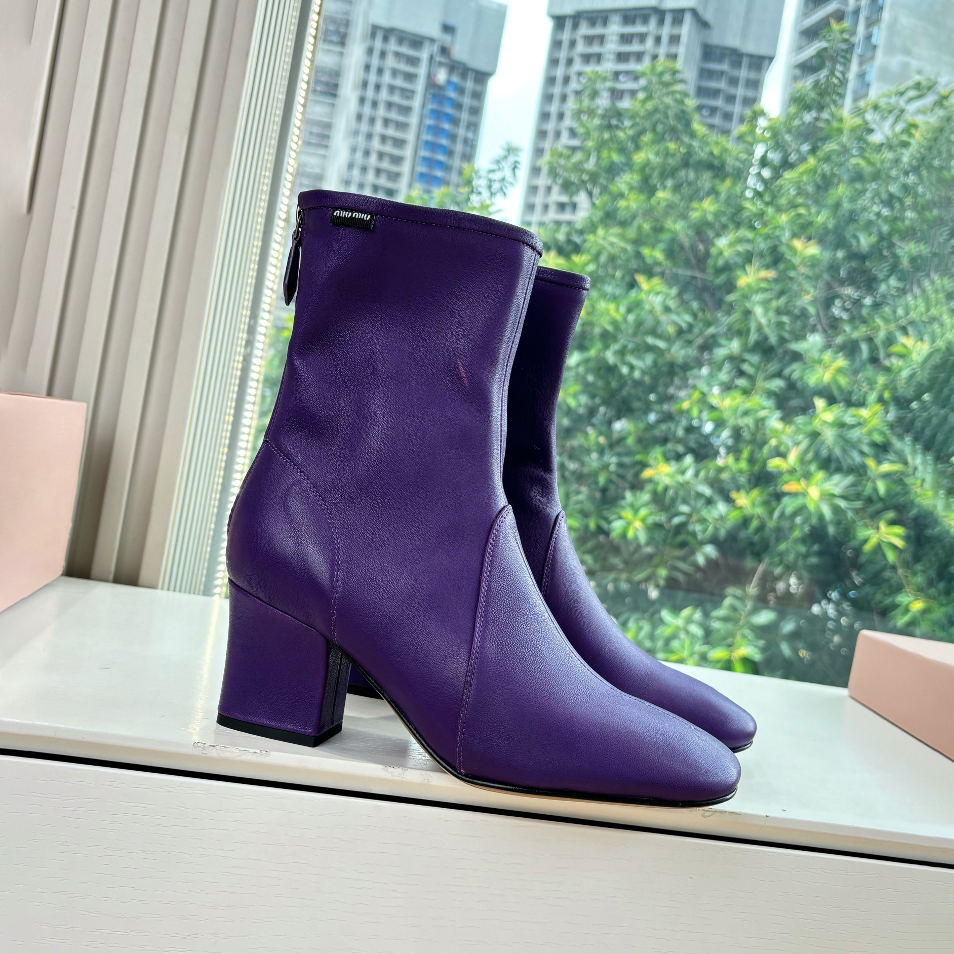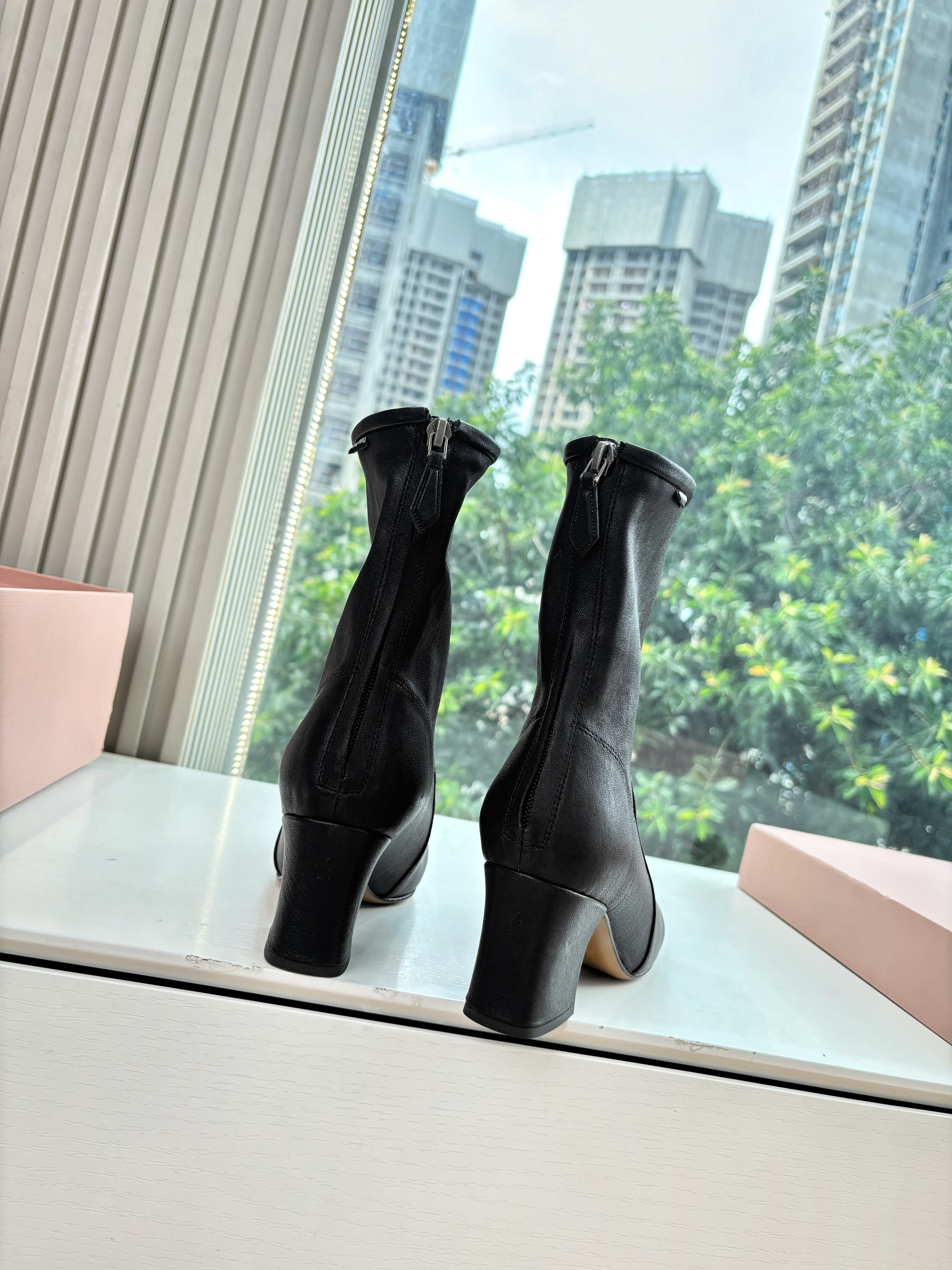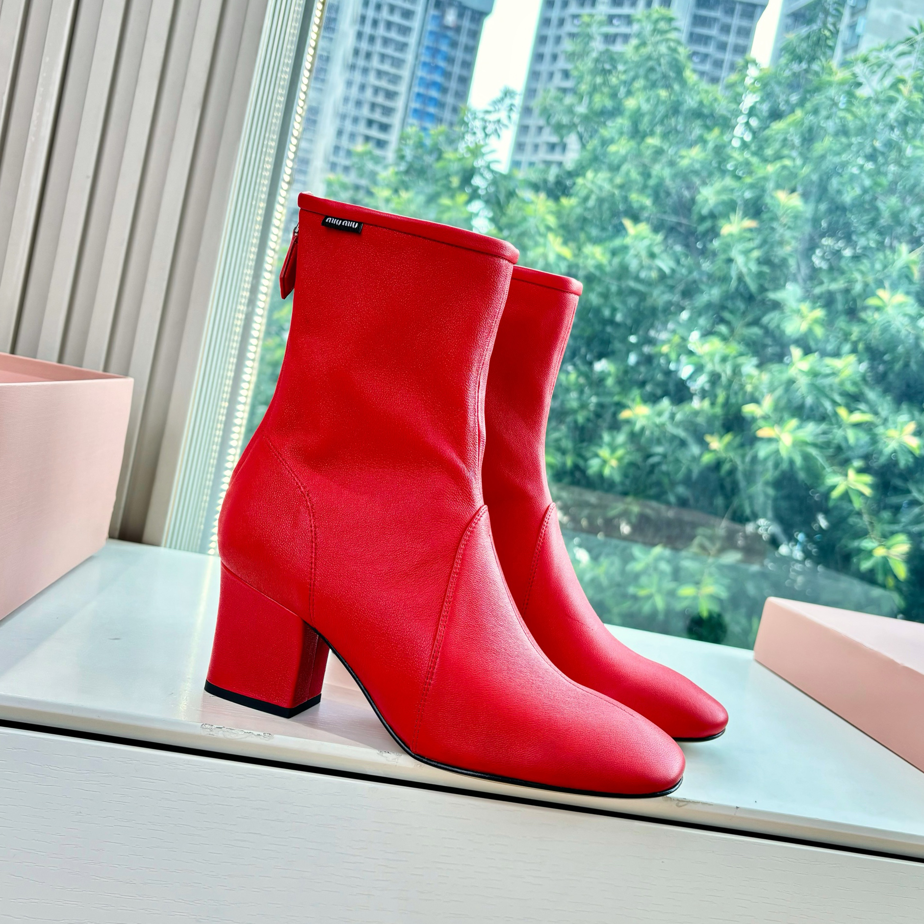 NIGO MiuMiu Nappa Women's Spring/Fall Fashion Casual Chunky Heel Leather Round Toe Slip On Zipper Ankle Boots Shoes #nigo78717