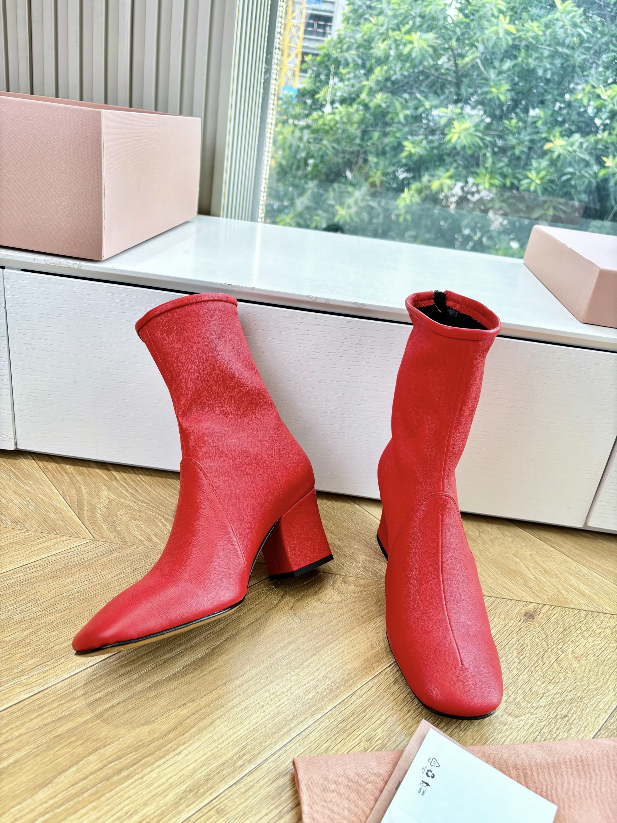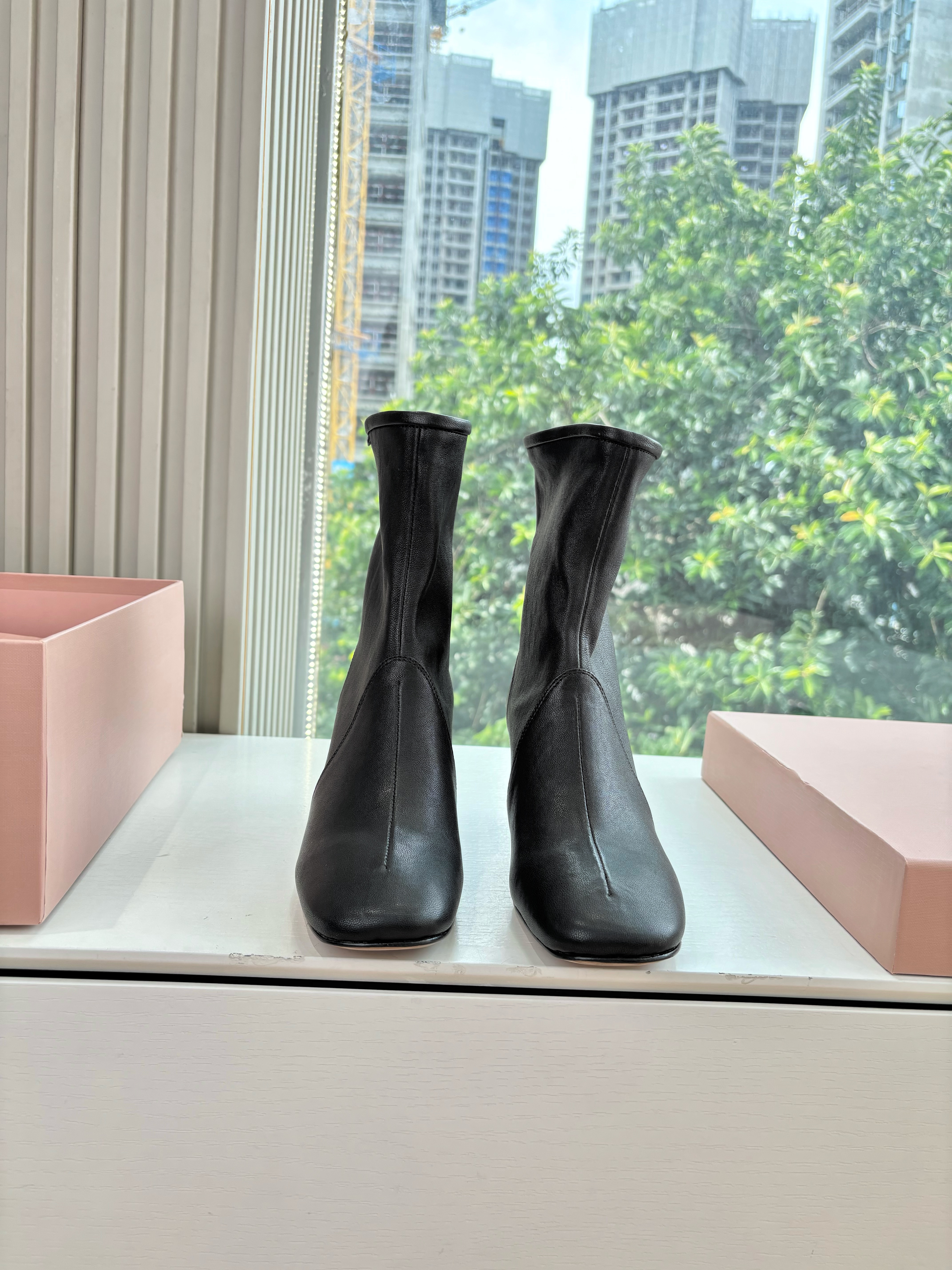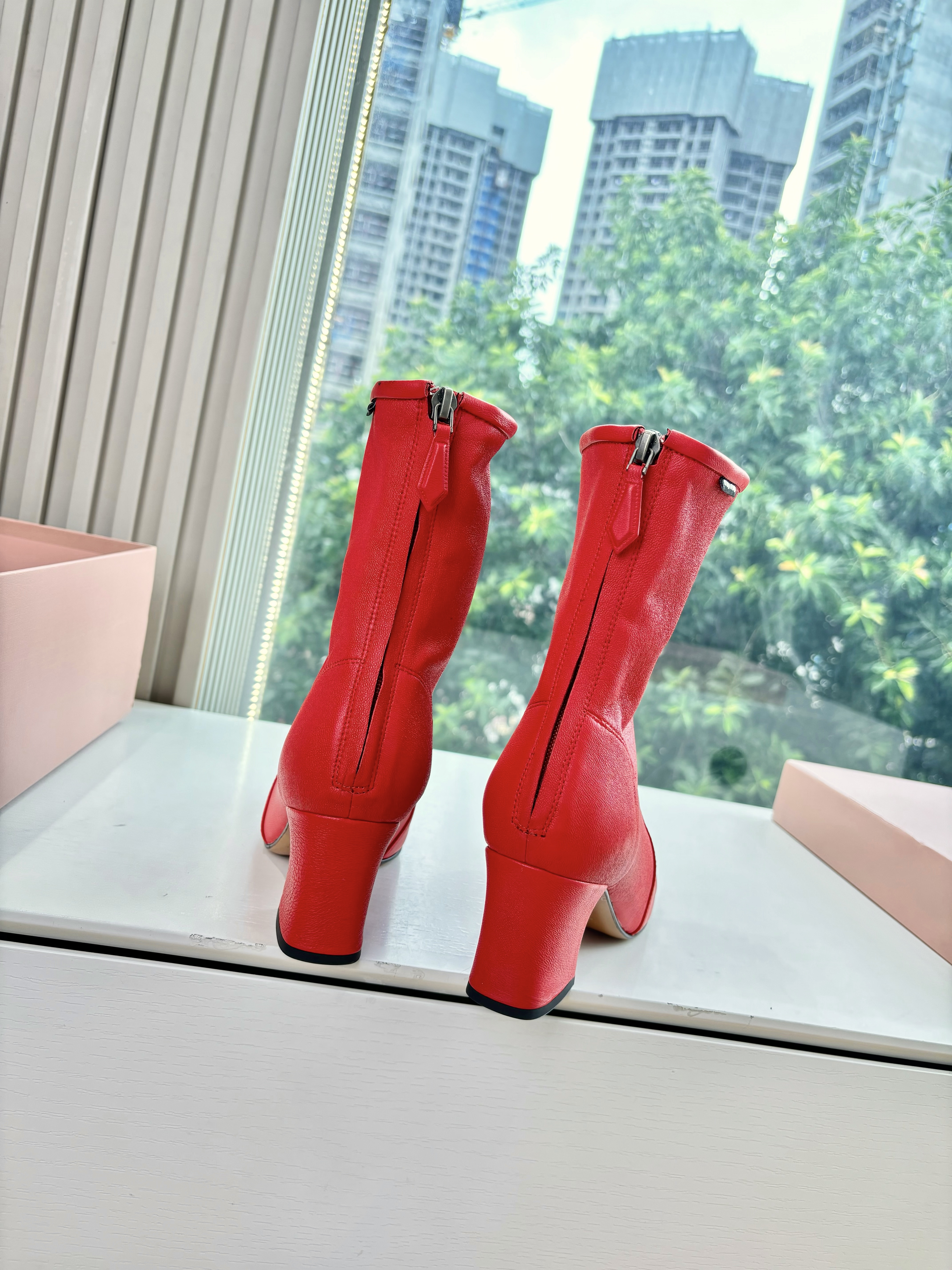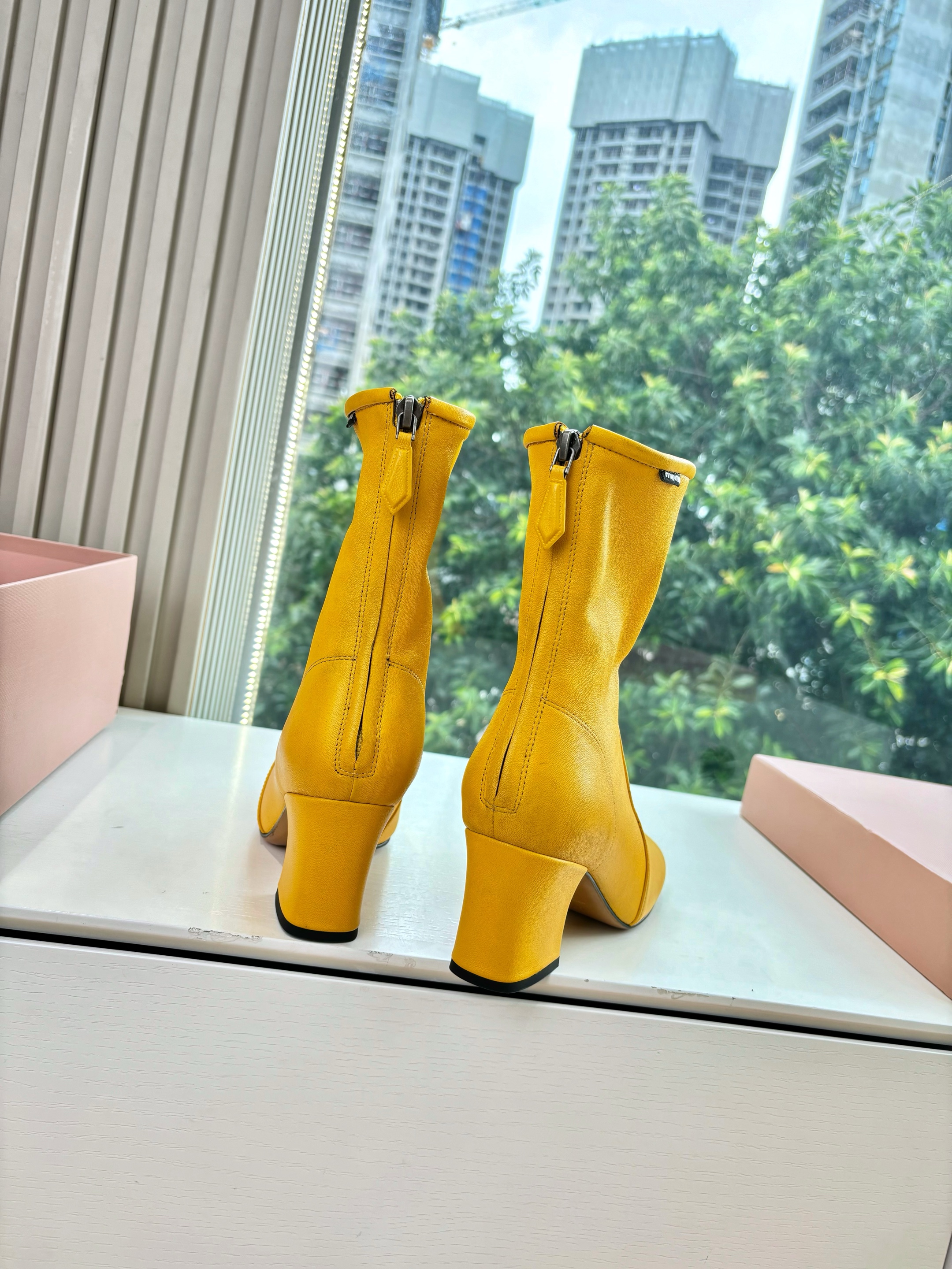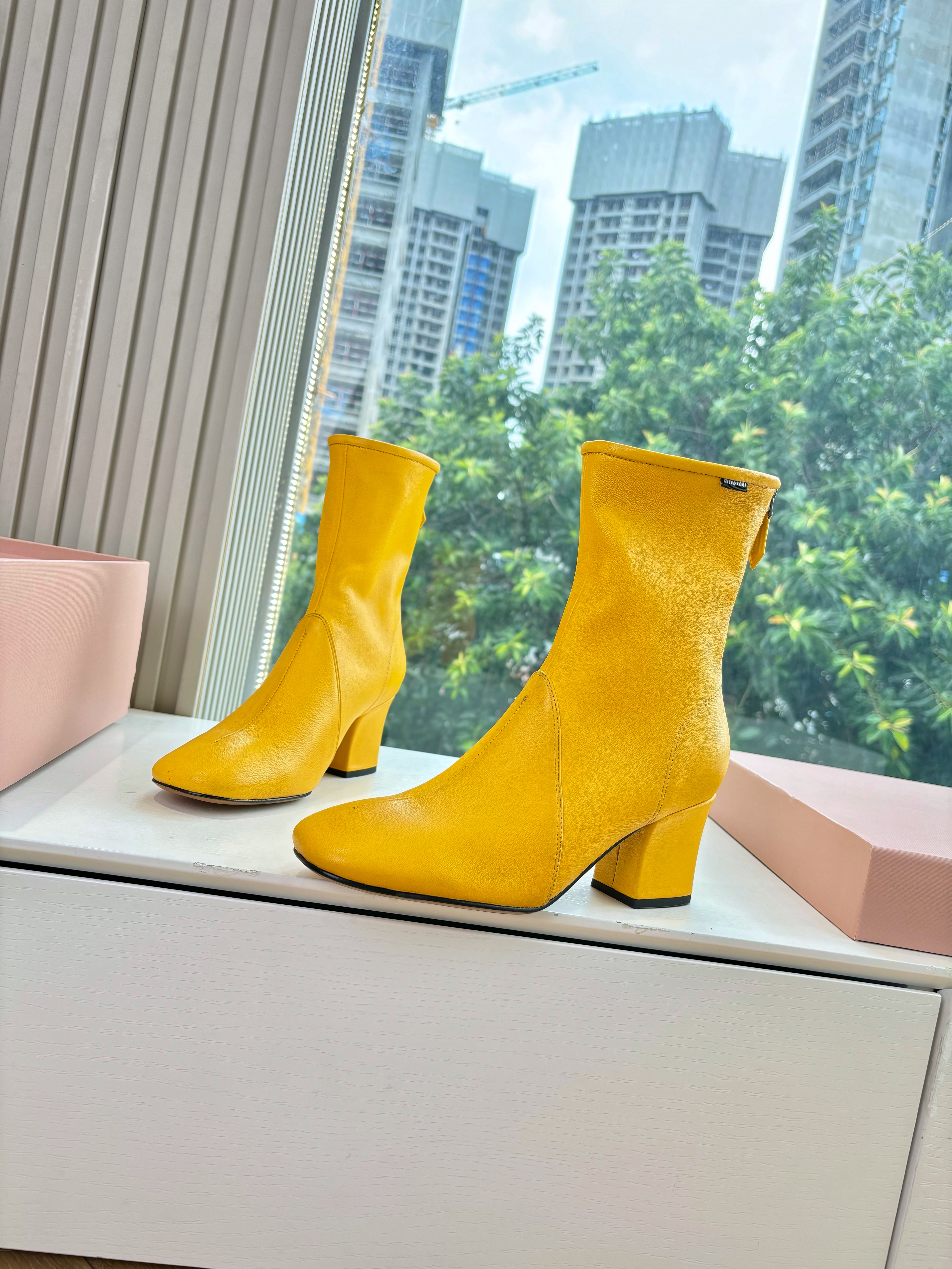 NIGO MiuMiu Nappa Women's Spring/Fall Fashion Casual Chunky Heel Leather Round Toe Slip On Zipper Ankle Boots Shoes #nigo78717