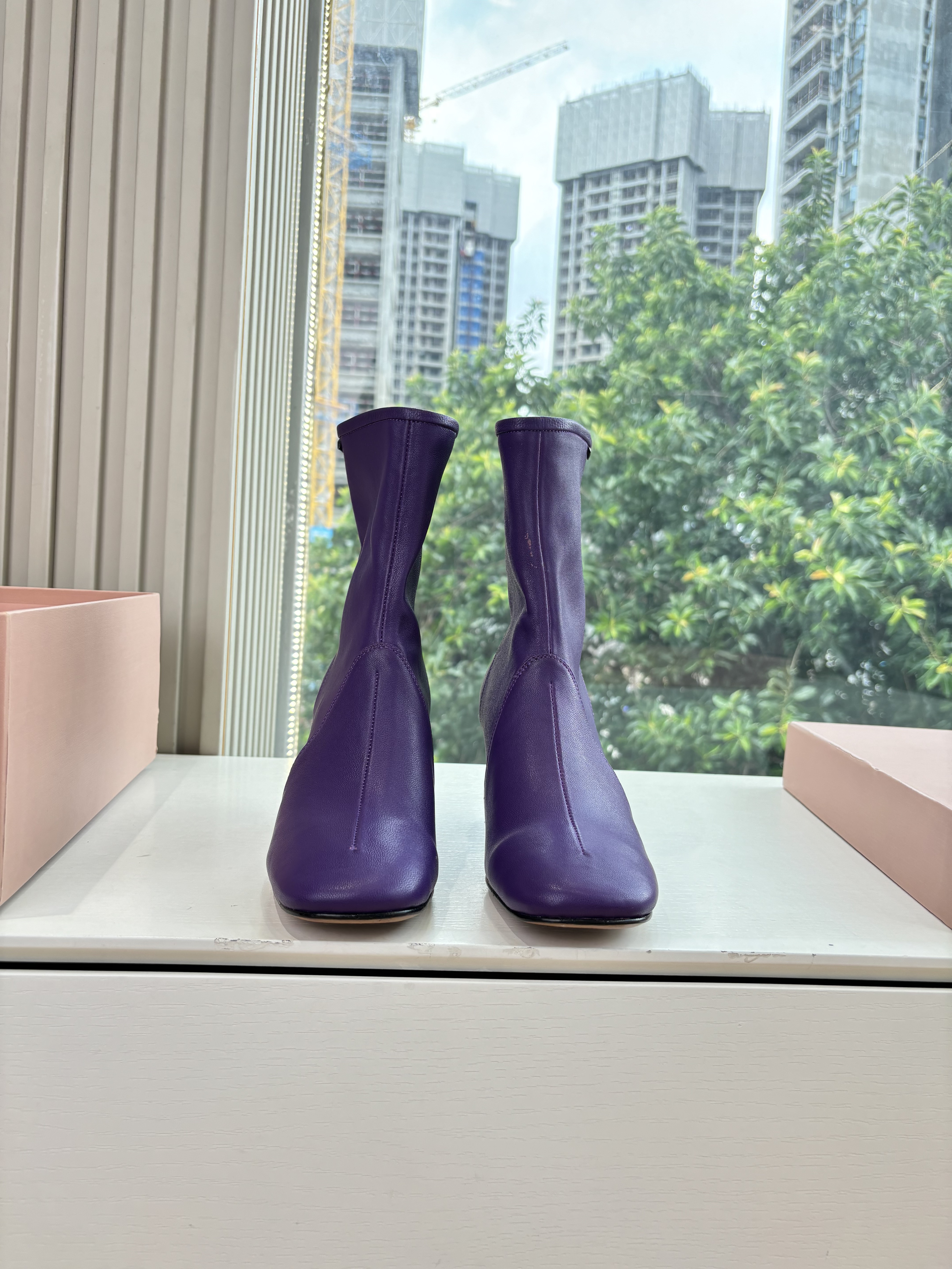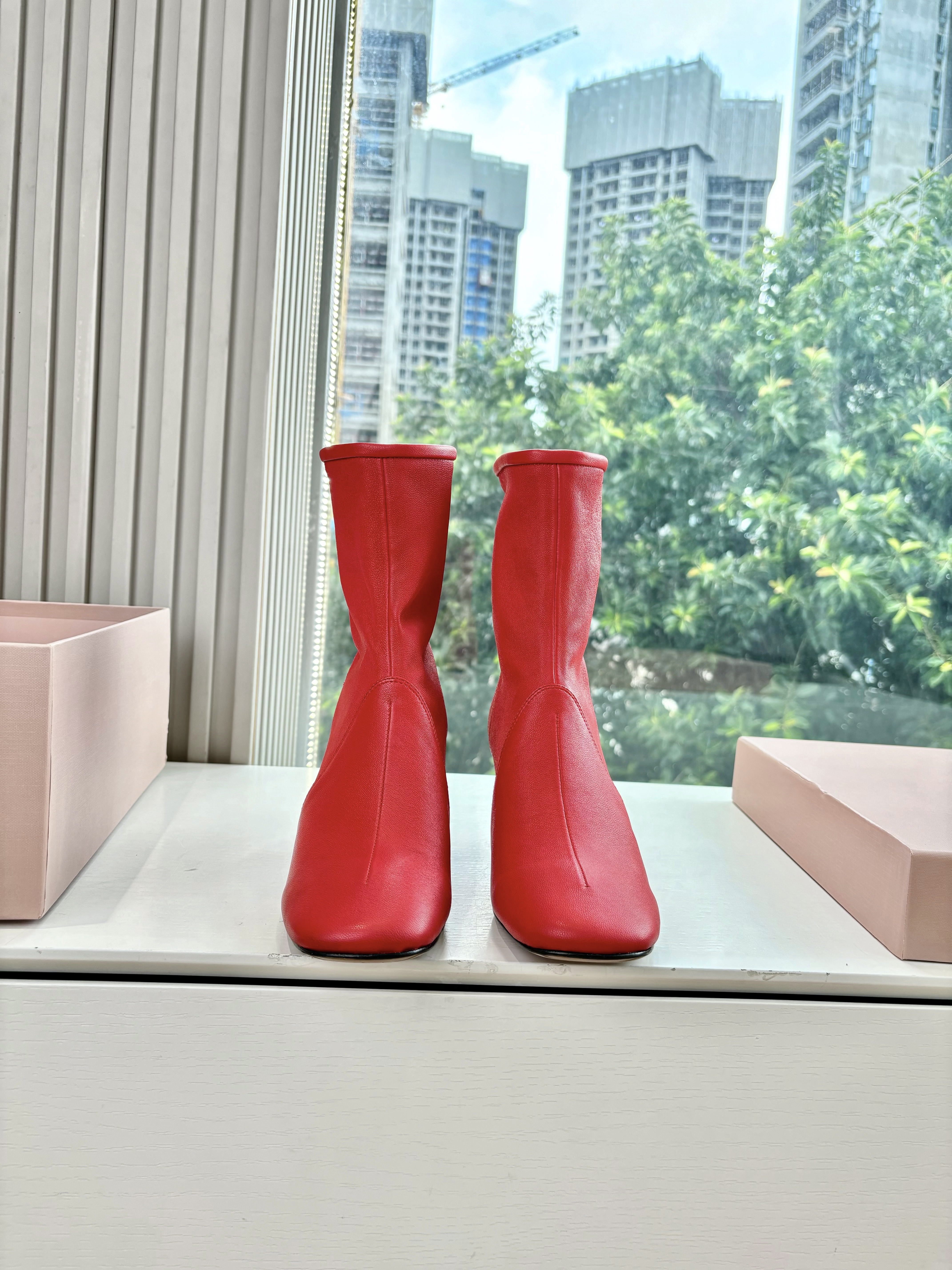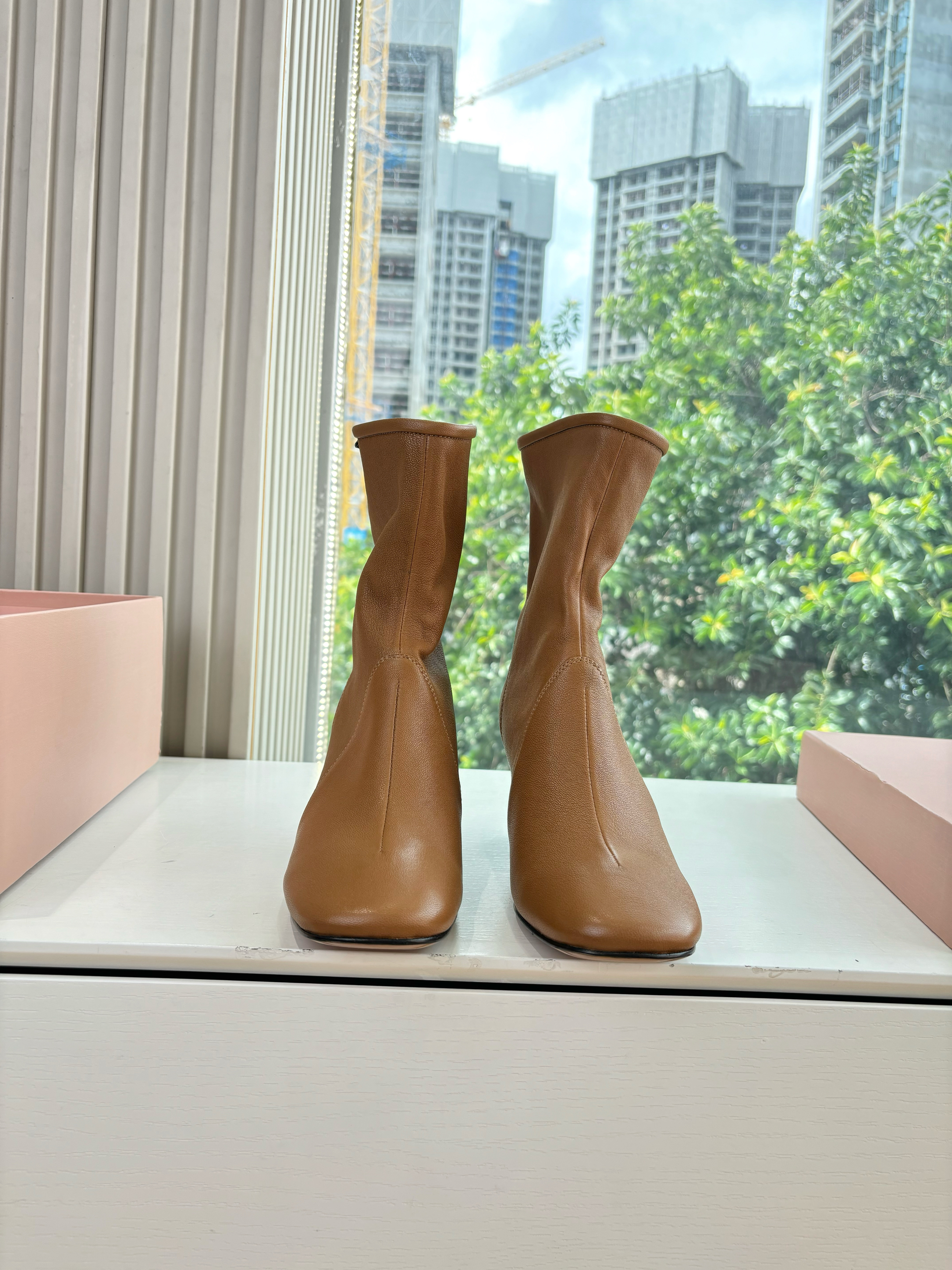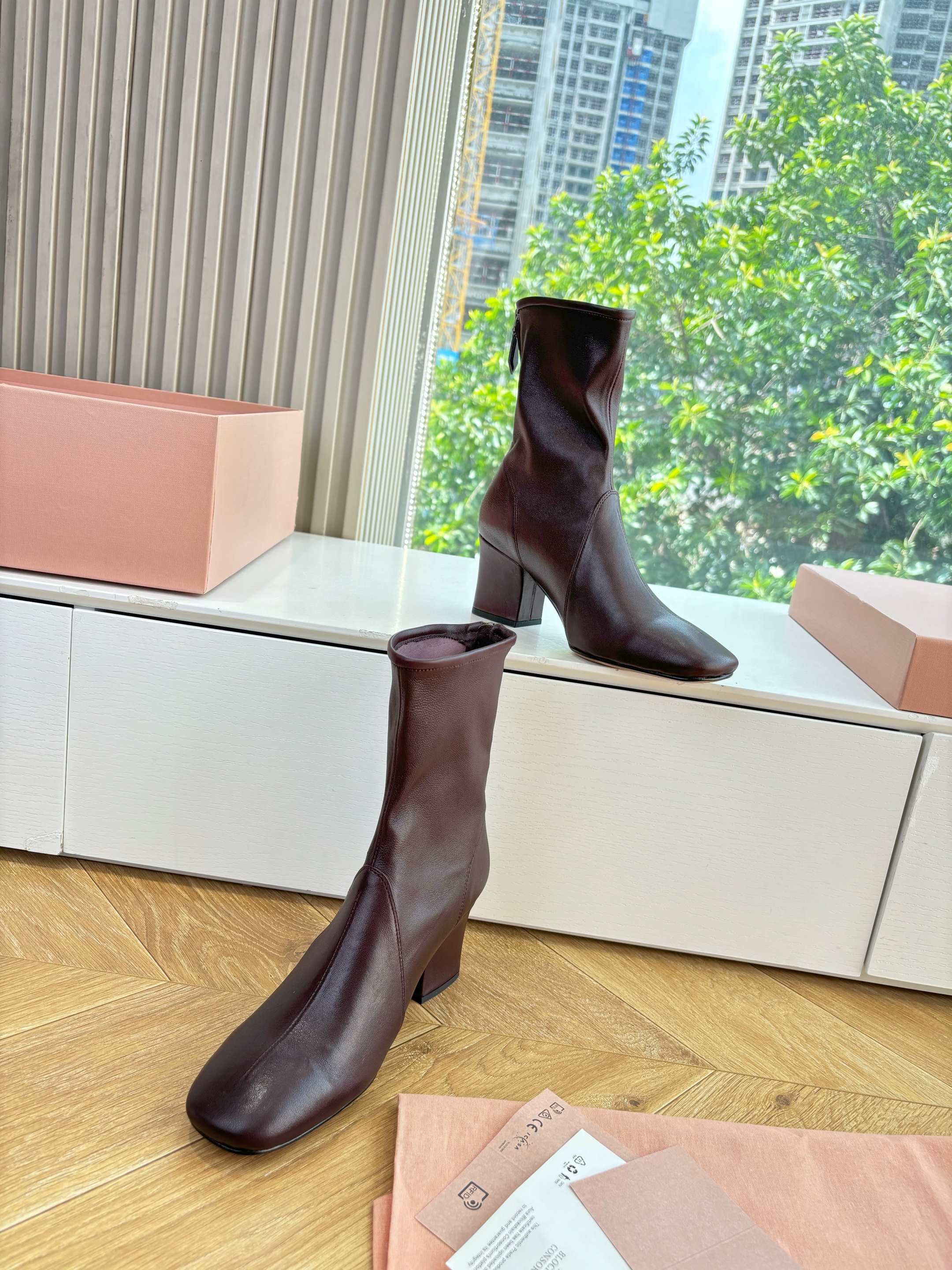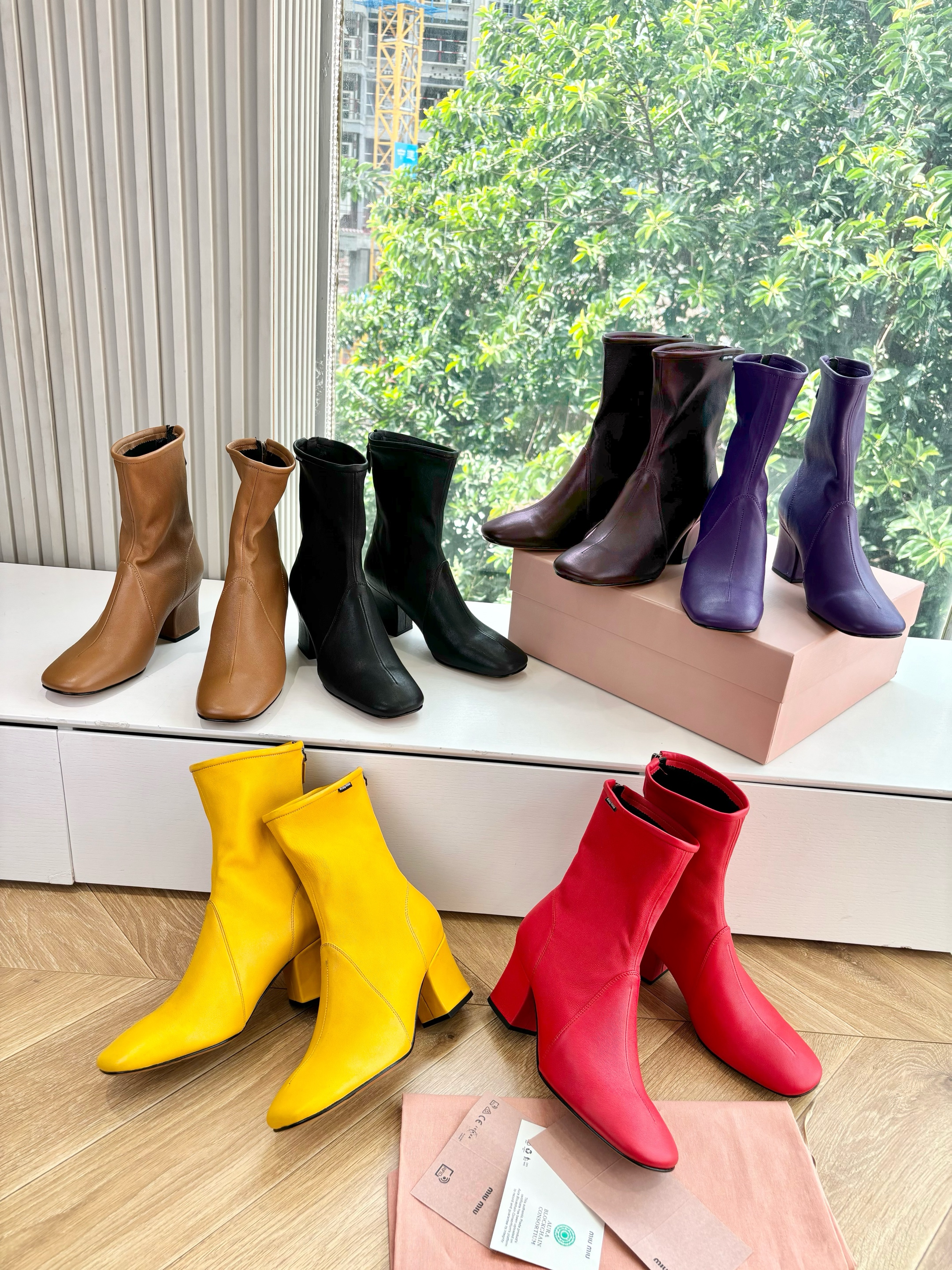 NIGO MiuMiu Nappa Women's Spring/Fall Fashion Casual Chunky Heel Leather Round Toe Slip On Zipper Ankle Boots Shoes #nigo78717