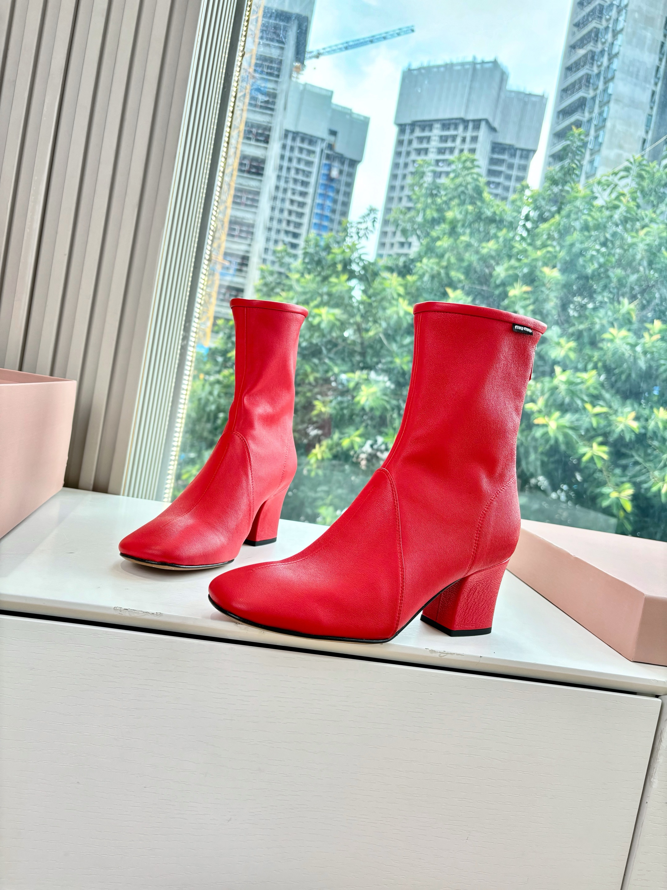 Home / MIUMIU / NIGO MiuMiu Nappa Women's Spring/Fall Fashion Casual Chunky Heel Leather Round Toe Slip On Zipper Ankle Boots Shoes #nigo78717