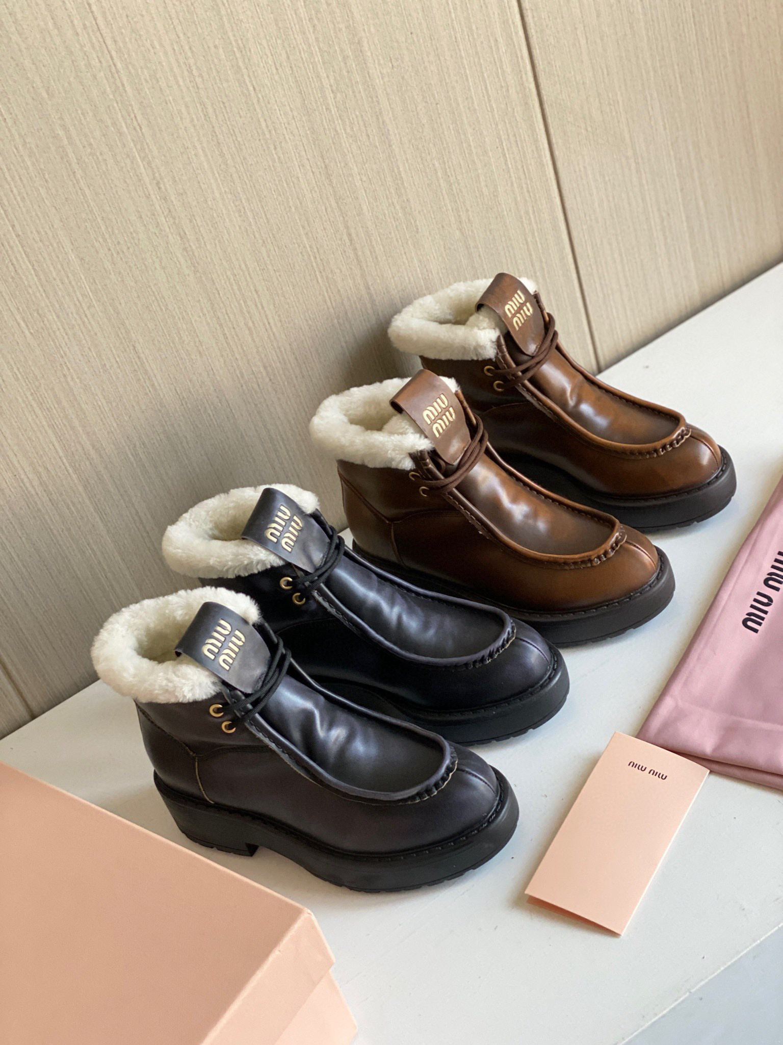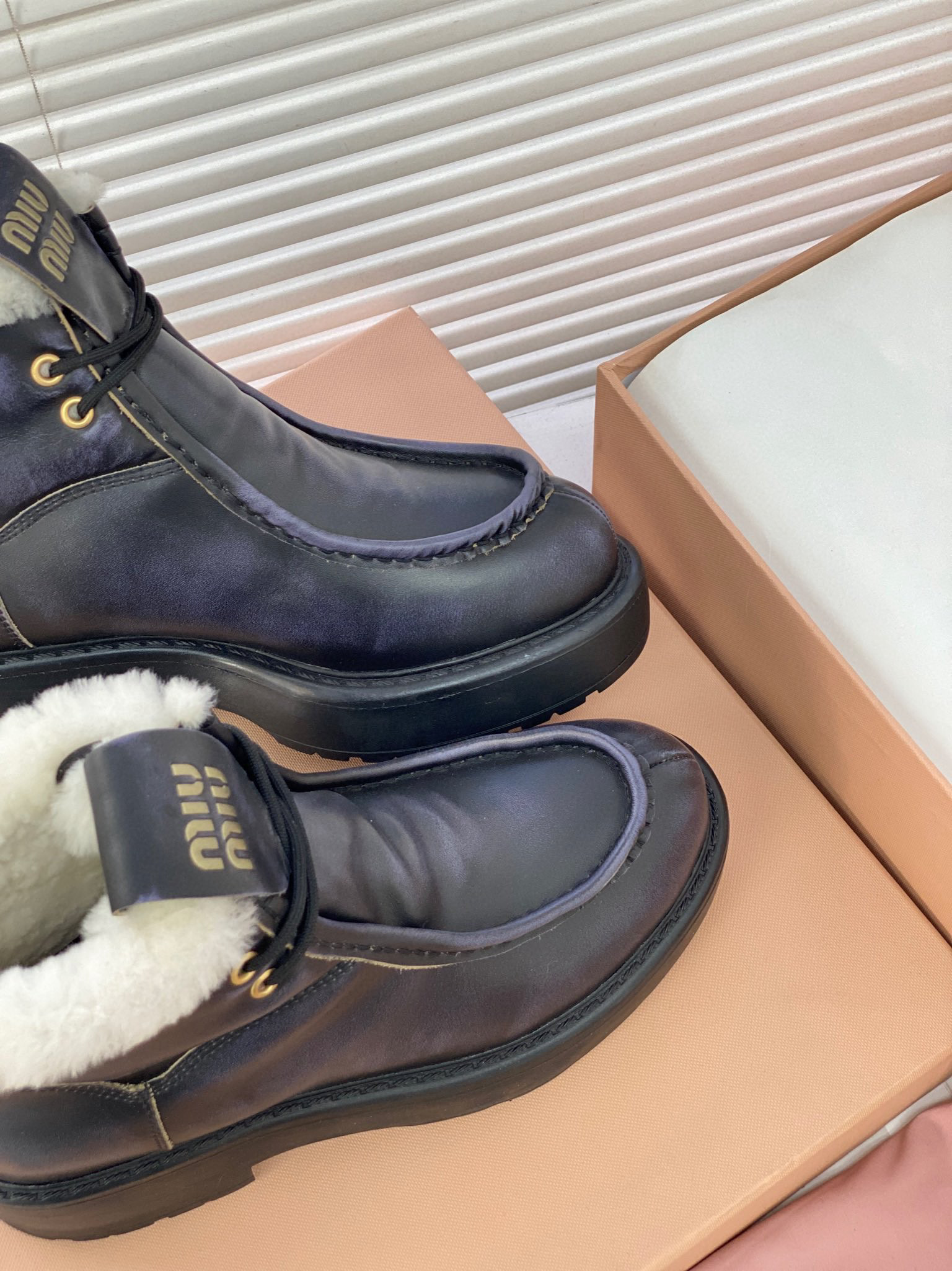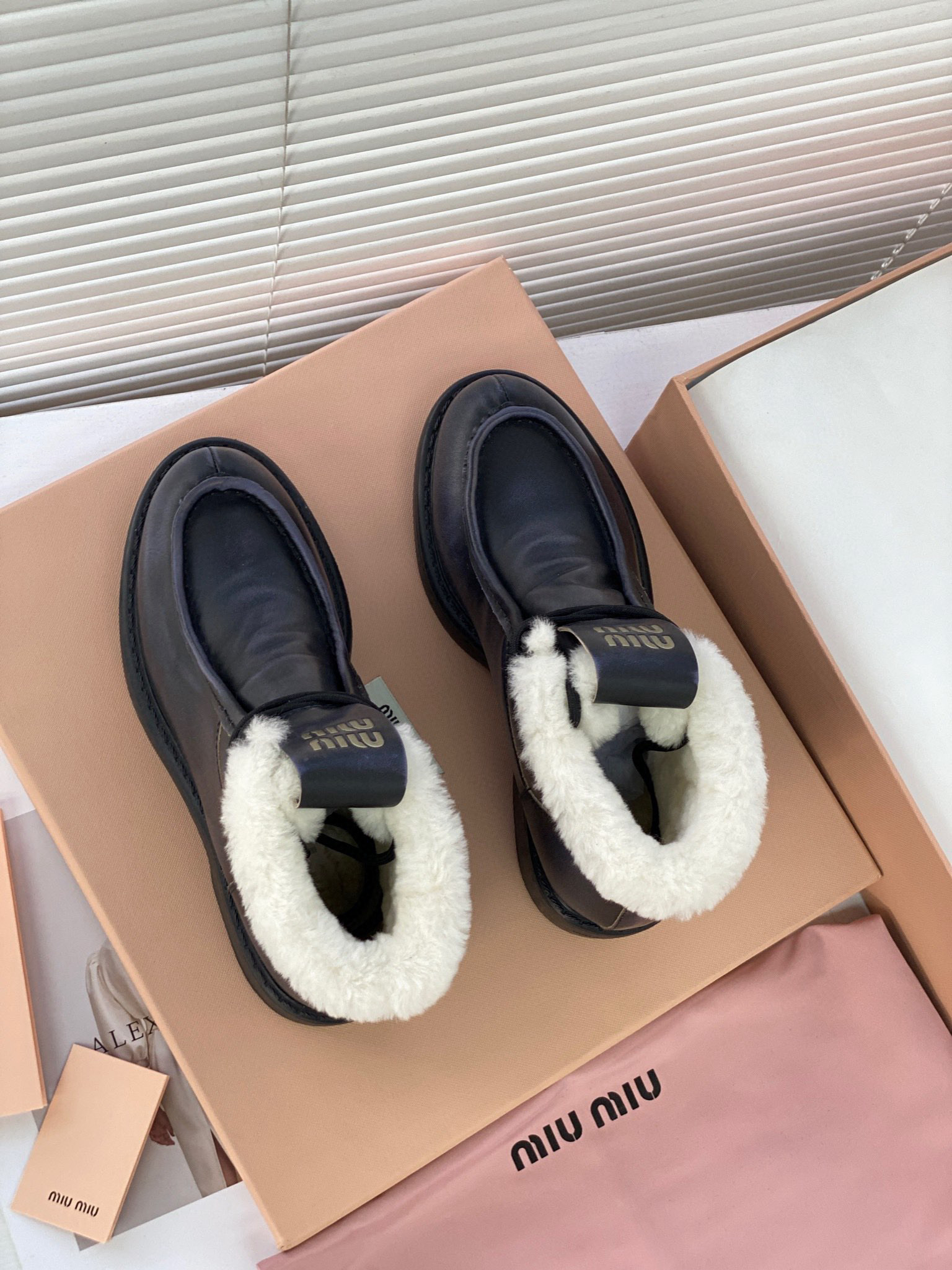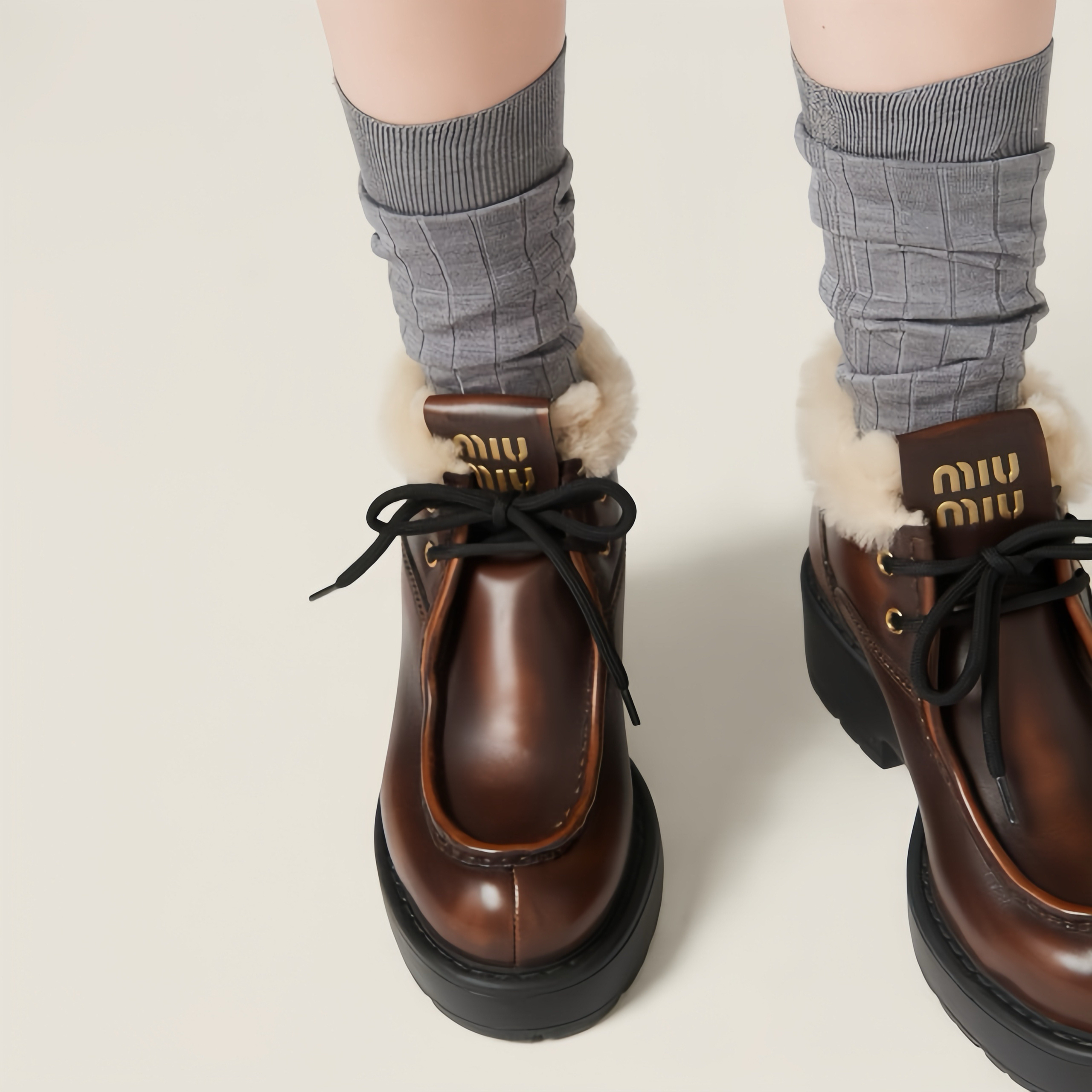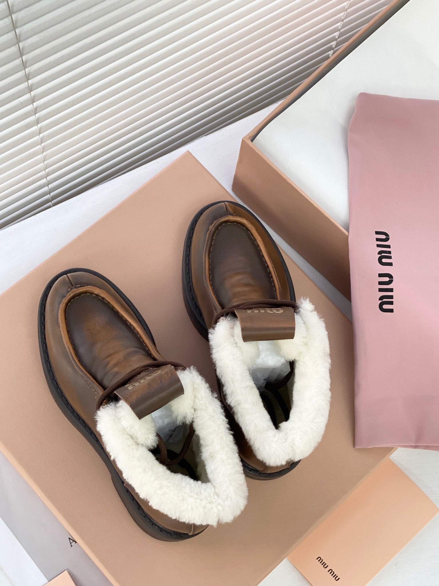 NIGO MiuMiu Women's Autumn And Winter Warm Wool British Style Lace-up Highbang Loafers Shoes #nigo97428