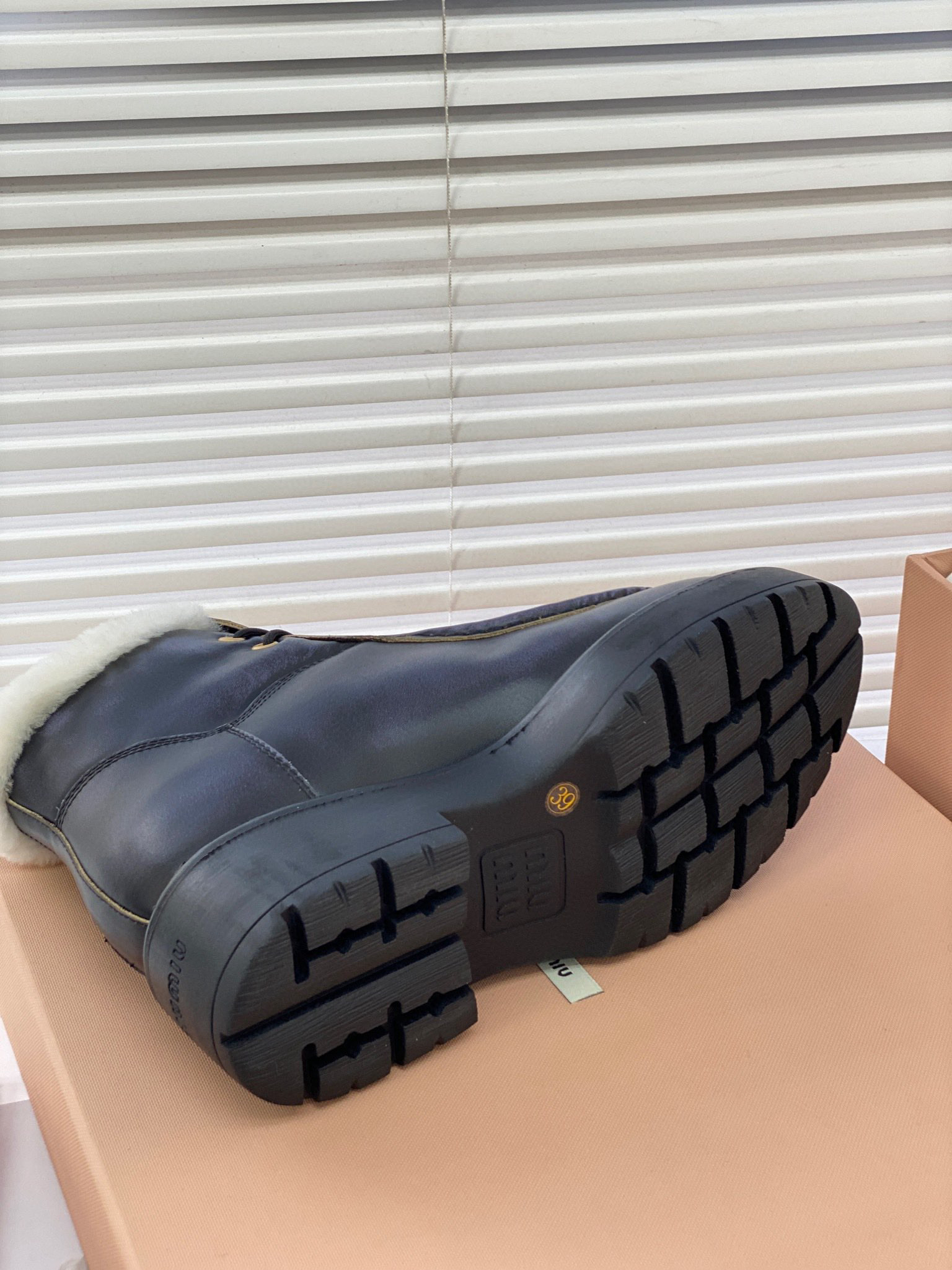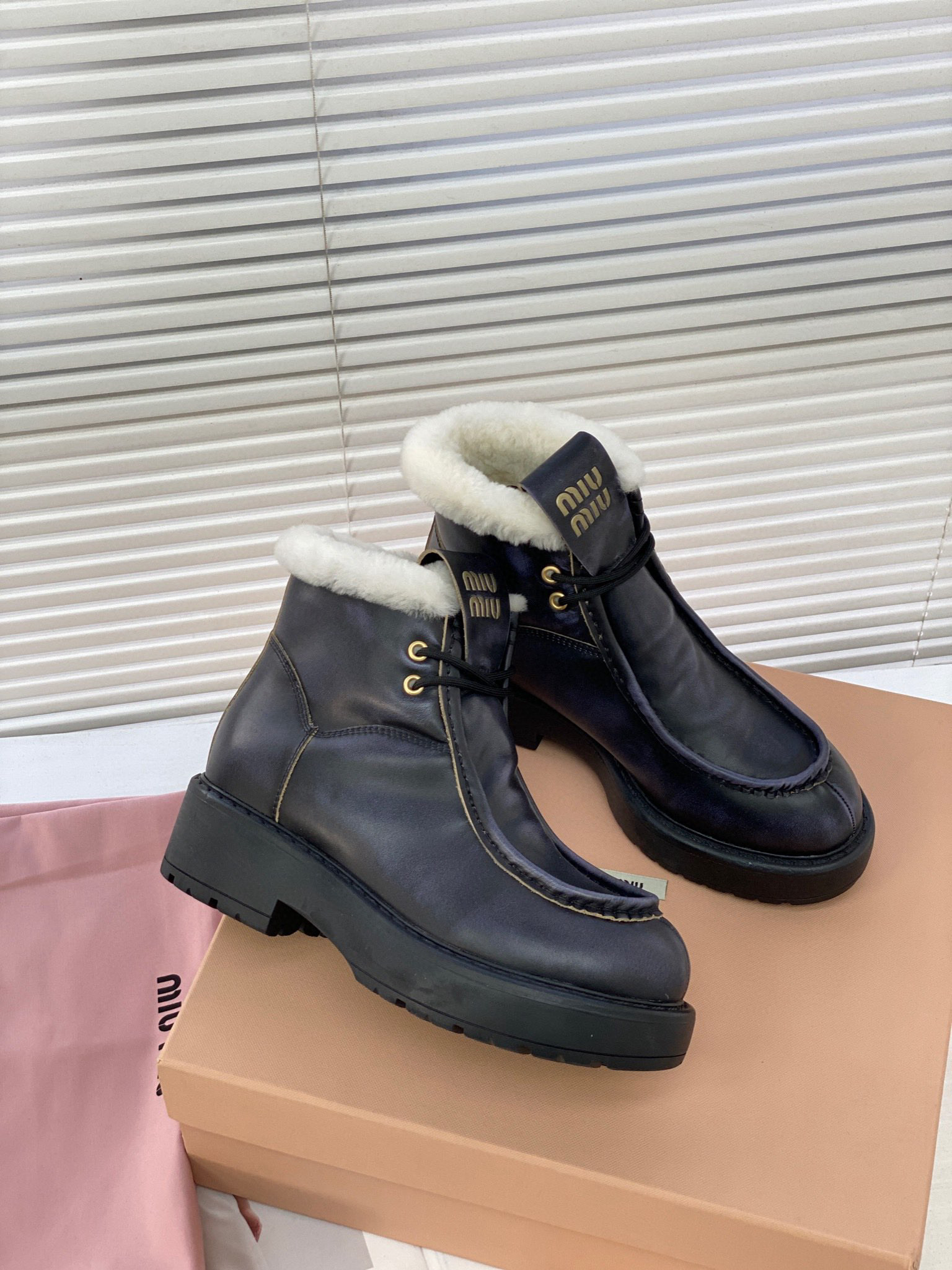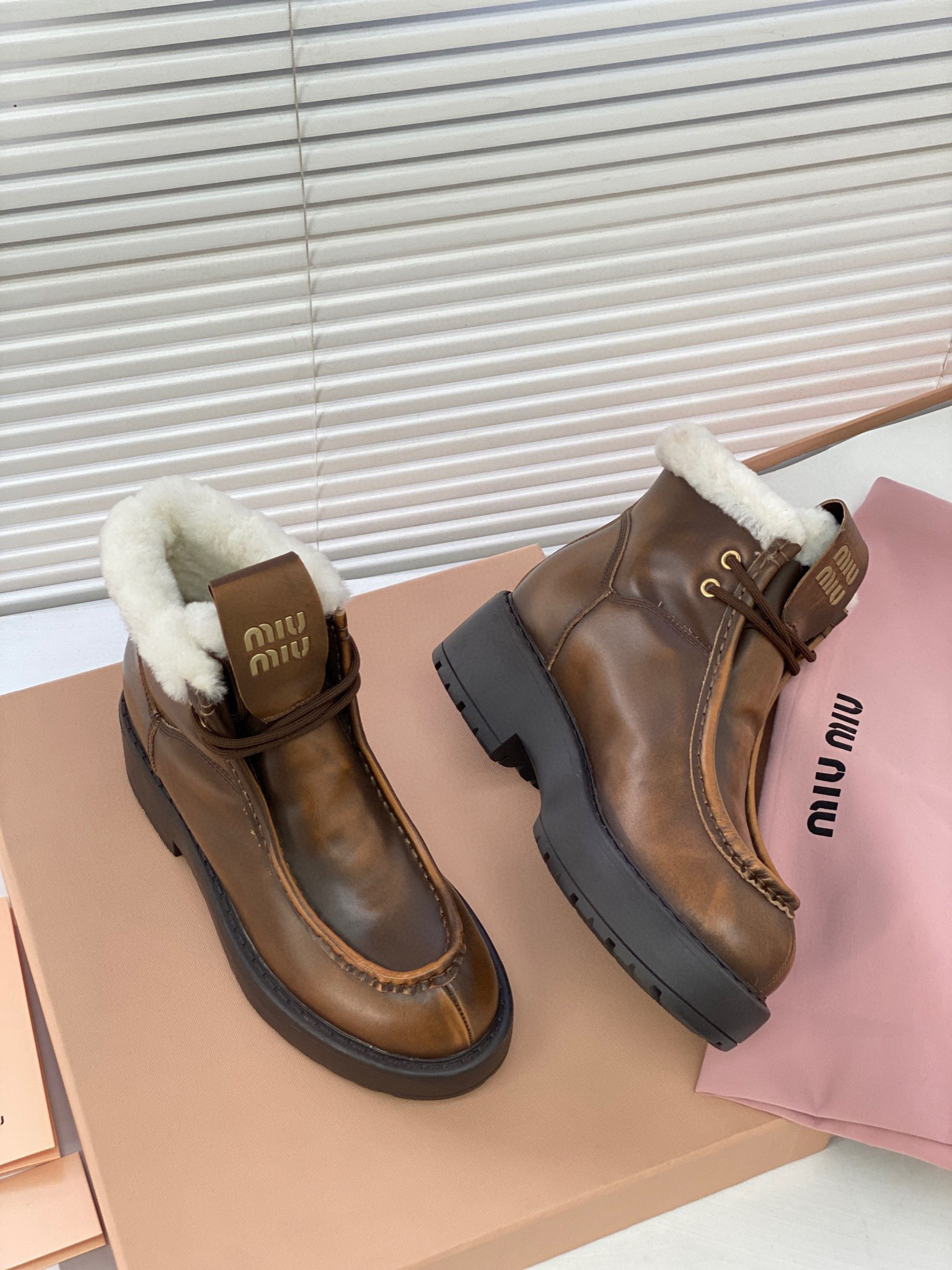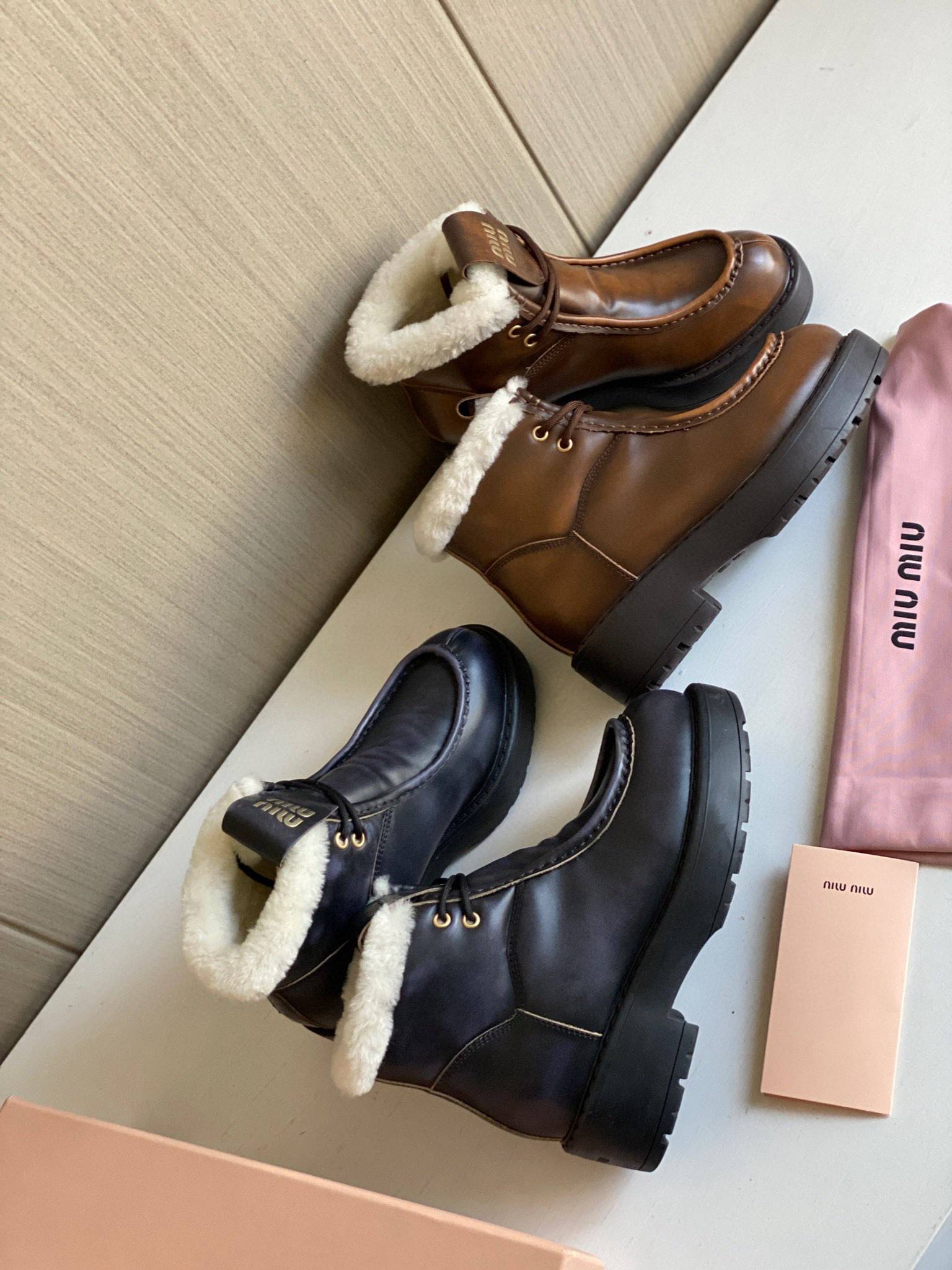 NIGO MiuMiu Women's Autumn And Winter Warm Wool British Style Lace-up Highbang Loafers Shoes #nigo97428