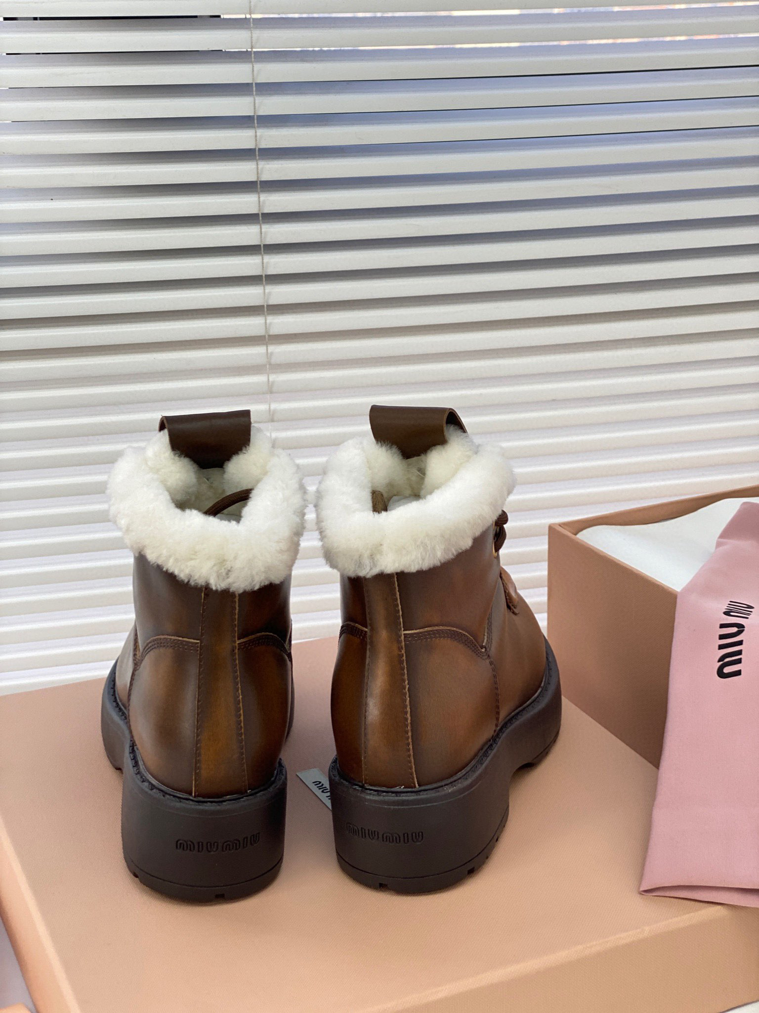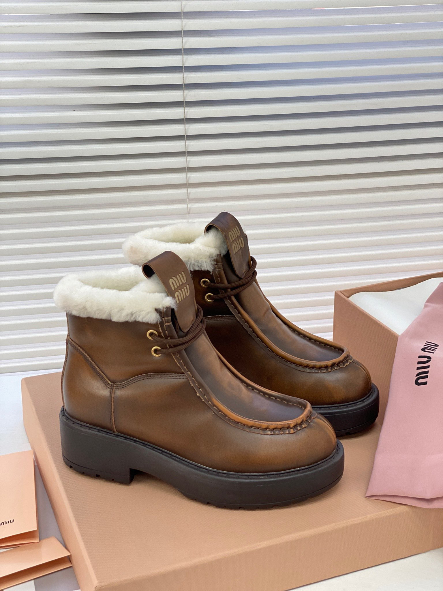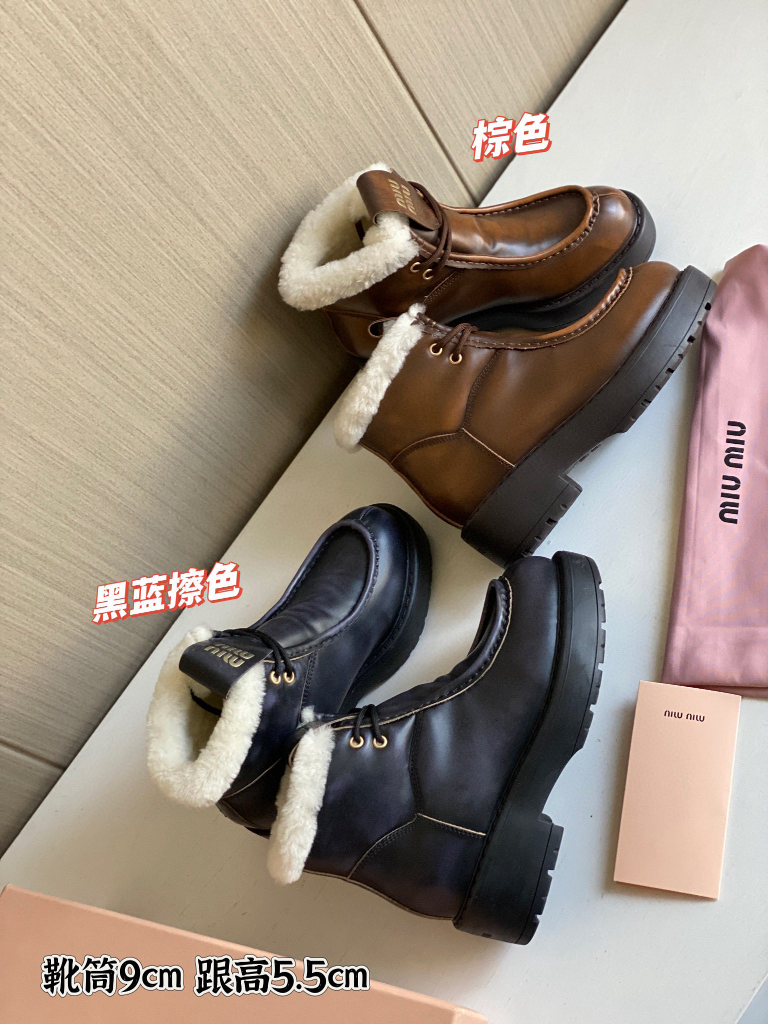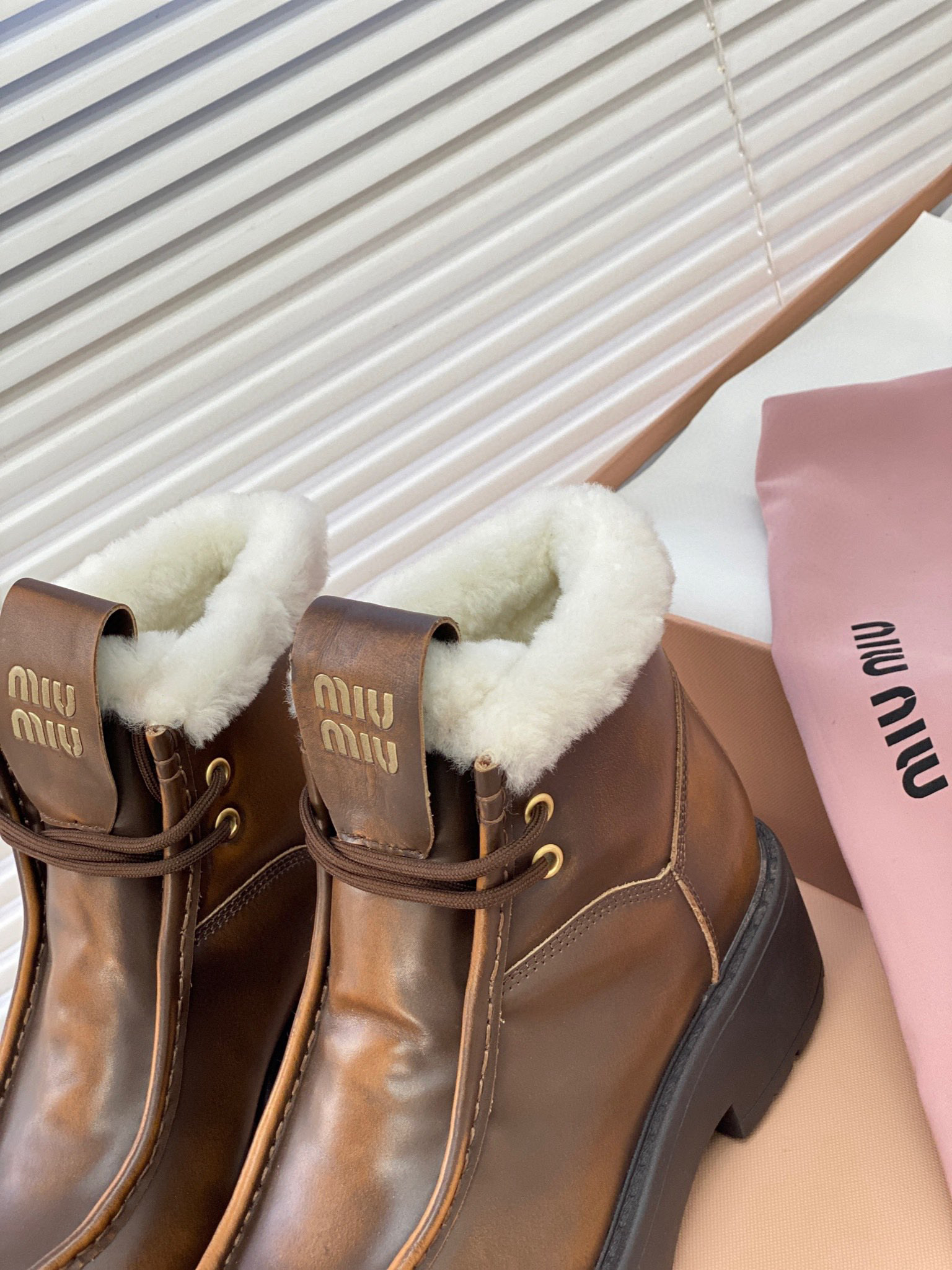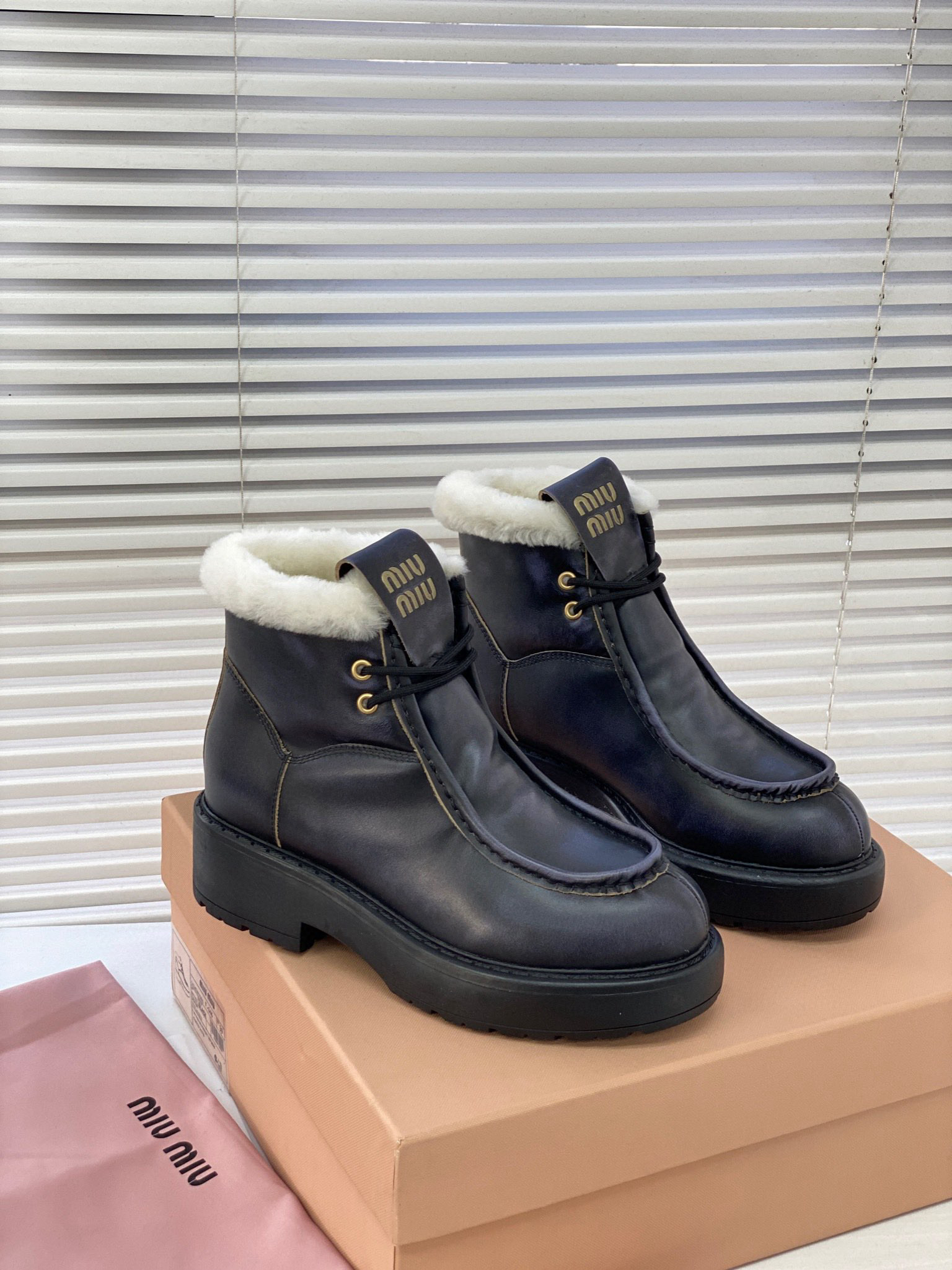 NIGO MiuMiu Women's Autumn And Winter Warm Wool British Style Lace-up Highbang Loafers Shoes #nigo97428