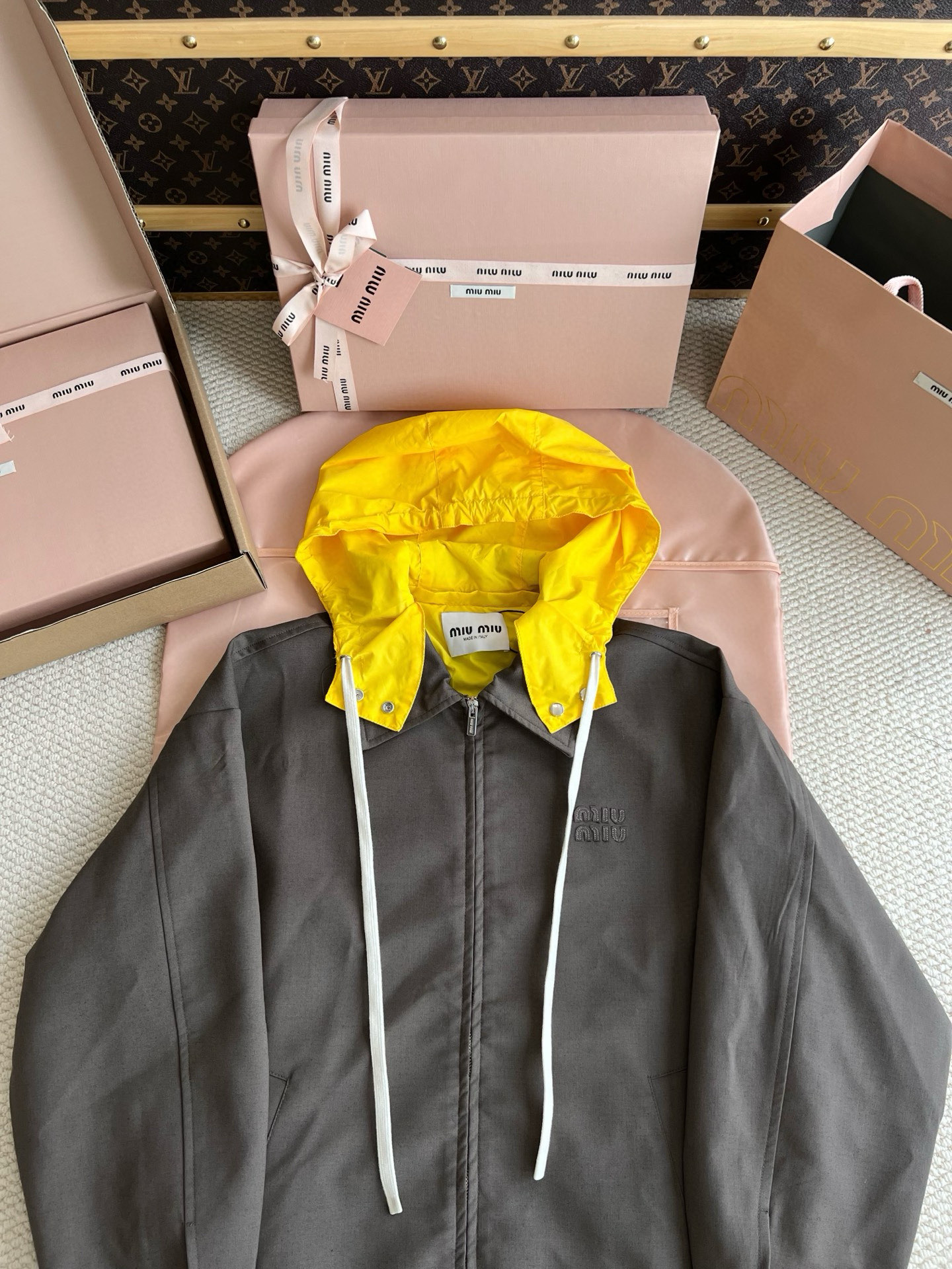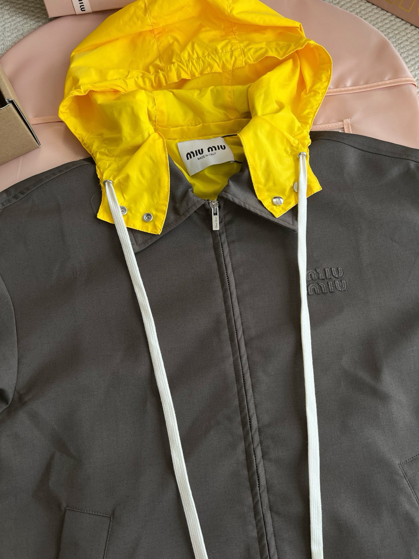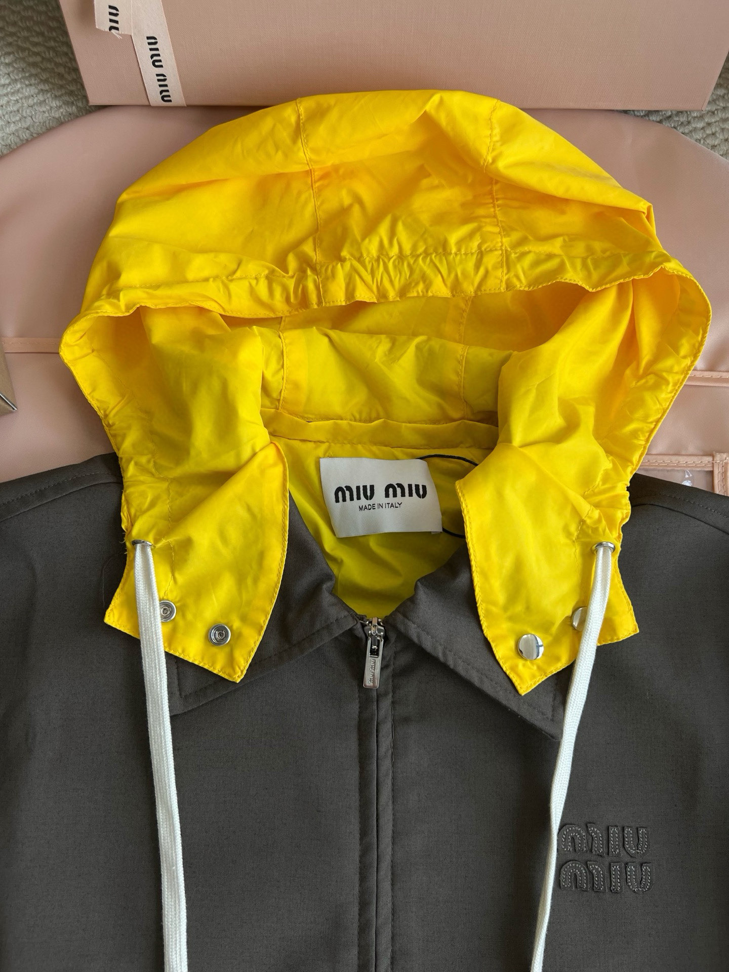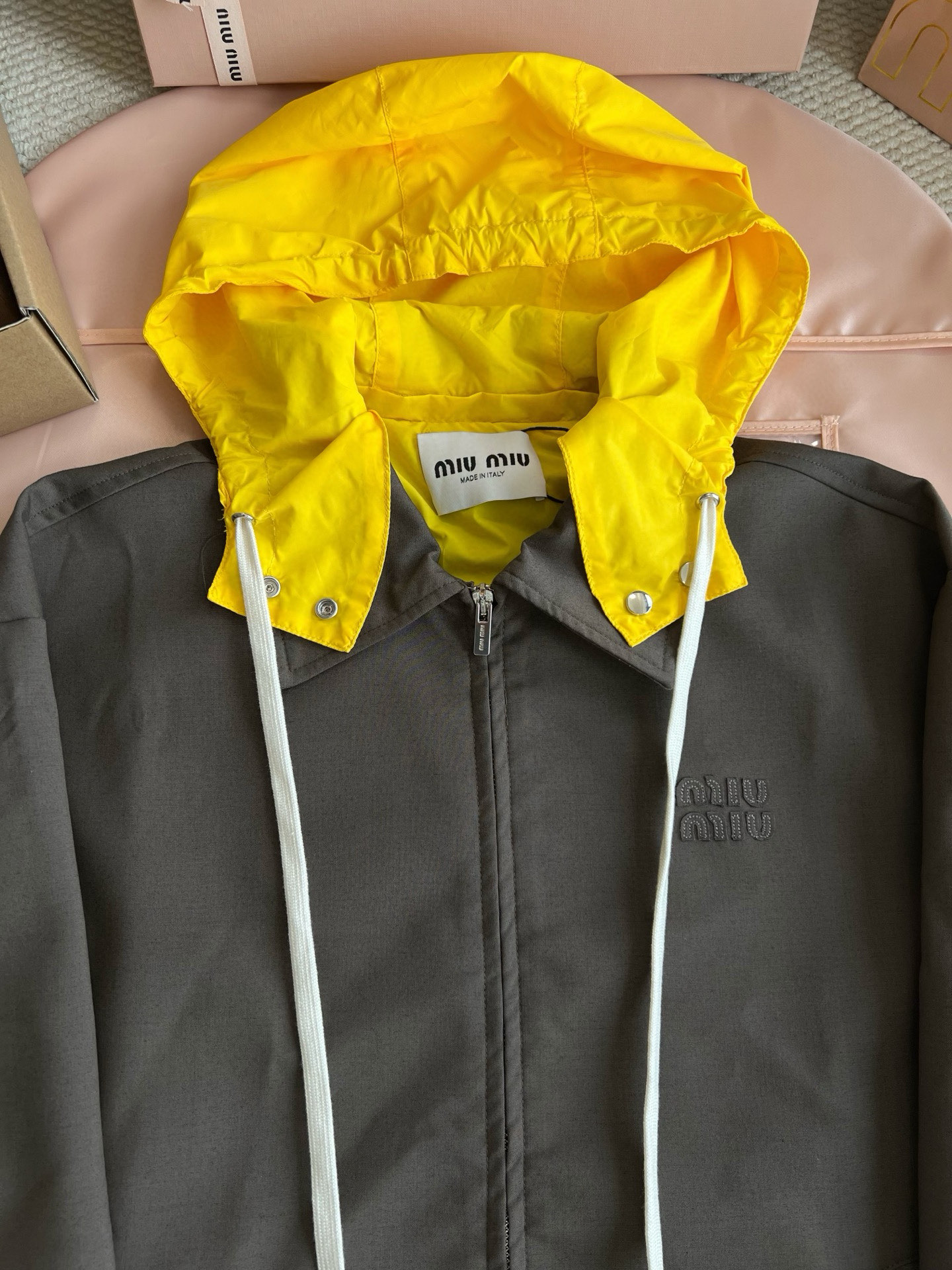 NIGO MiuMiu Women's Autumn/Spring Brown Hooded Drawstring Embroidered Logo Zipper Long Sleeve Jacket #nigo77947