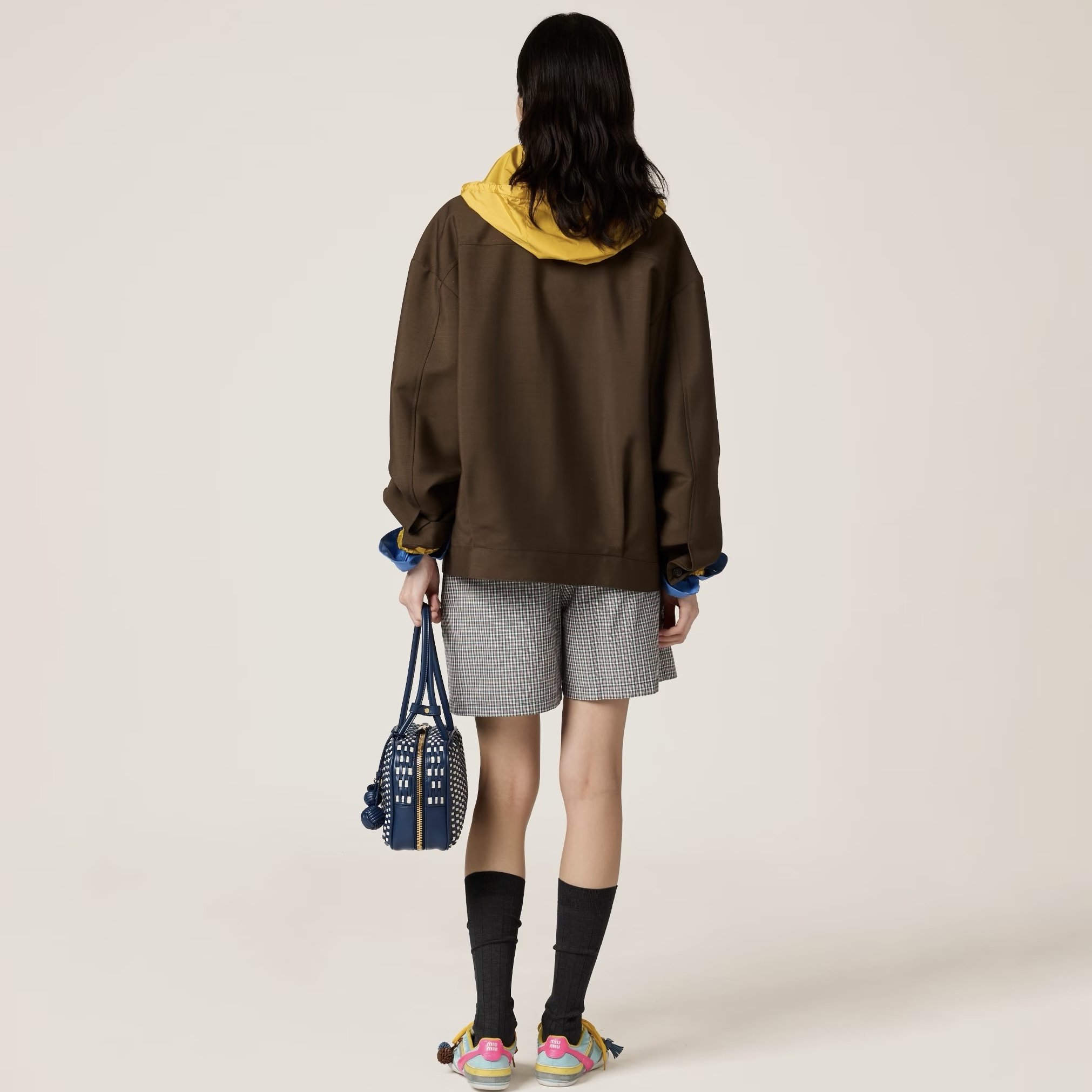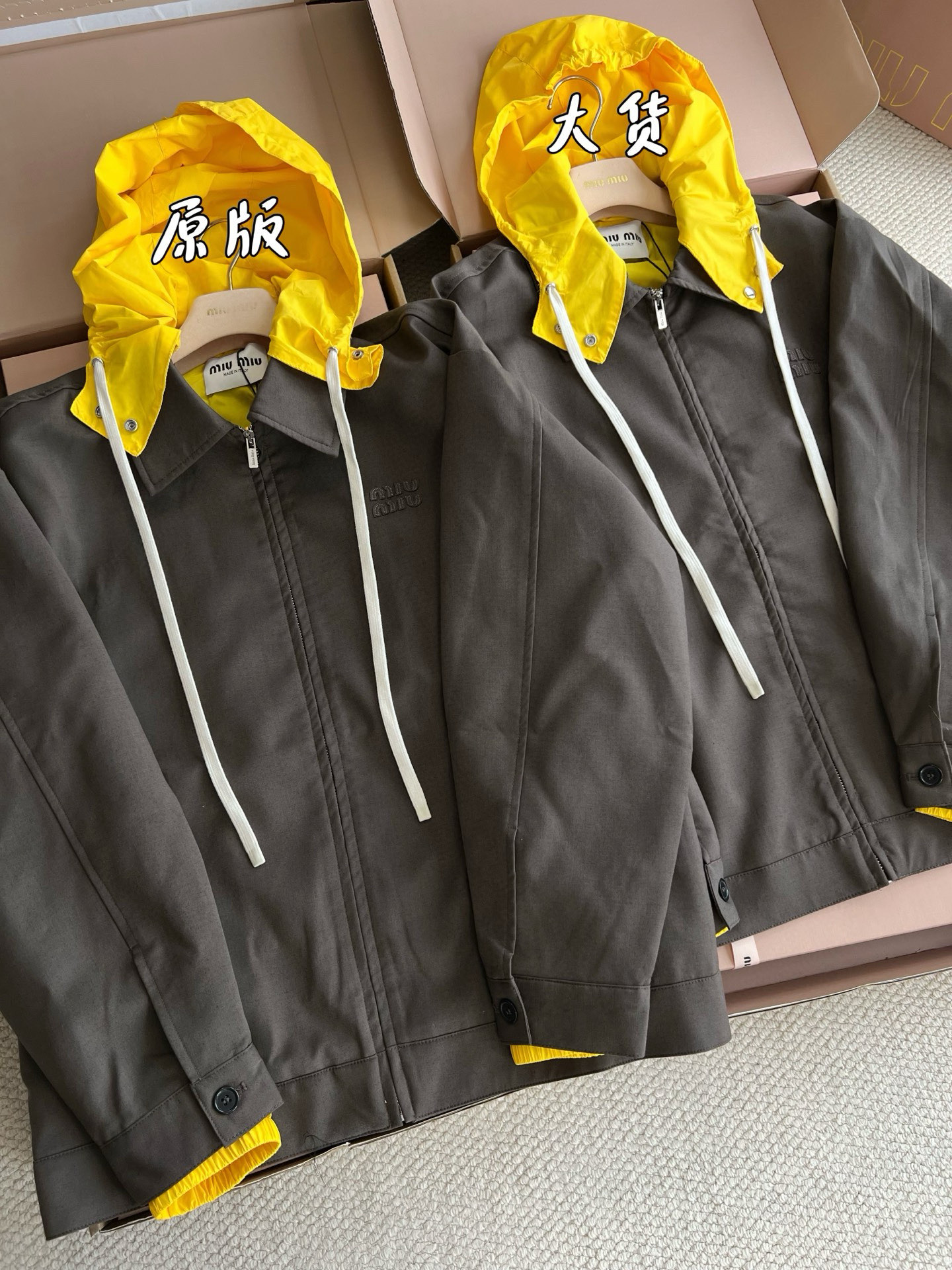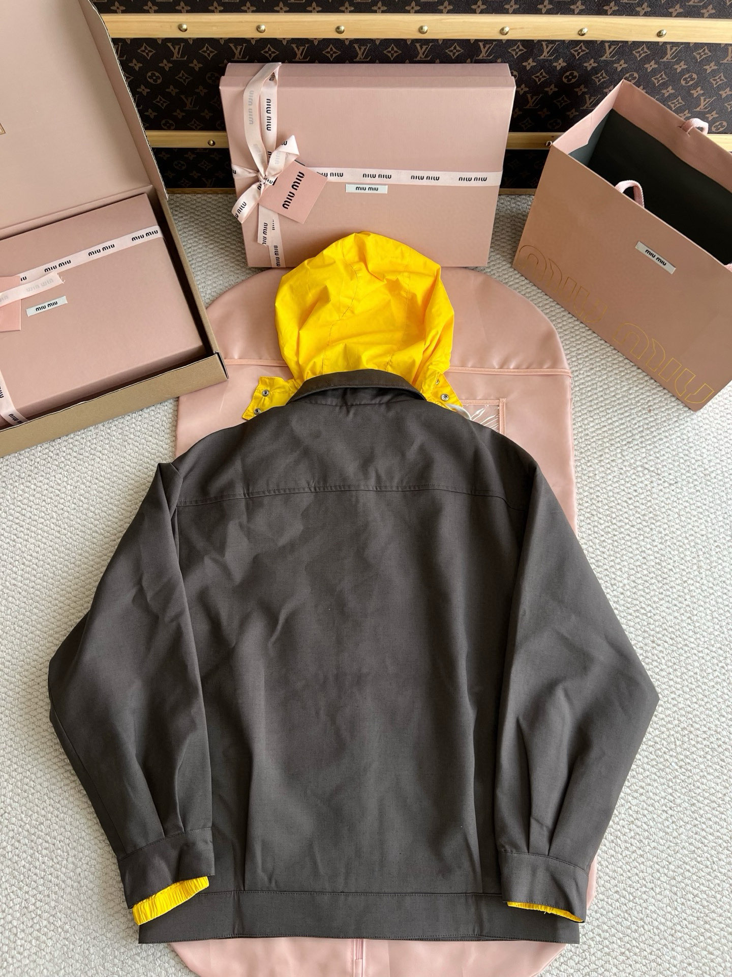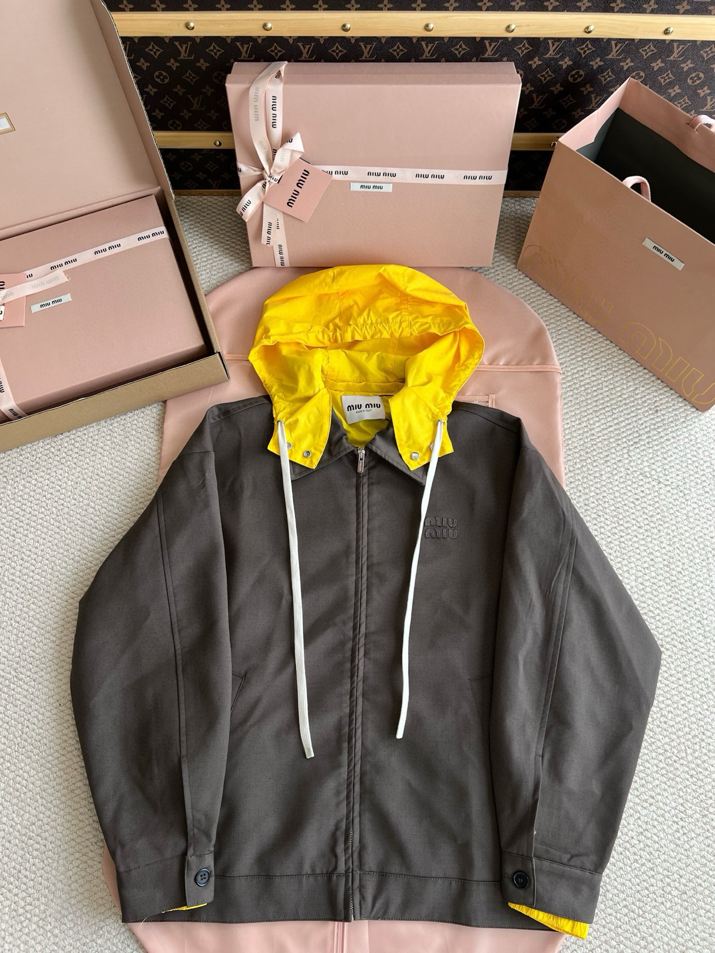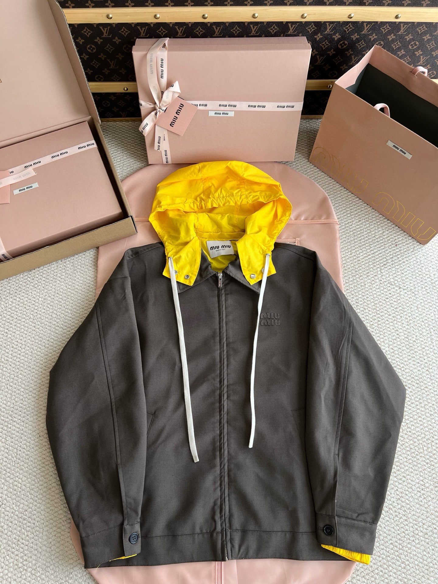 NIGO MiuMiu Women's Autumn/Spring Brown Hooded Drawstring Embroidered Logo Zipper Long Sleeve Jacket #nigo77947