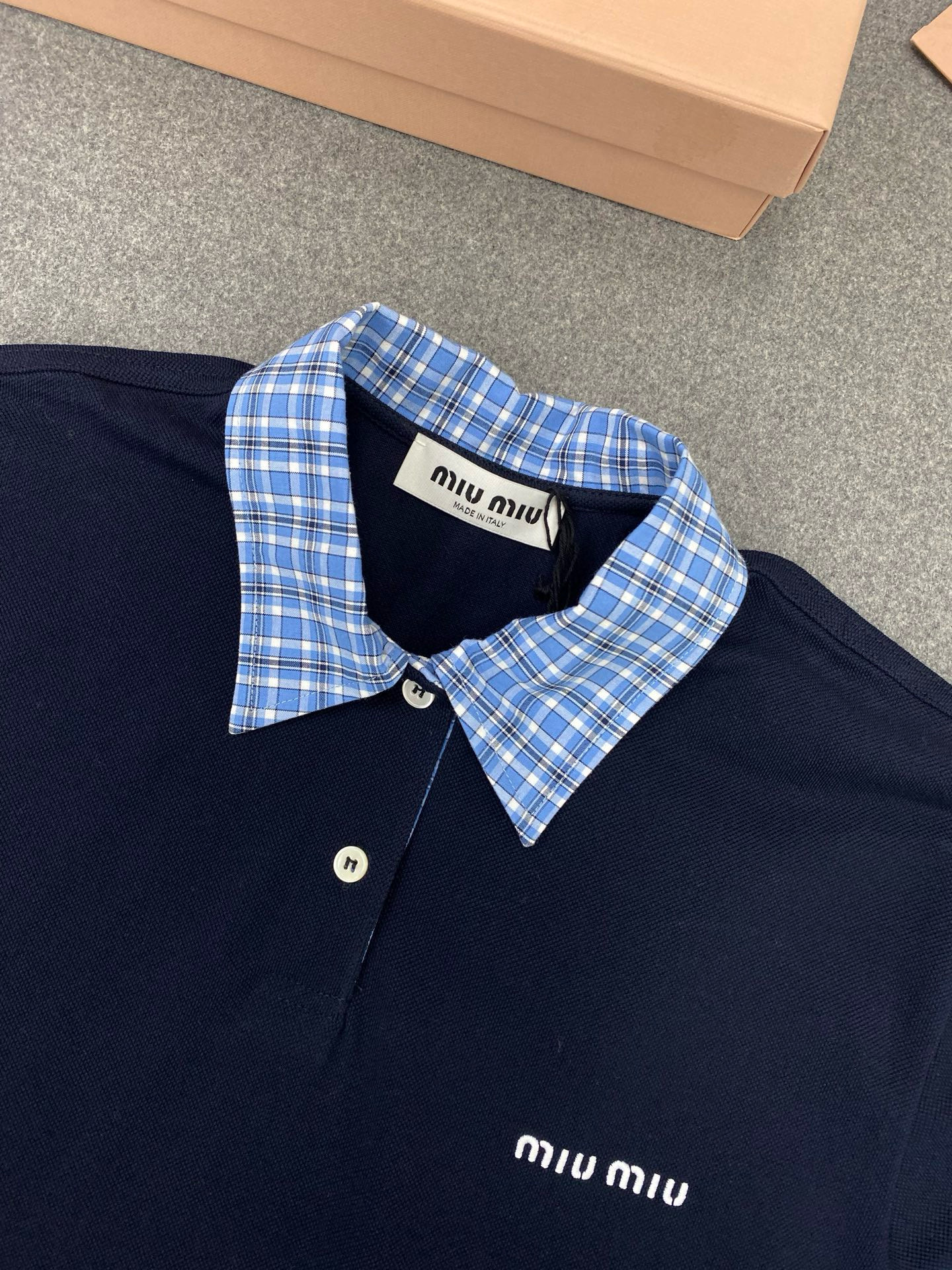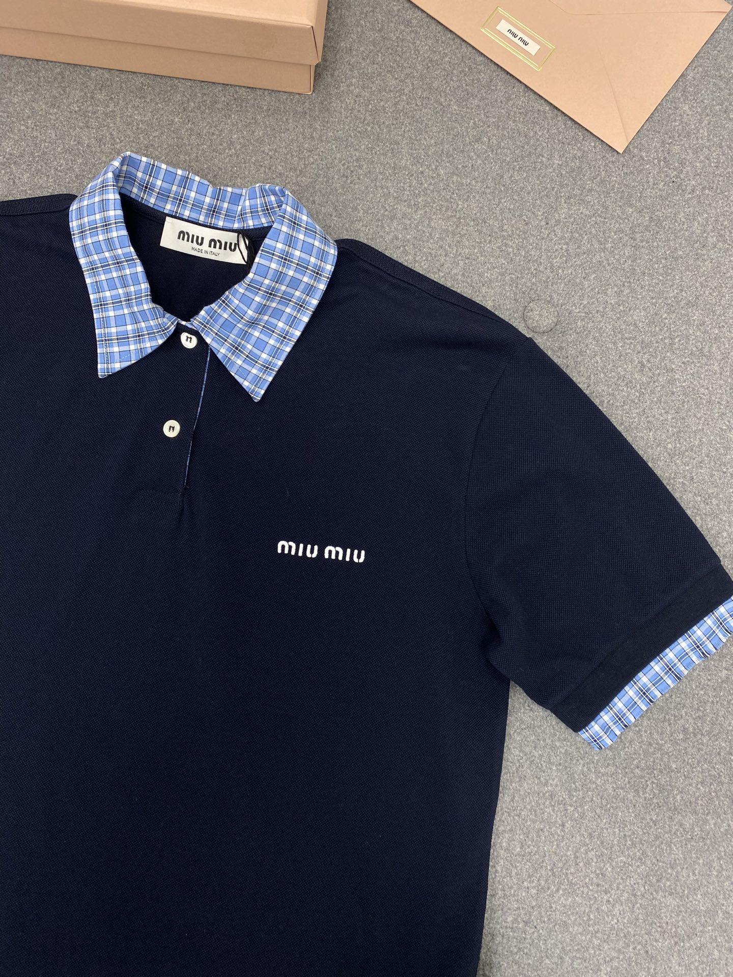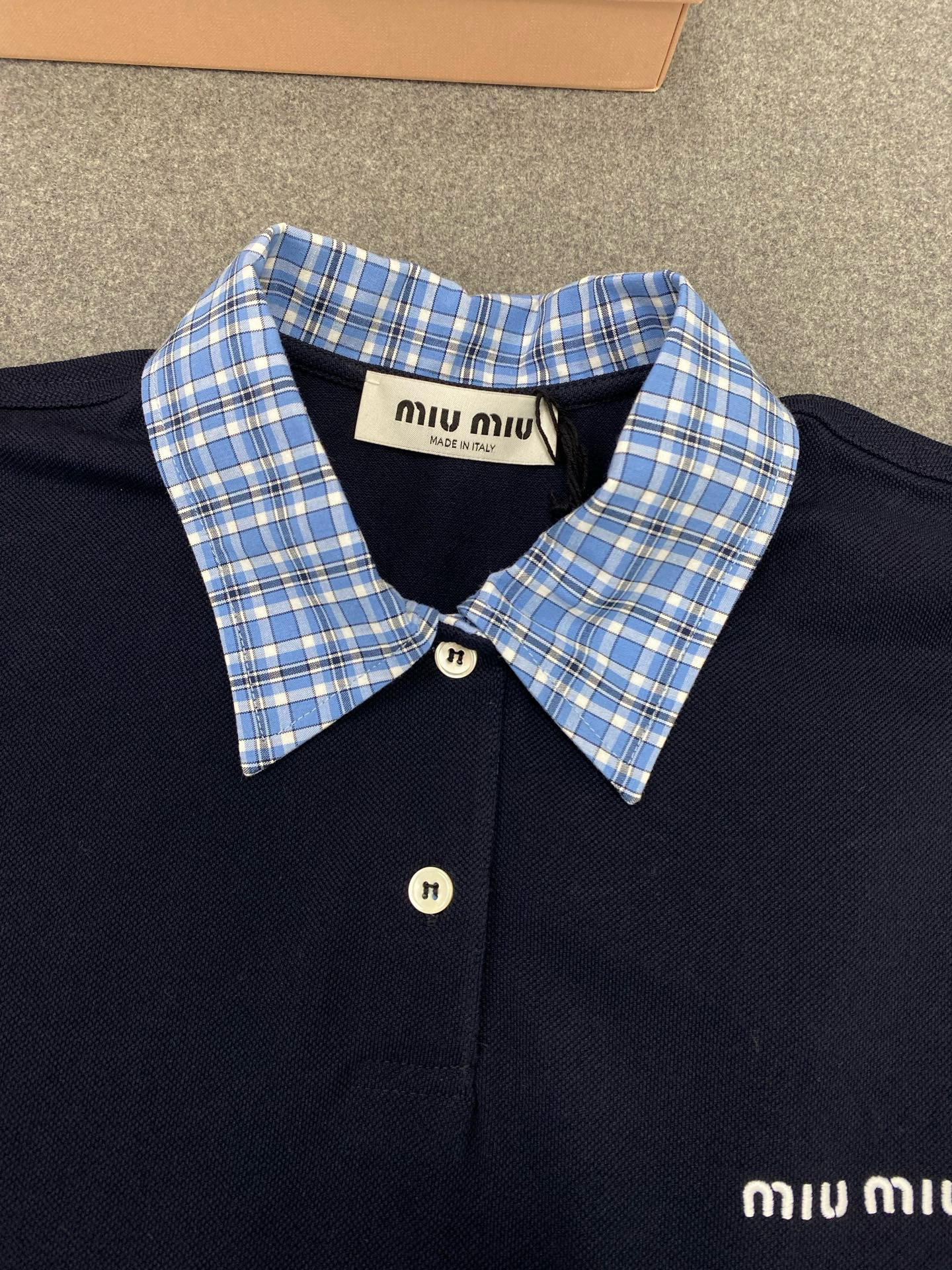 NIGO MiuMiu Women's Beaded Cotton Patchwork Plaid Polo Shirt Fashion Lapel Embroidered Letters Logo Casual Top #nigo77285